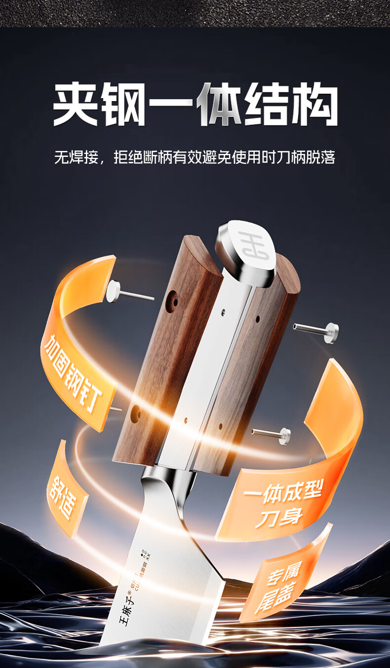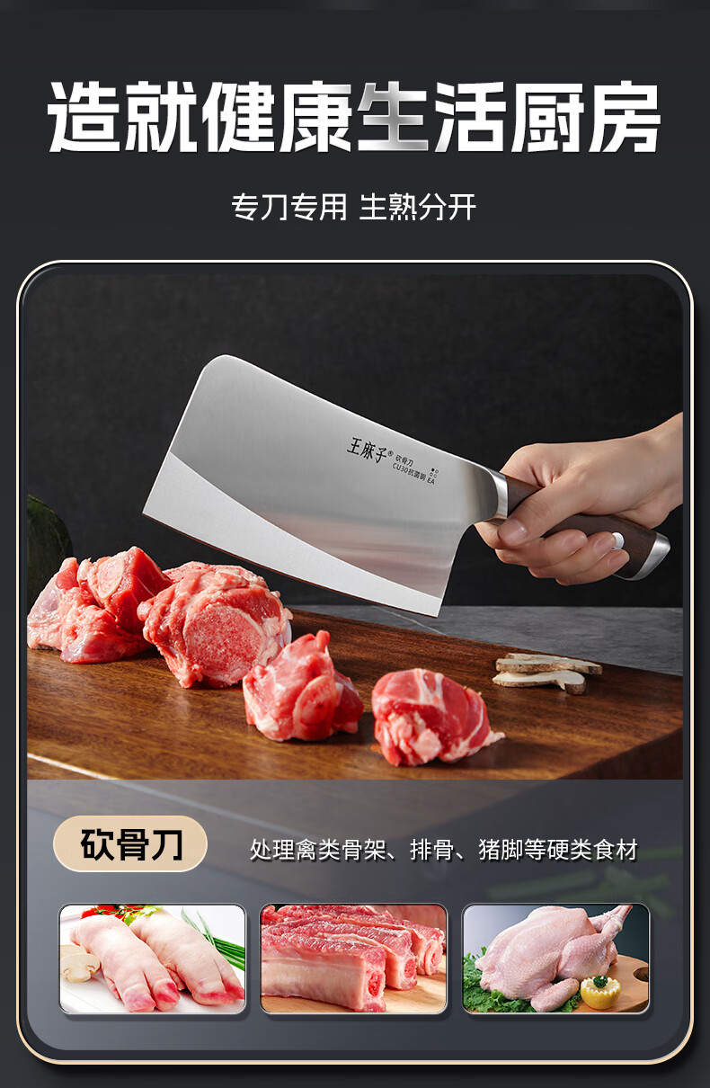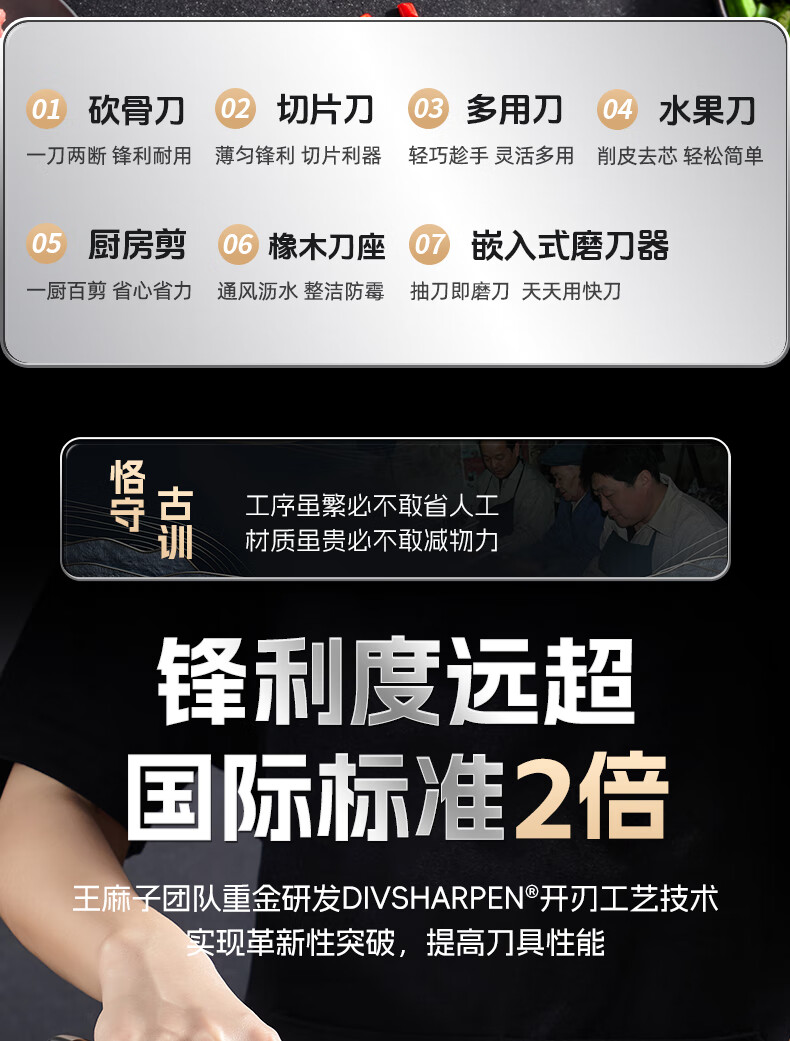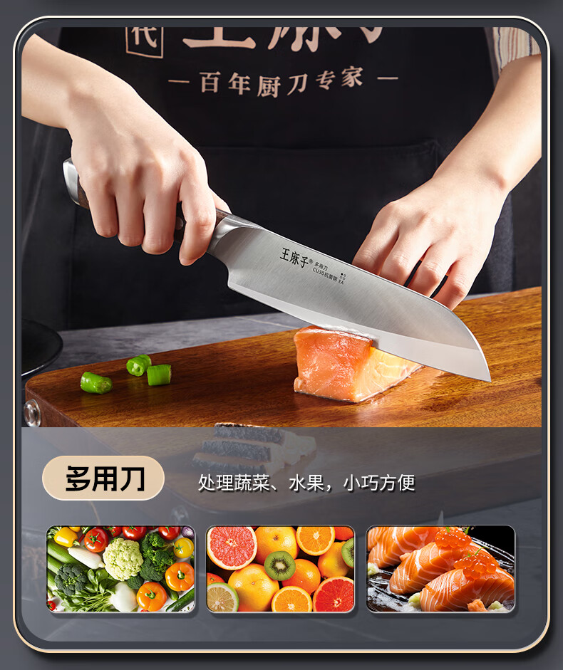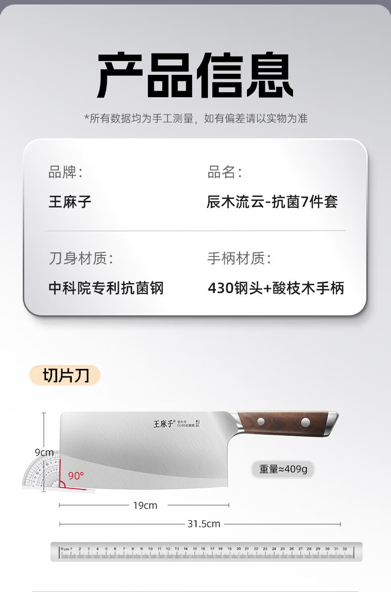 王麻子刀具全套 胖东来同款流云菜刀家用菜板厨房刀具套装水果刀切菜刀 【5铬钢】新年尊享版+菜板 8件套