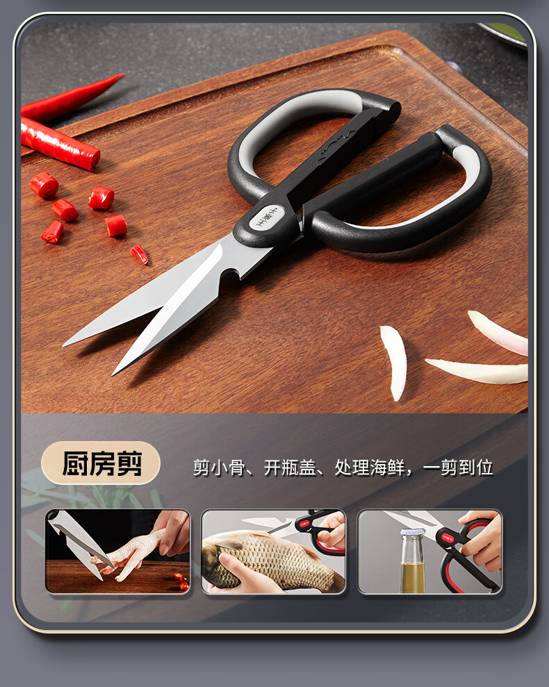 【精选】 多功能厨房剪刀家用杀鱼专用烤肉特大号不锈钢强力剪子 红色剪刀