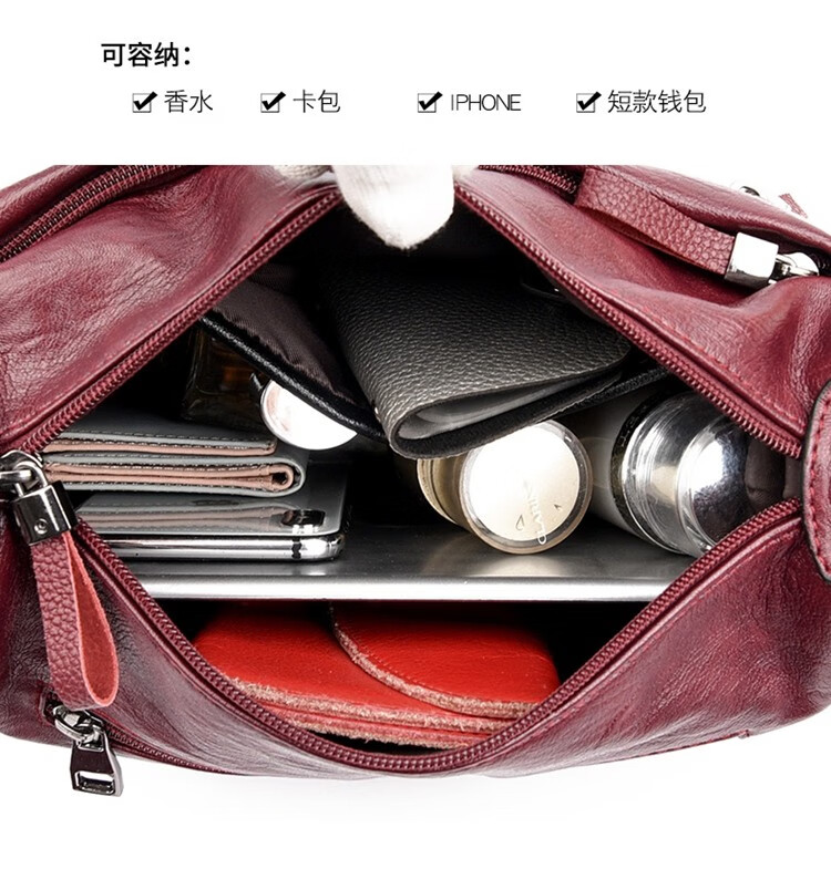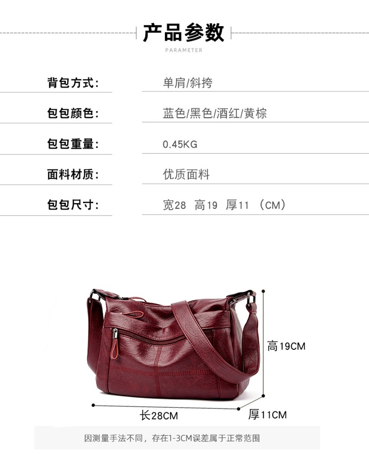 晶轼软皮包包女2025新款百搭大容量斜挎包时尚中老年妈妈包女士单肩包 黑色