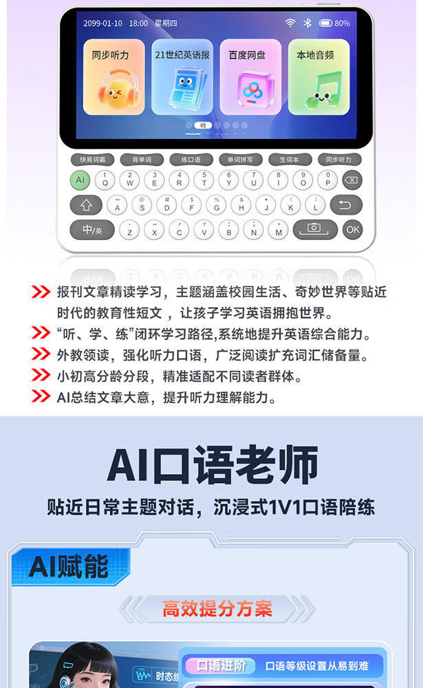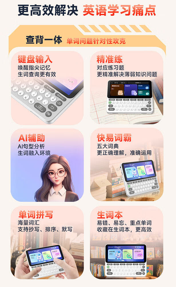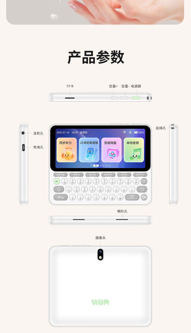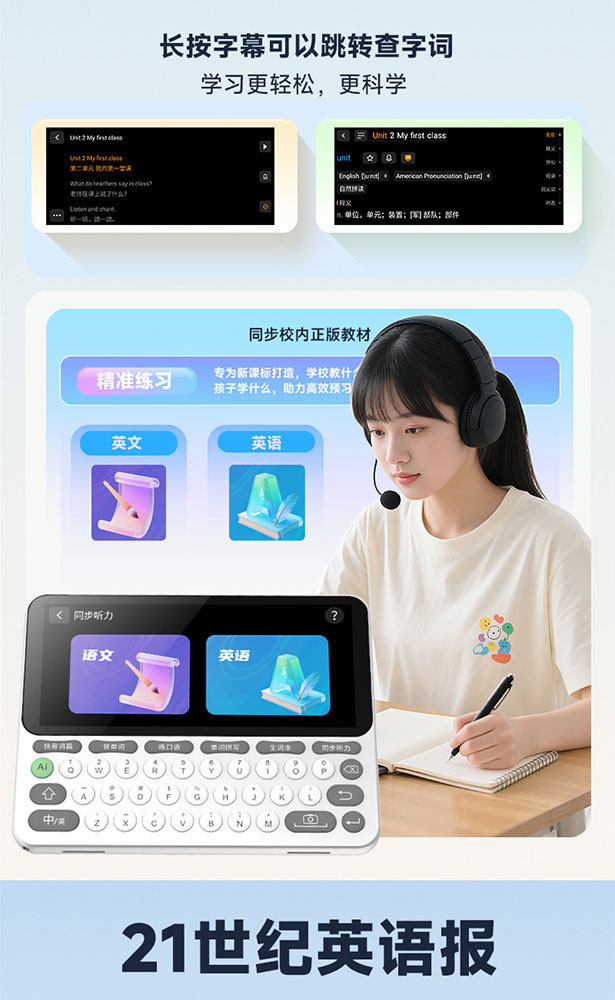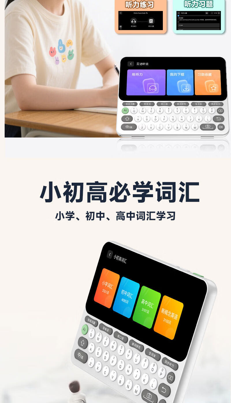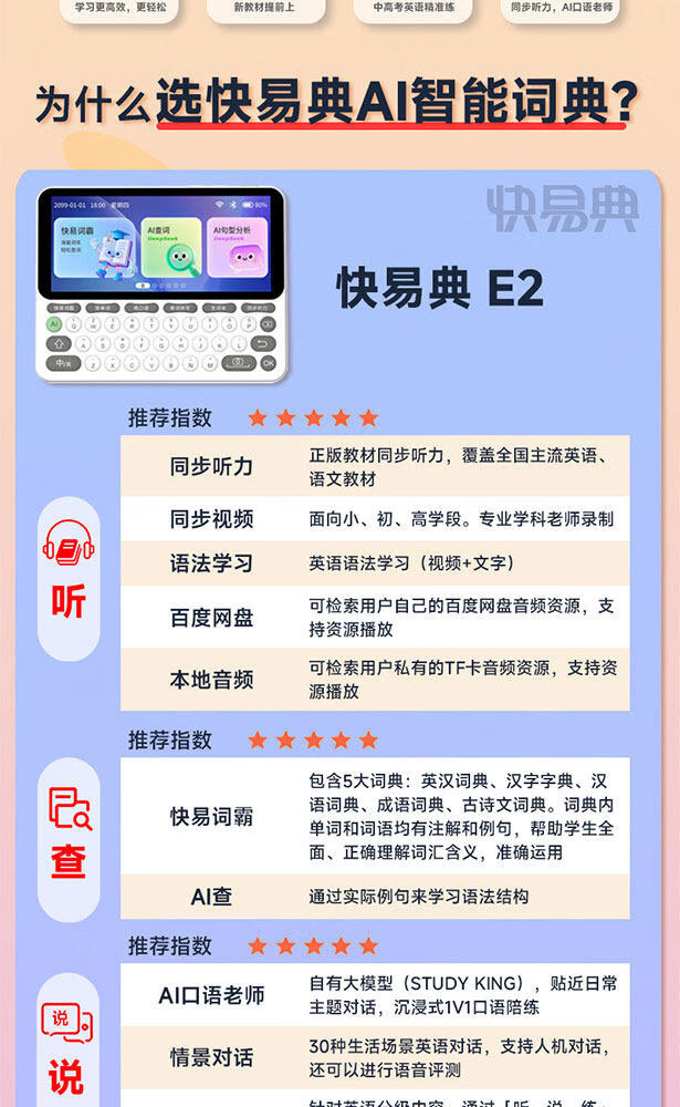 快易典(Koridy)AI电子词典E2英语学习机小学初中高中通词典四六级英语过级考试教材同步单词机 【全新升级】E2 128GB