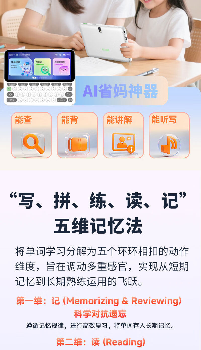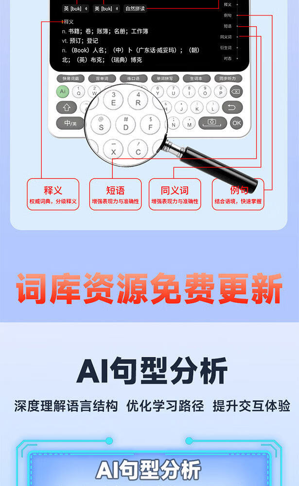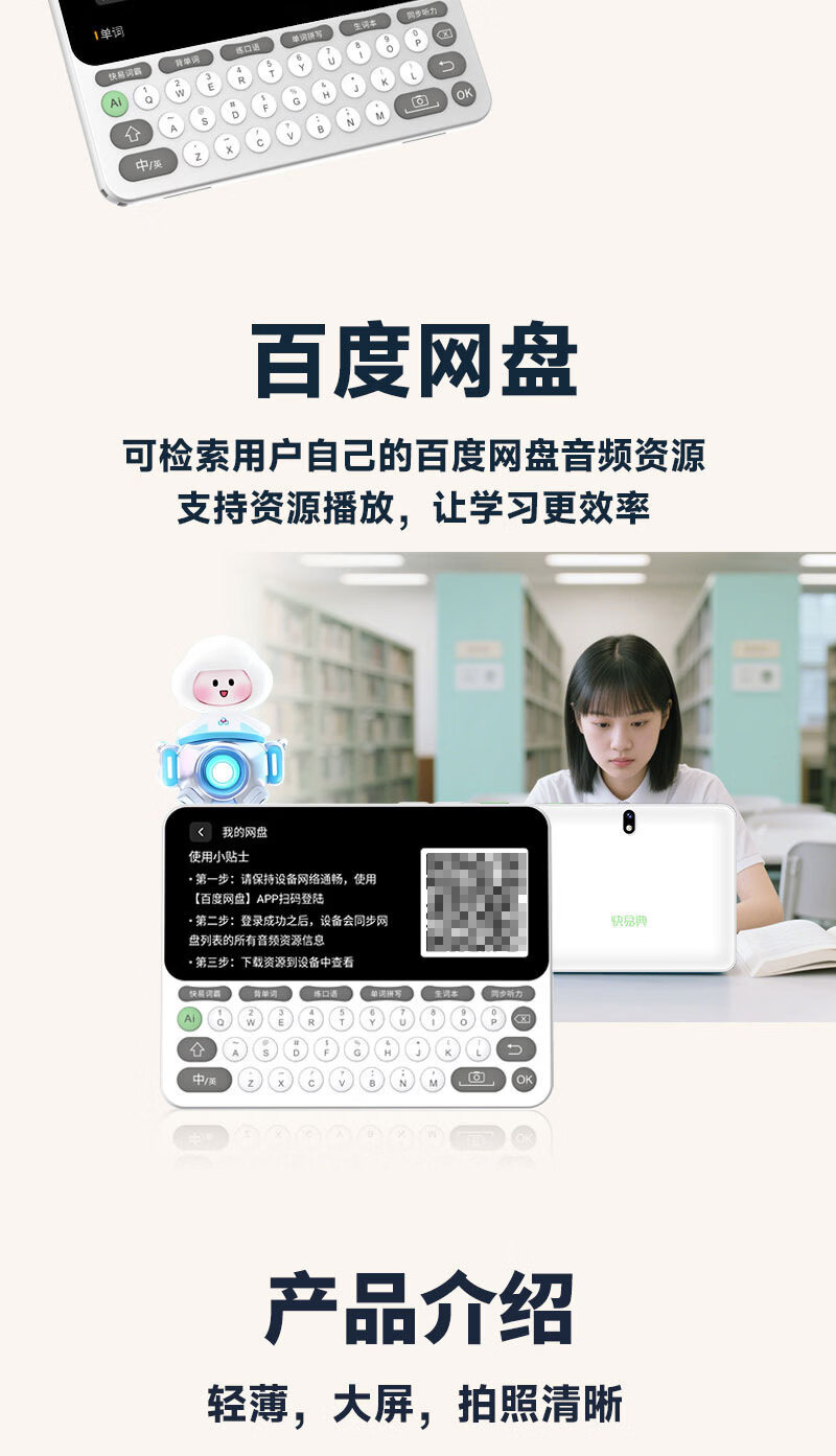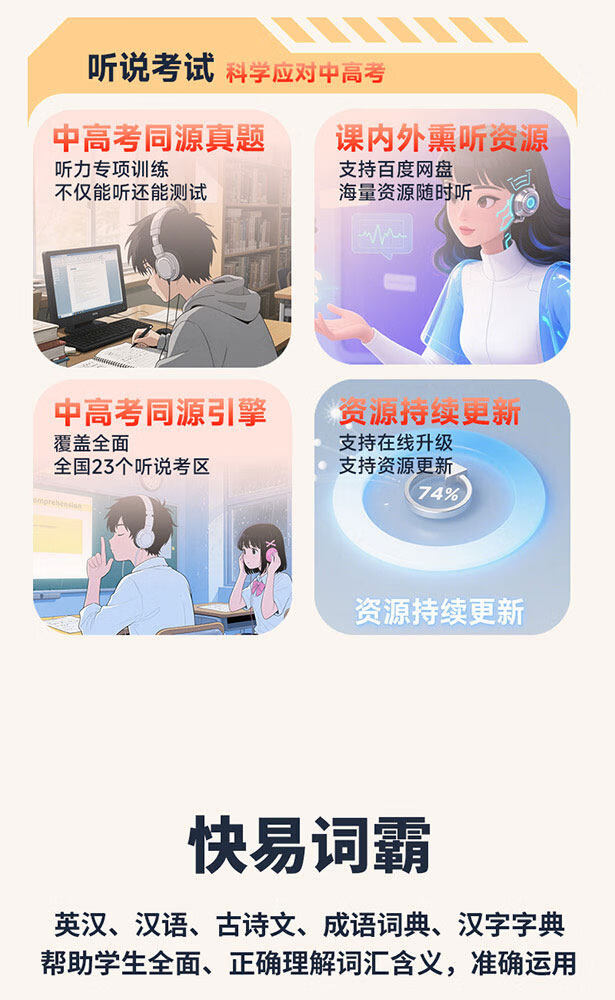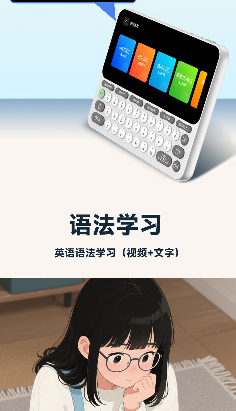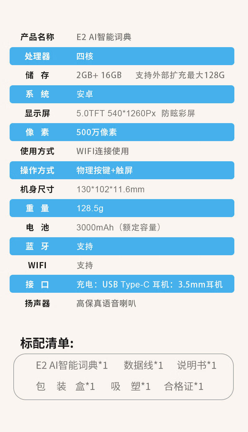 快易典(Koridy)AI电子词典E2英语学习机小学初中高中通词典四六级英语过级考试教材同步单词机 【全新升级】E2 128GB