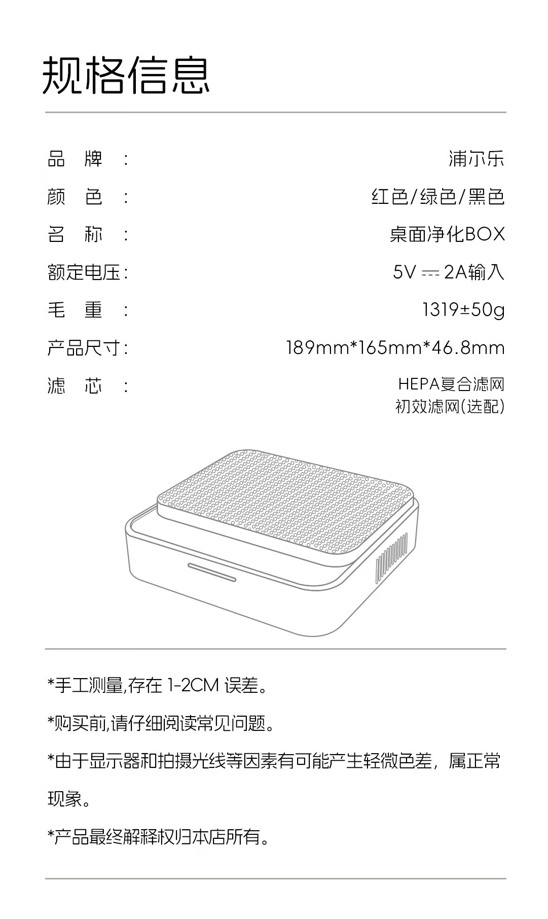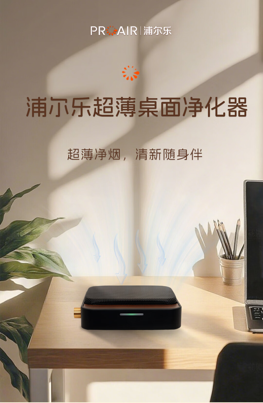 浦尔乐净化BOX桌面空气净化器四重净化二手烟除烟味等离子净化去异味家用书房办公室 净化BOX【绿色桌面支架款】