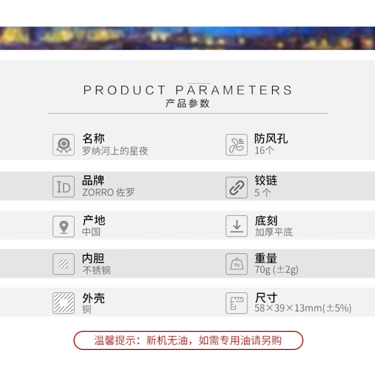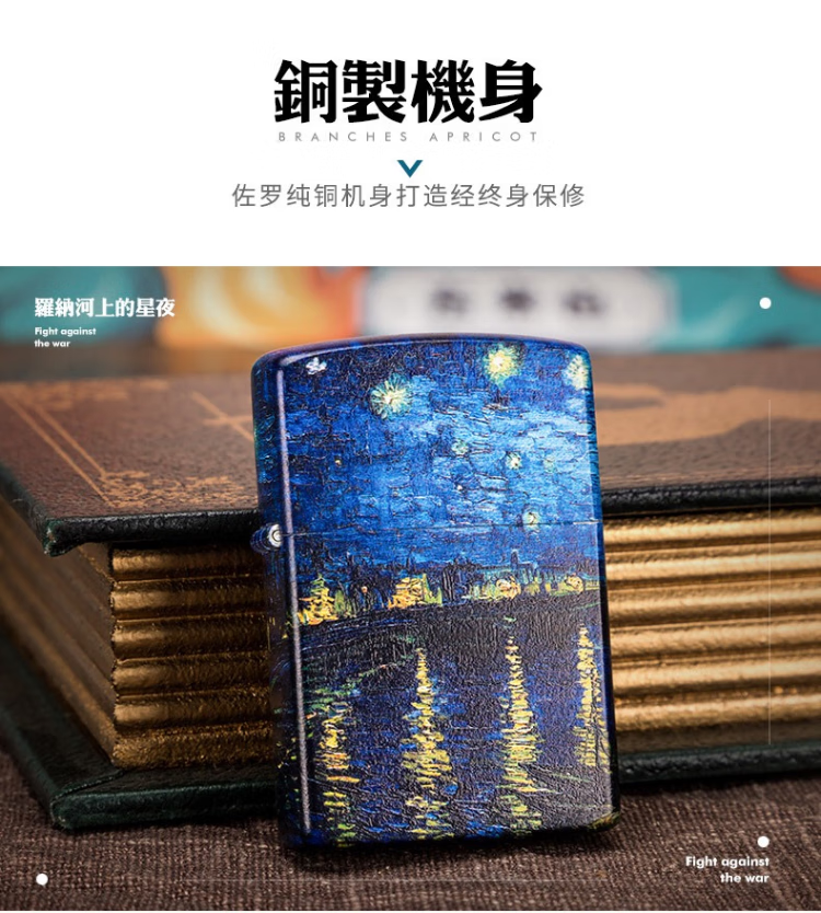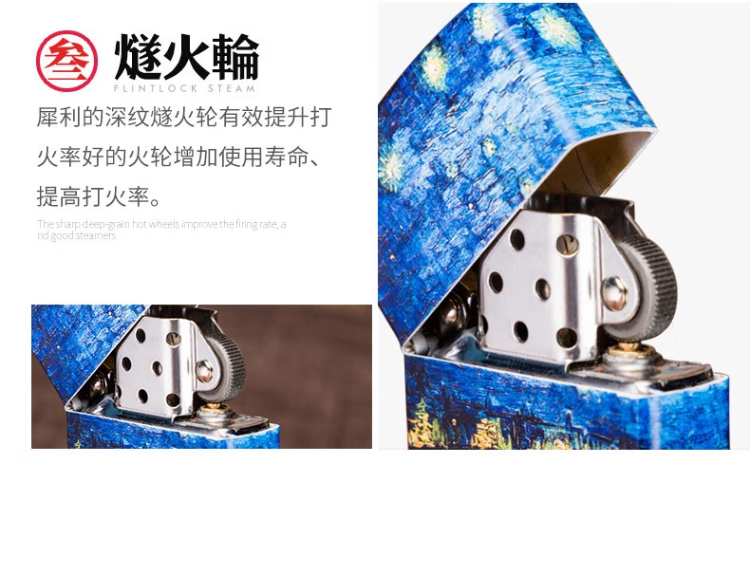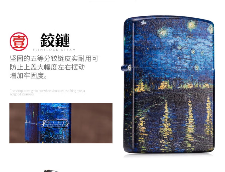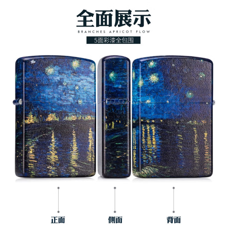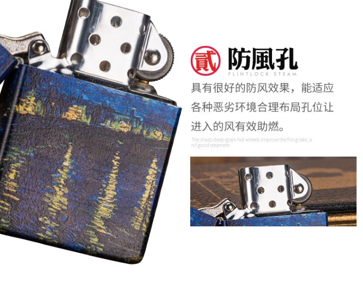 佐罗梵高星空煤油打火机复古创意个性防风点烟器送男友老公礼物 罗纳河上的星夜(标准版)