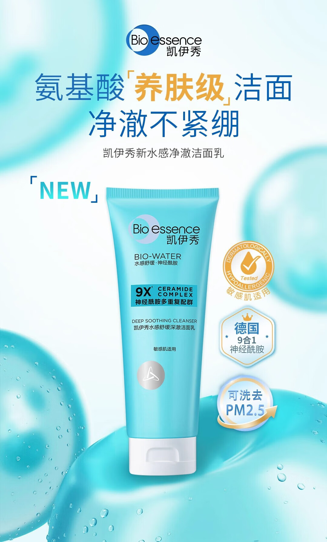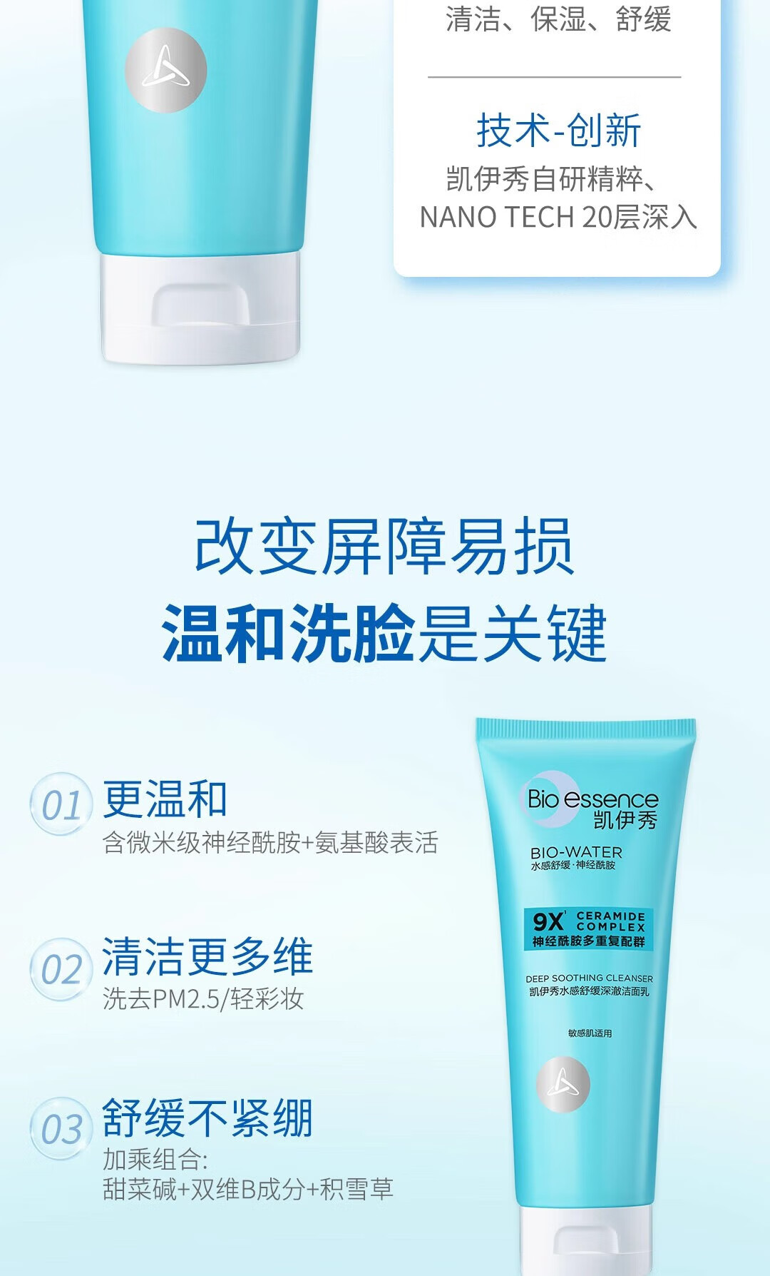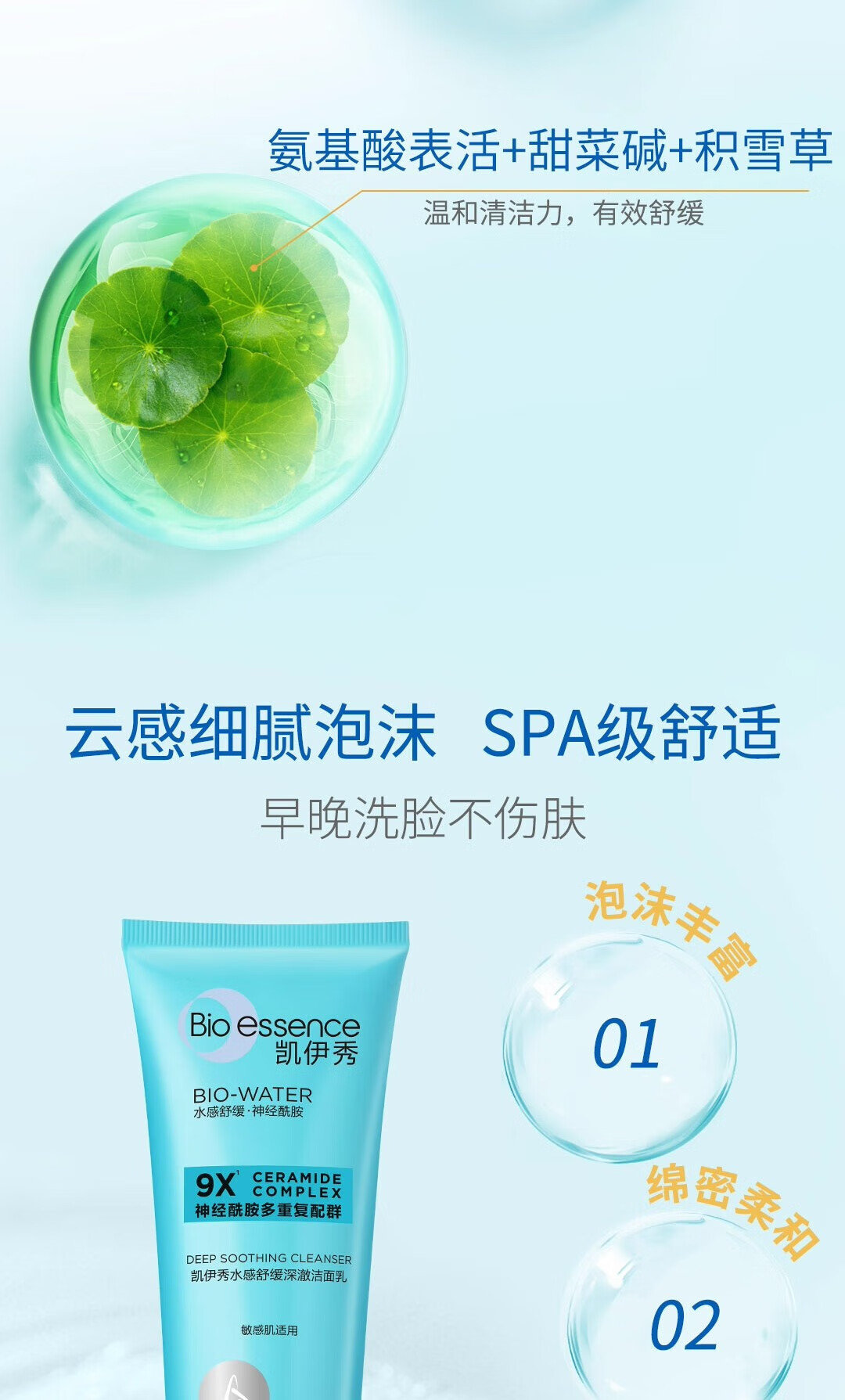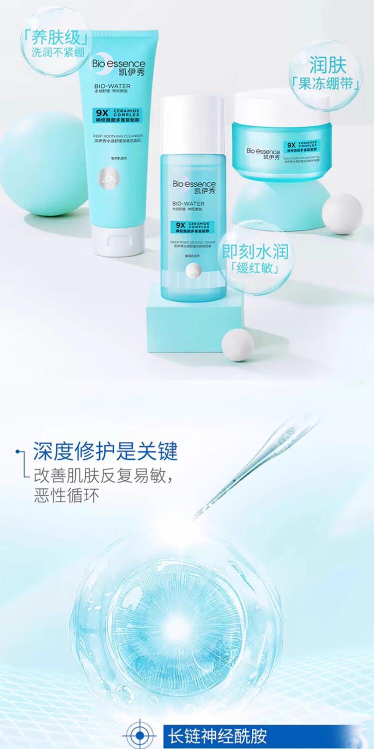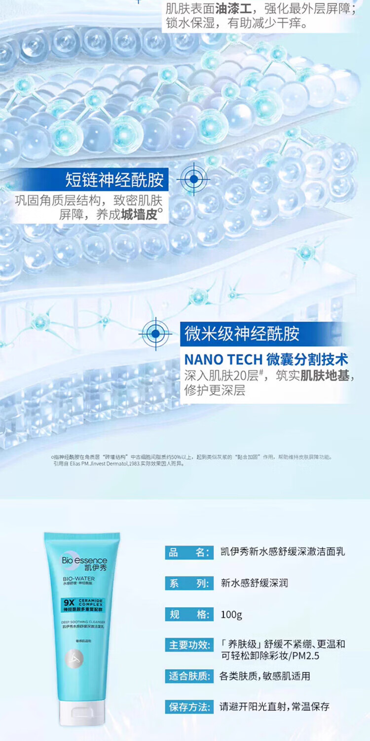 凯伊秀(Bio-essence)深层清洁温和补水保湿控油洗面奶洁面乳120g男女学生专用 水感舒缓深澈洁面乳100g