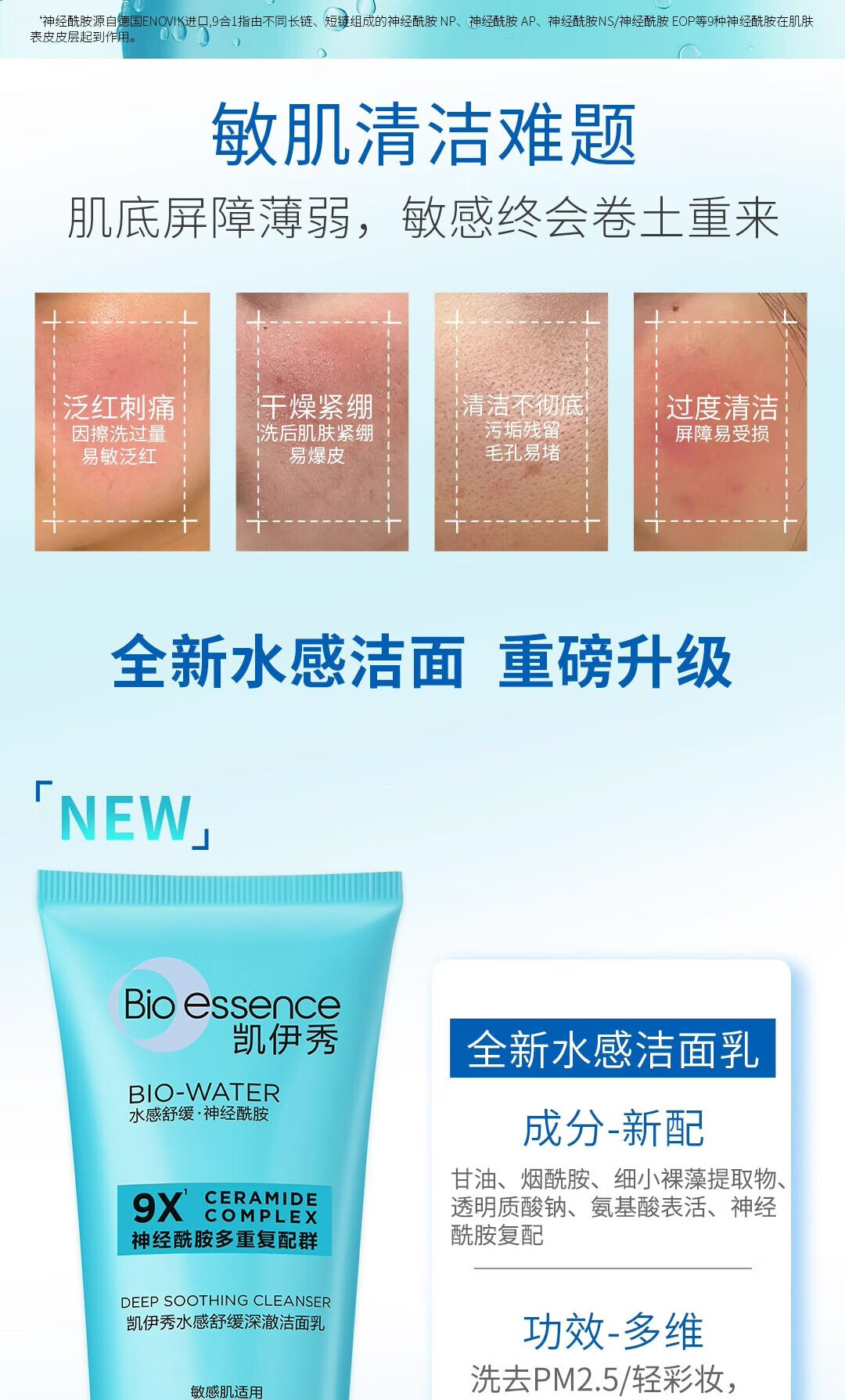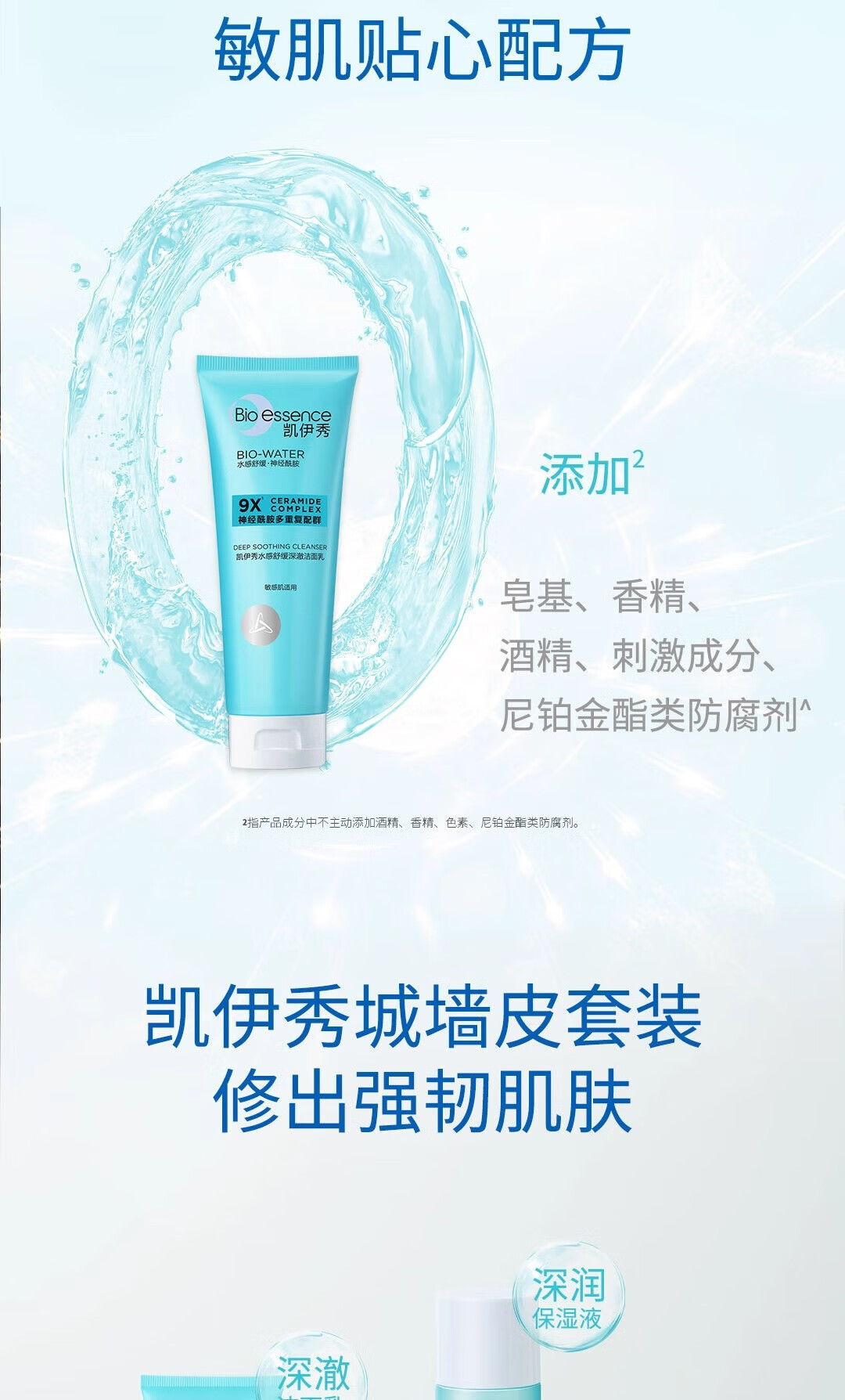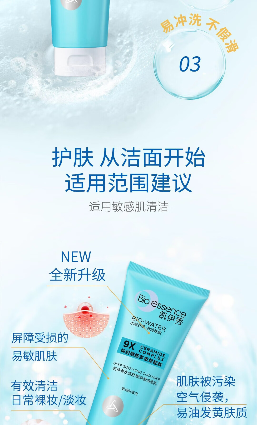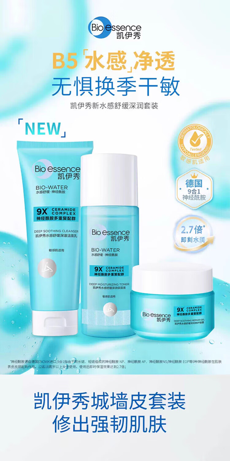 凯伊秀(Bio-essence)深层清洁温和补水保湿控油洗面奶洁面乳120g男女学生专用 水感舒缓深澈洁面乳100g
