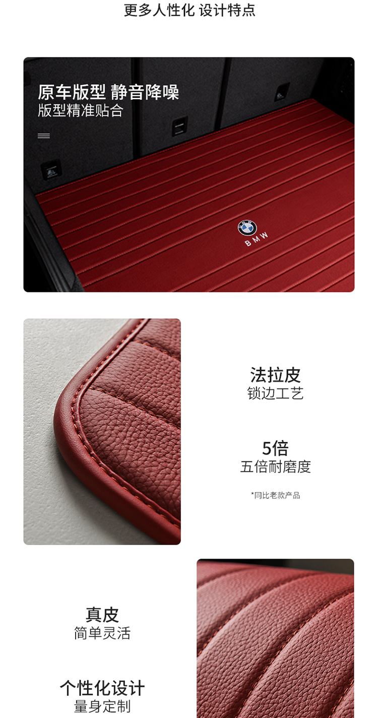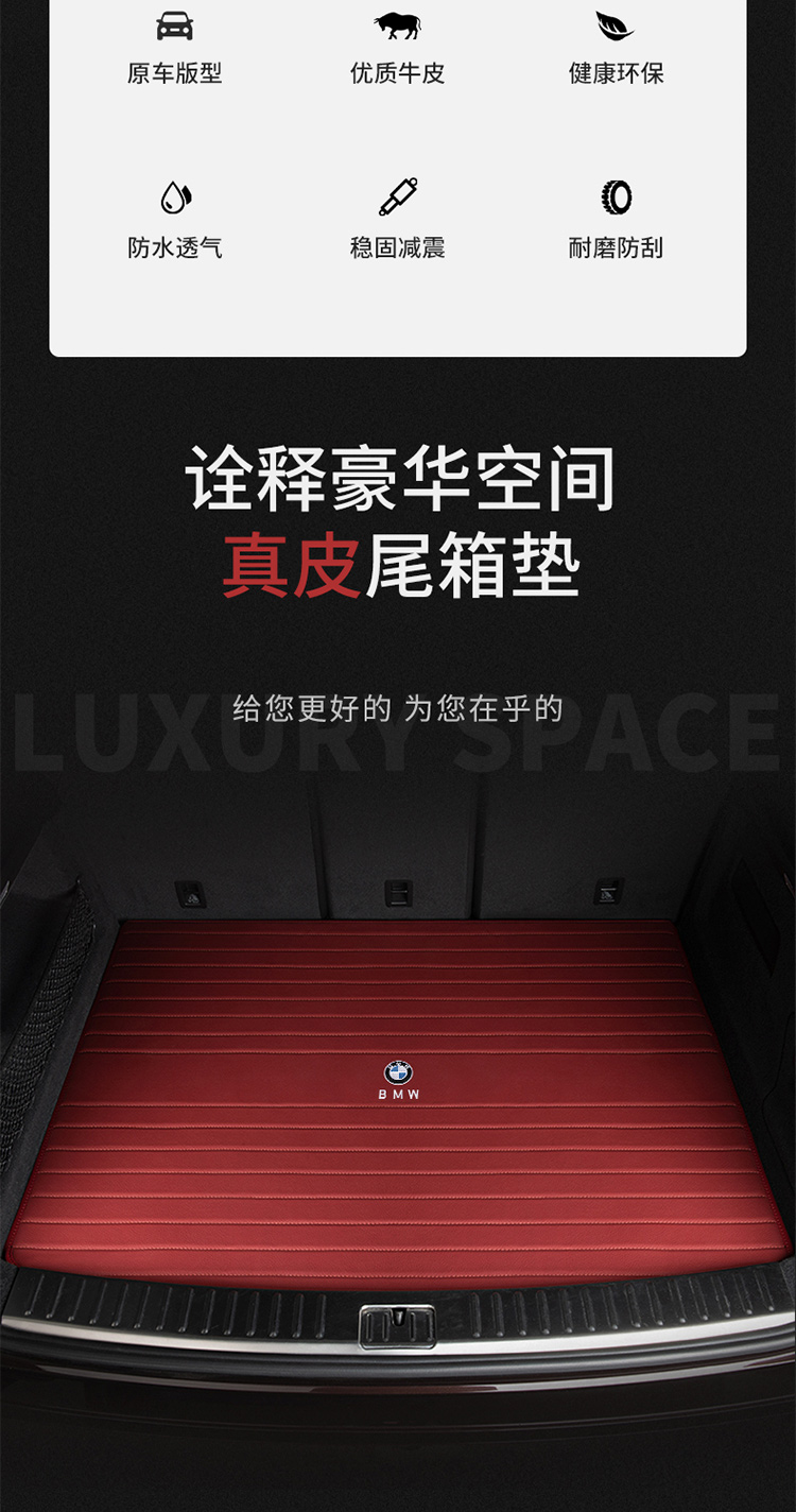 沃丹真皮汽车后备箱垫适用于26款宝马5系3系7系8系6系X3 X5L X5 X6 X7 炭黑色(纯牛皮) 其它车下单点这里