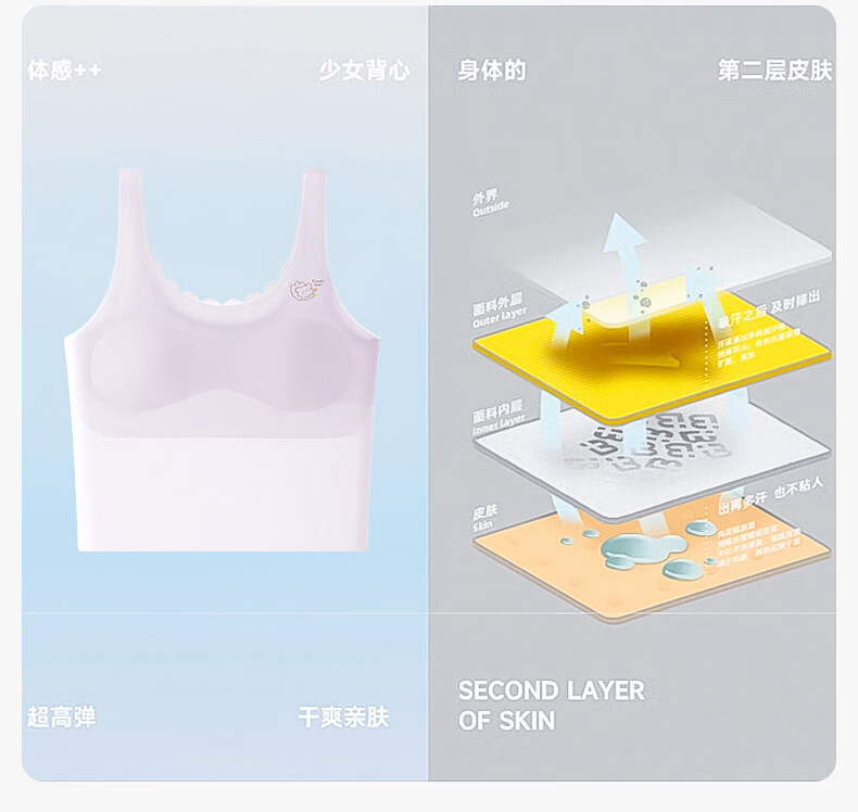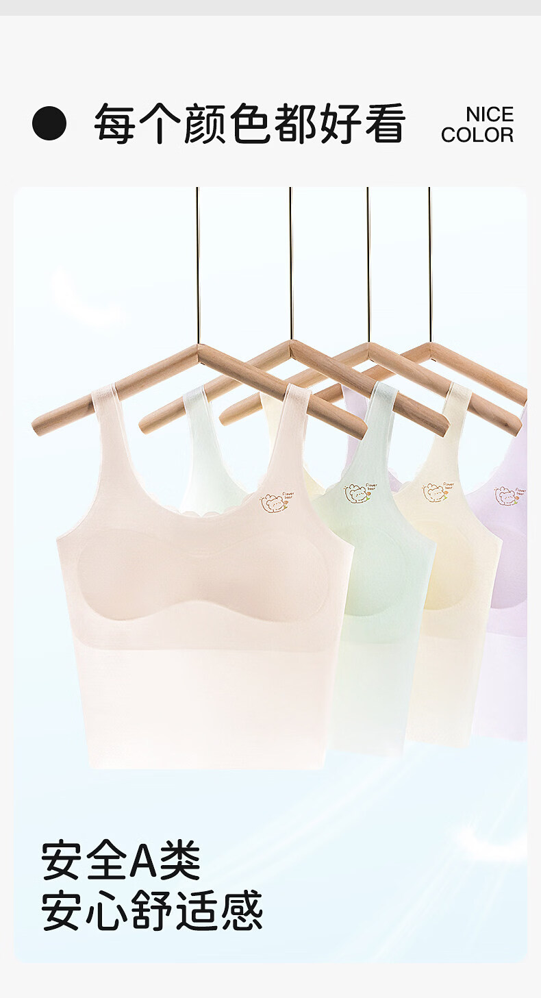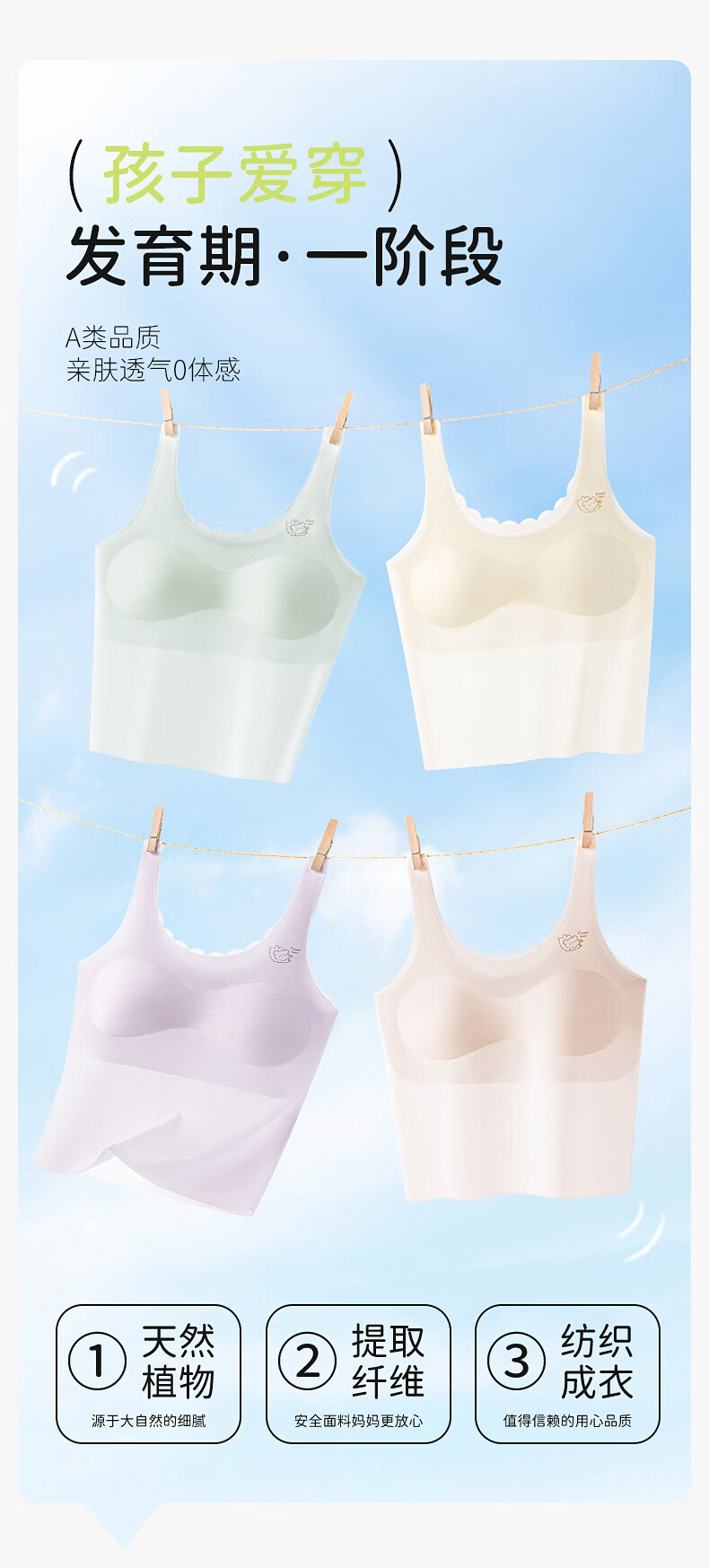猫人儿童无痕背心少女文胸女童初高中学生发育期内衣二阶段夏季薄 黄色 【无痕薄款透气网孔】 160 (M) 【建议体重60-80斤】