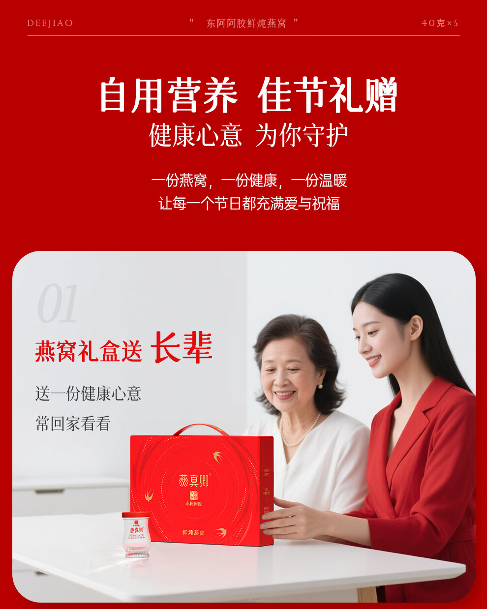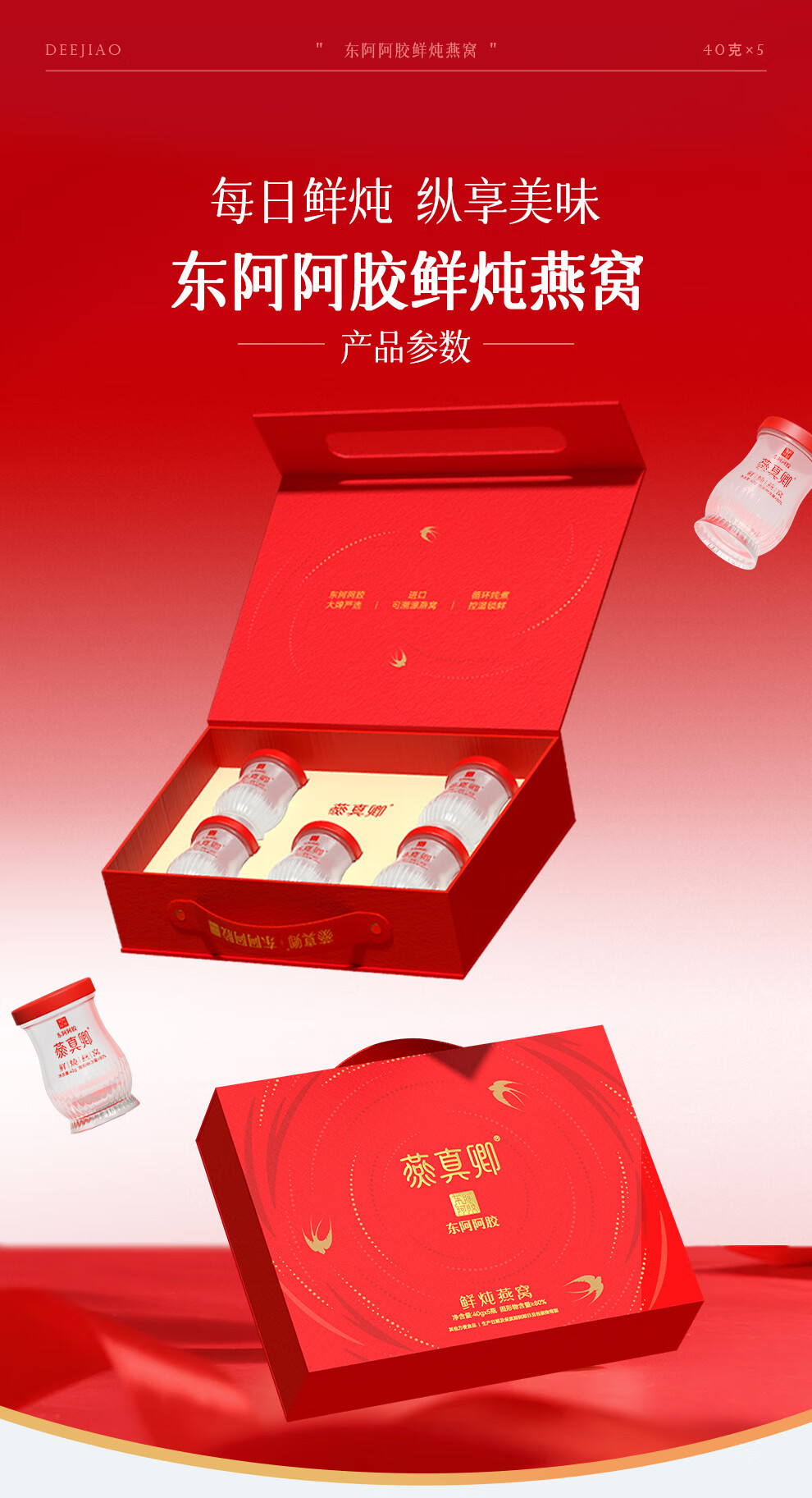 东阿阿胶鲜炖燕窝40g*5瓶 即食滋补营养品 送孕妇送长辈新年礼物 春节送礼
