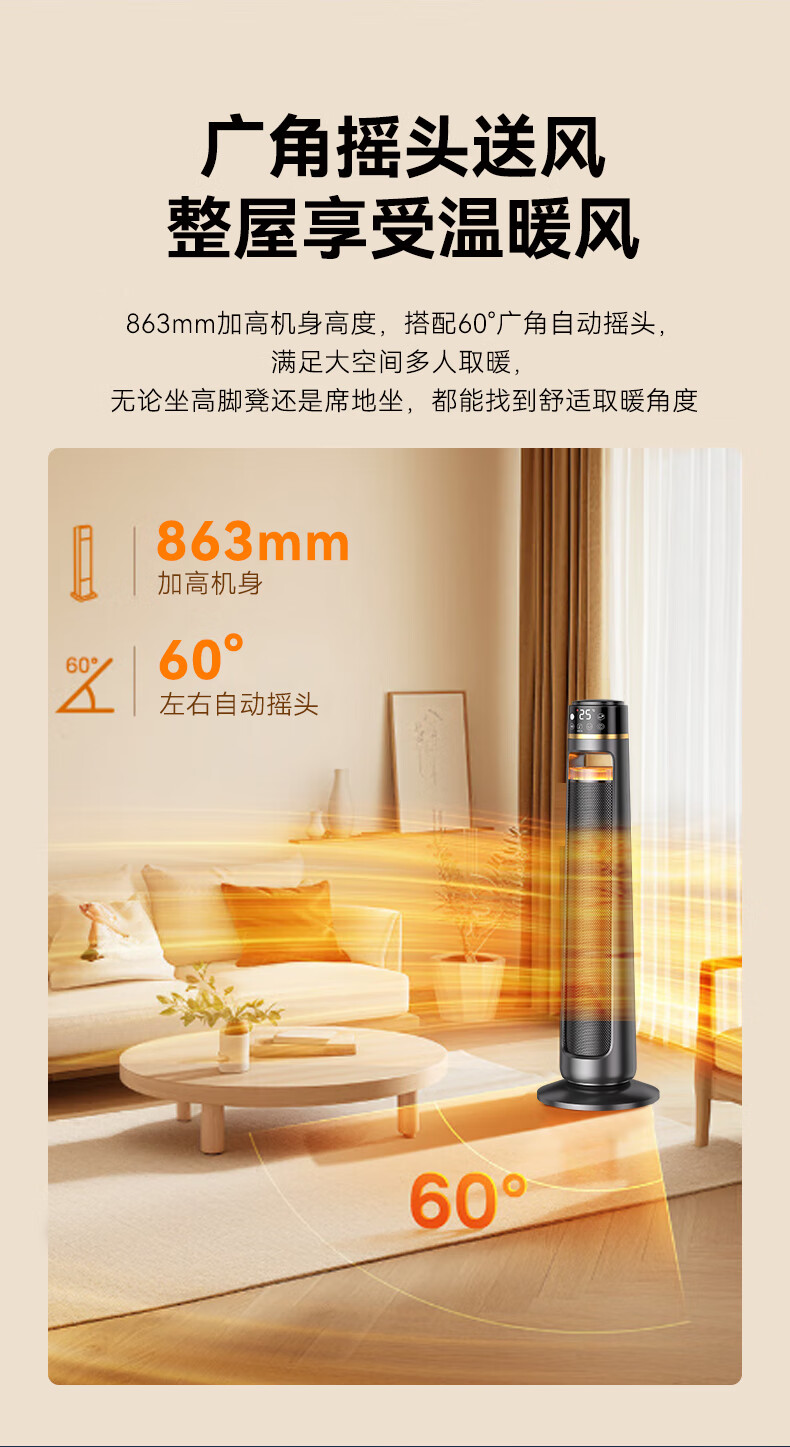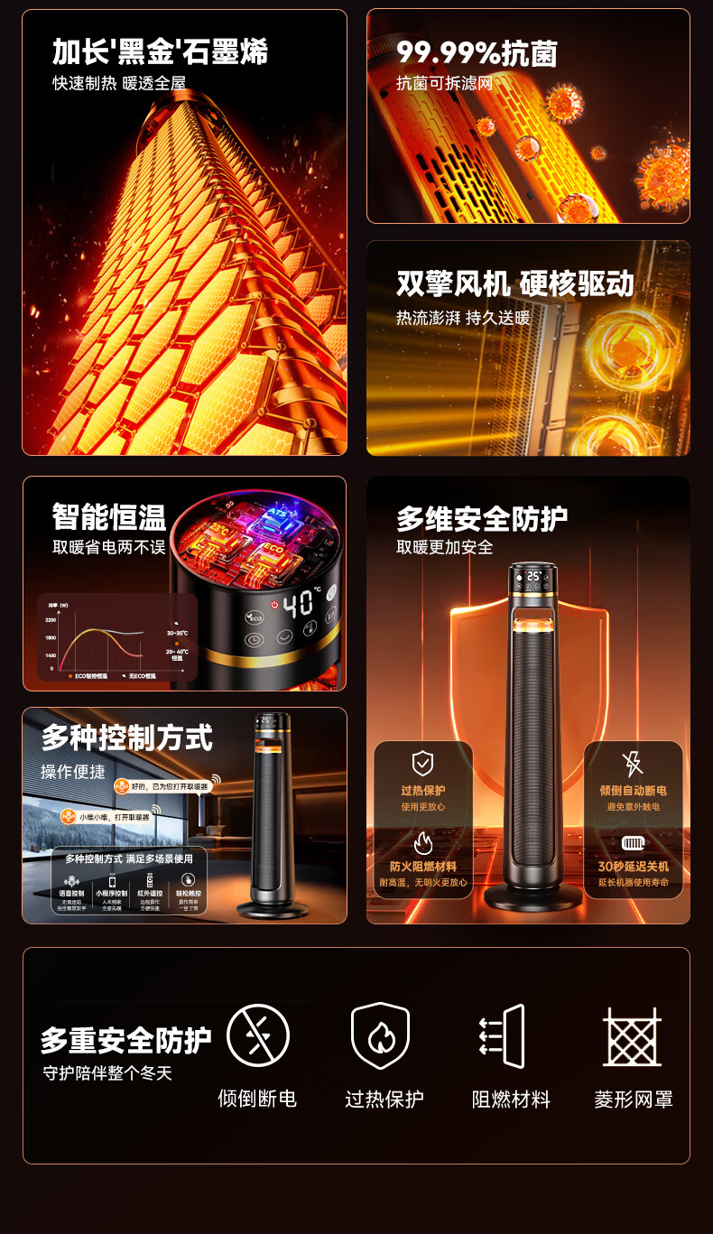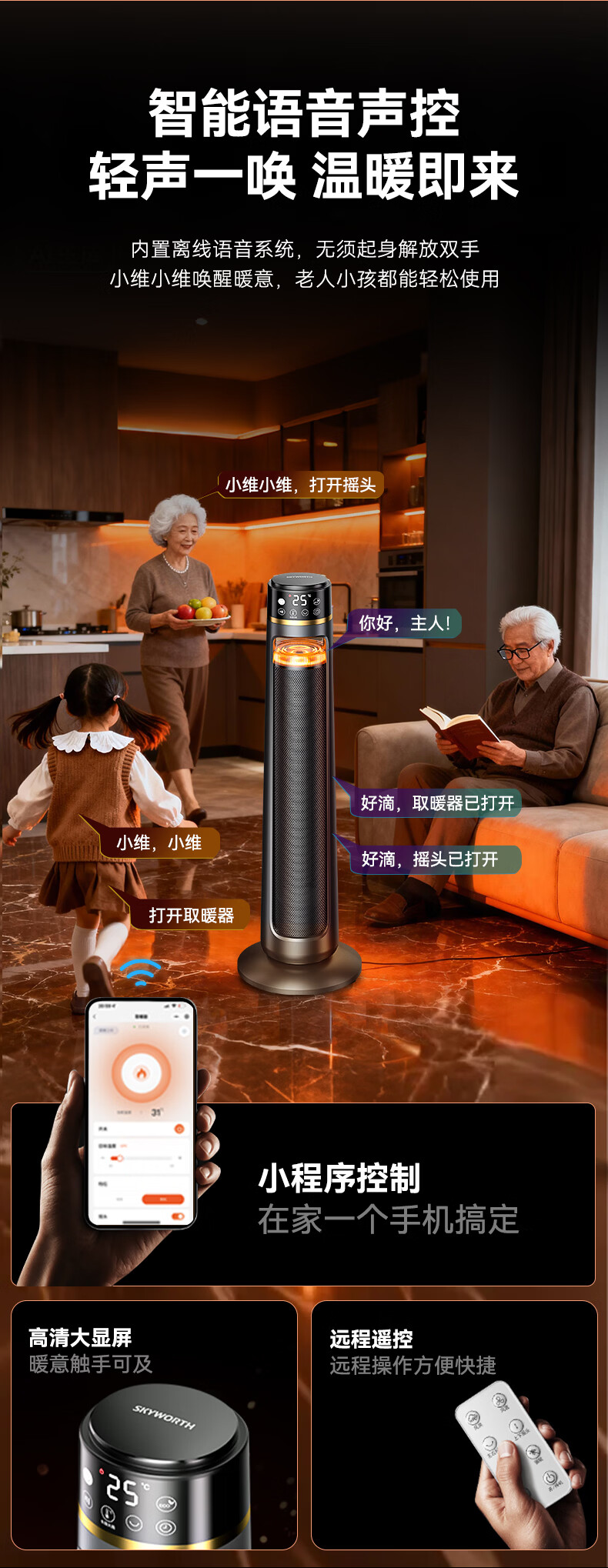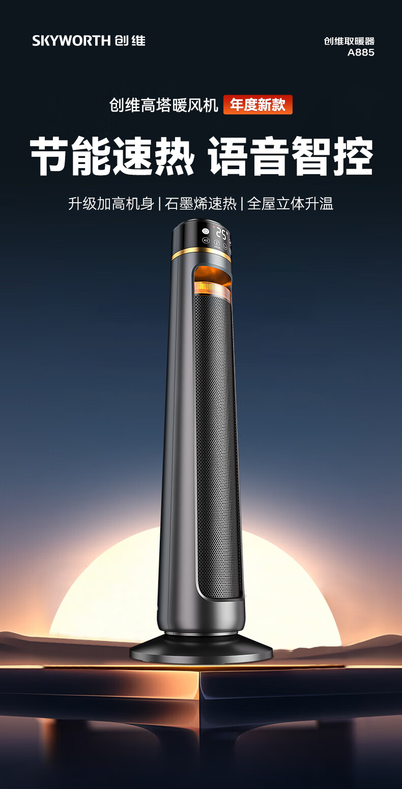 创维石墨烯暖风机电热取暖器家用智能语音遥控电暖器电暖气2025新款轻音节能省电小太阳全屋升温A885