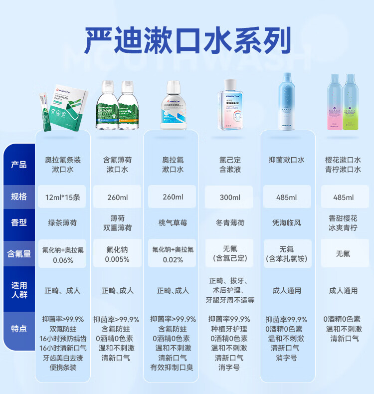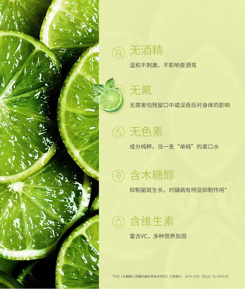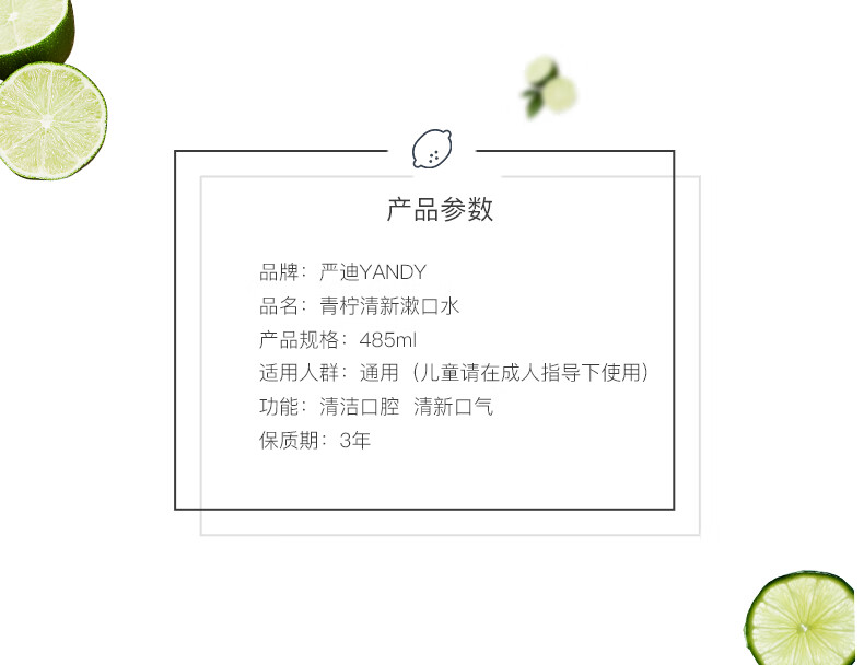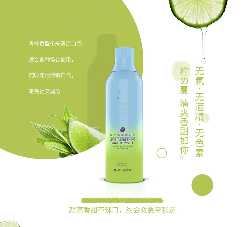 严迪(YANDY)青柠清新漱口水485ml(无酒精 无色素 含木糖醇及VC 清新口气)