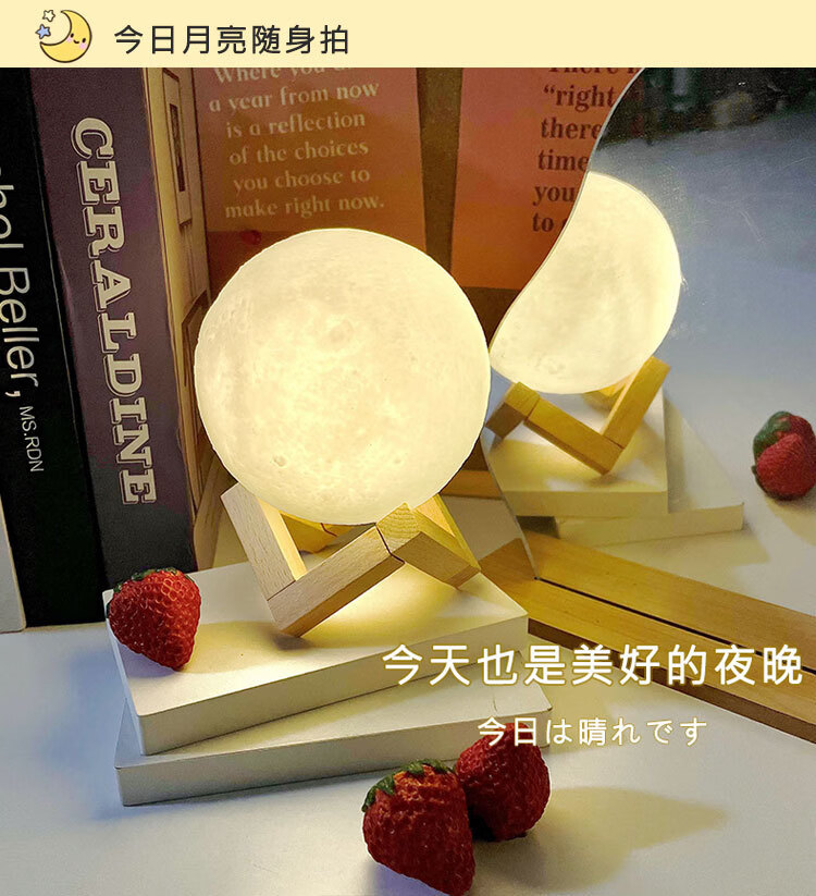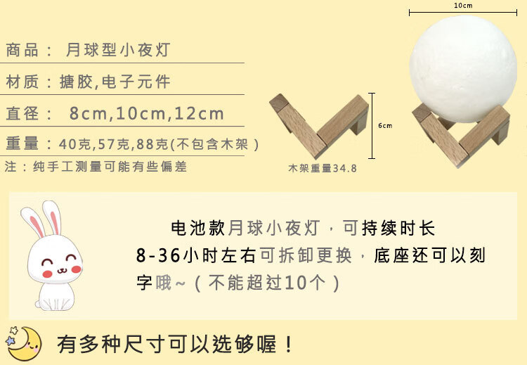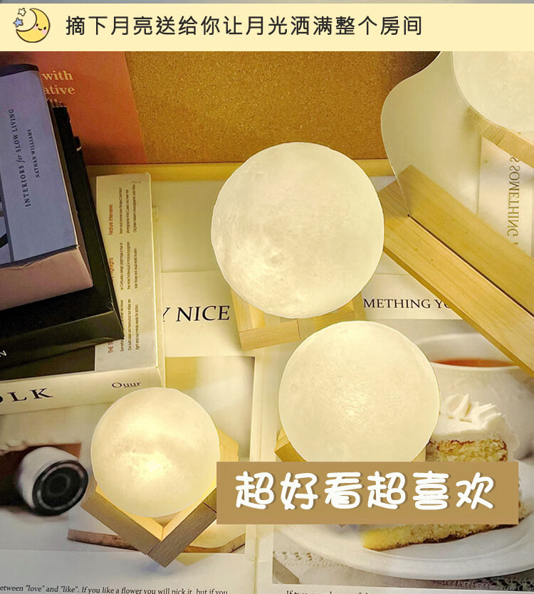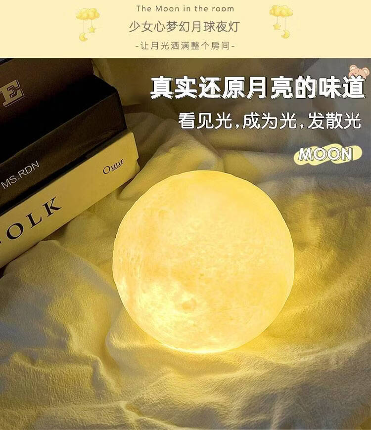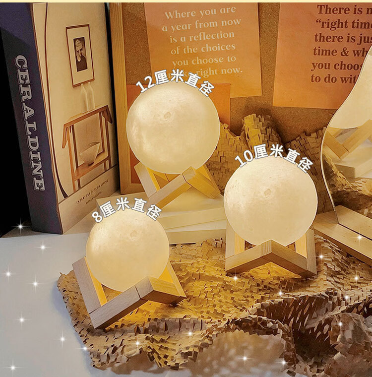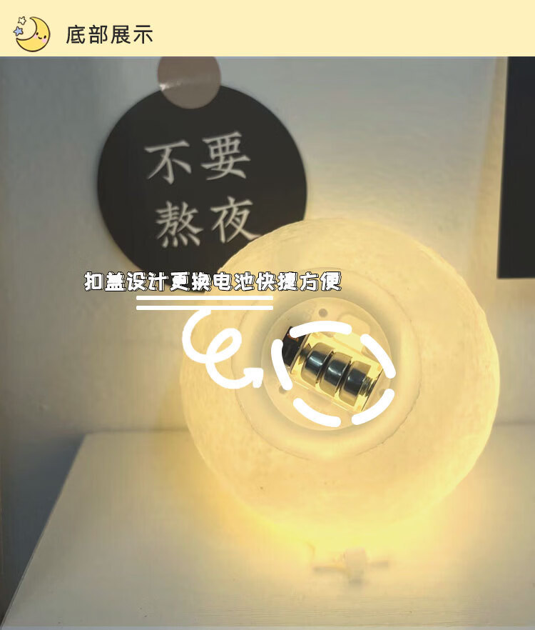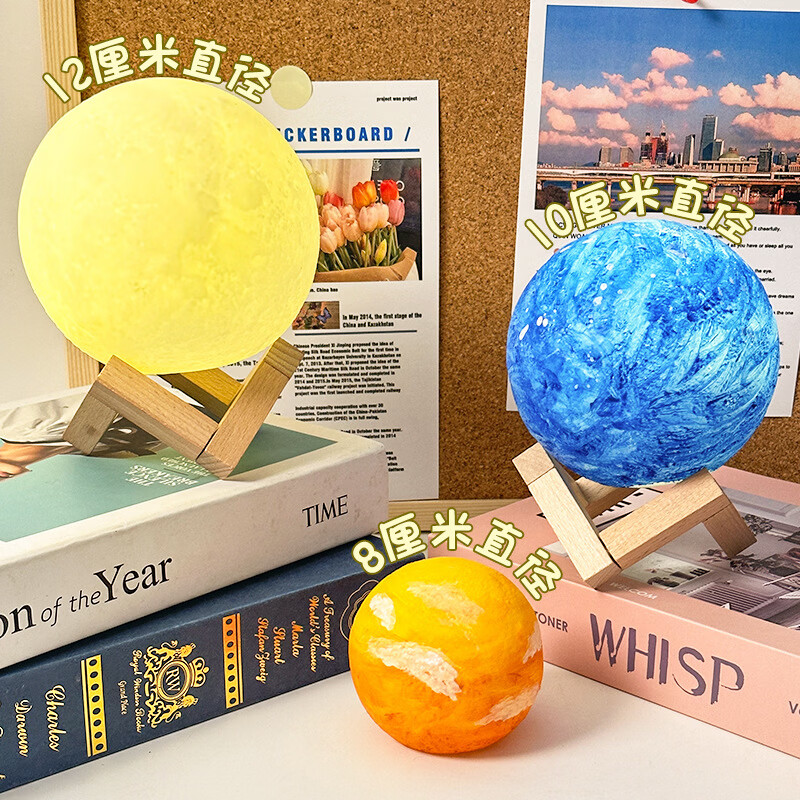 【精选好物】创意手绘月球灯小夜灯led卧室床头灯网红月亮灯diy涂 6cm含塑料支架(彩盒包装 暖光
