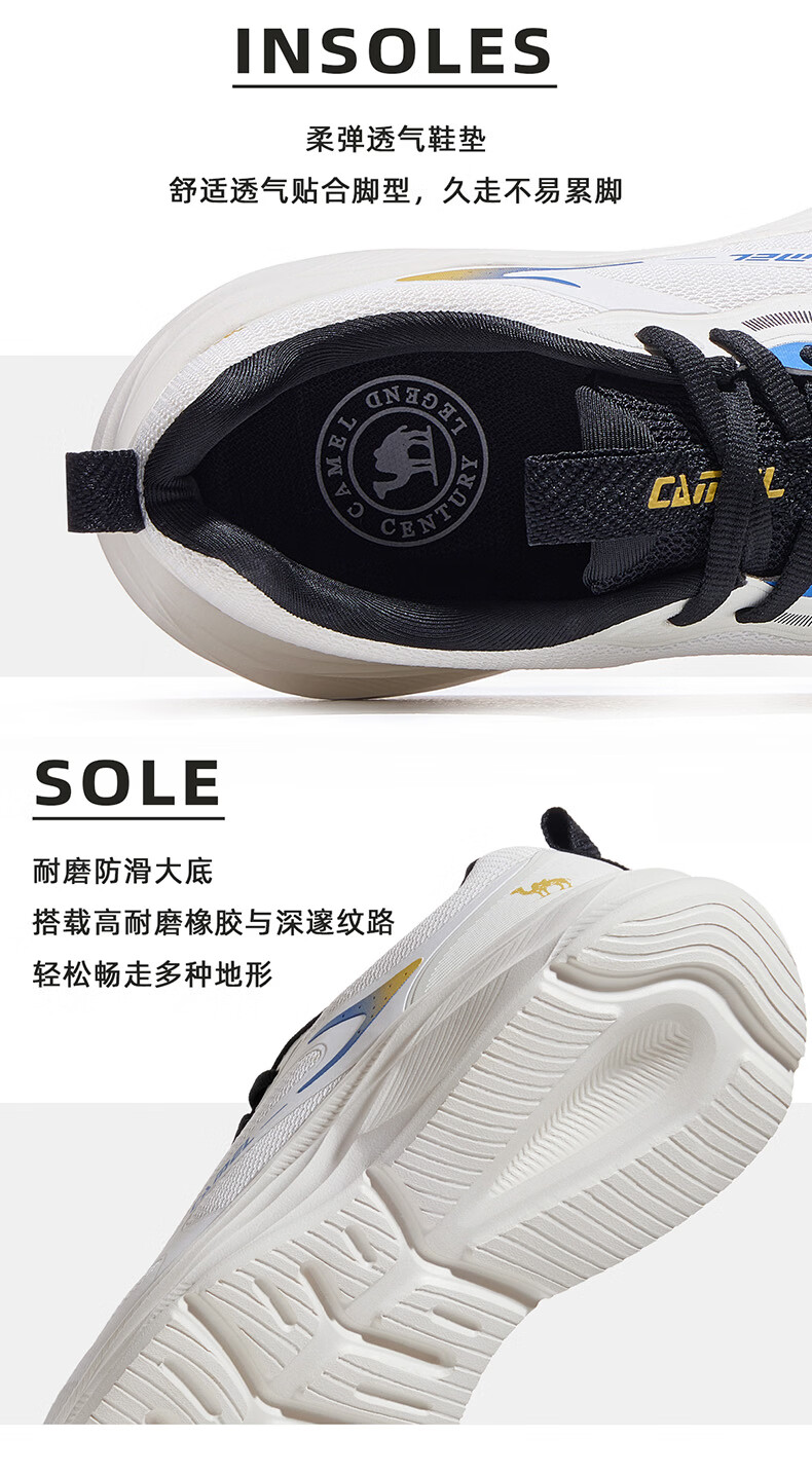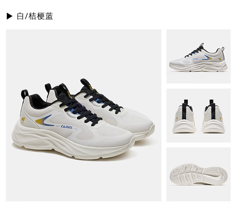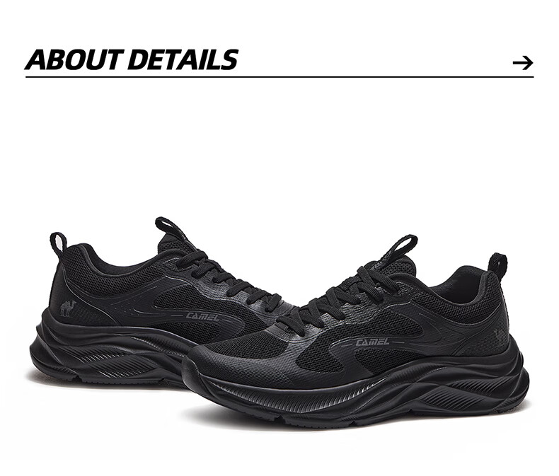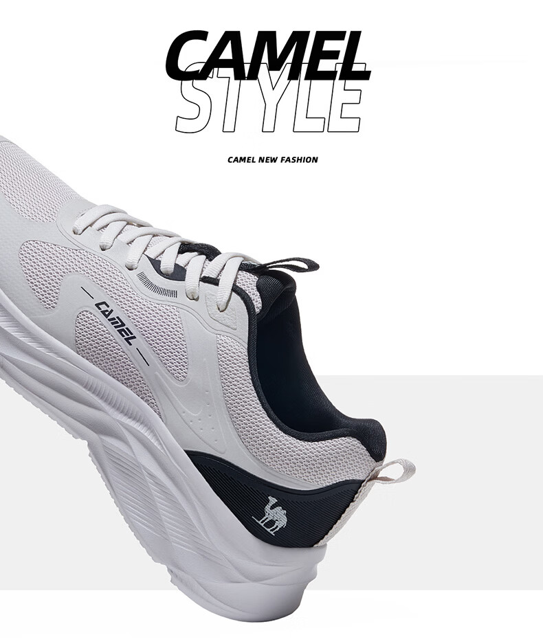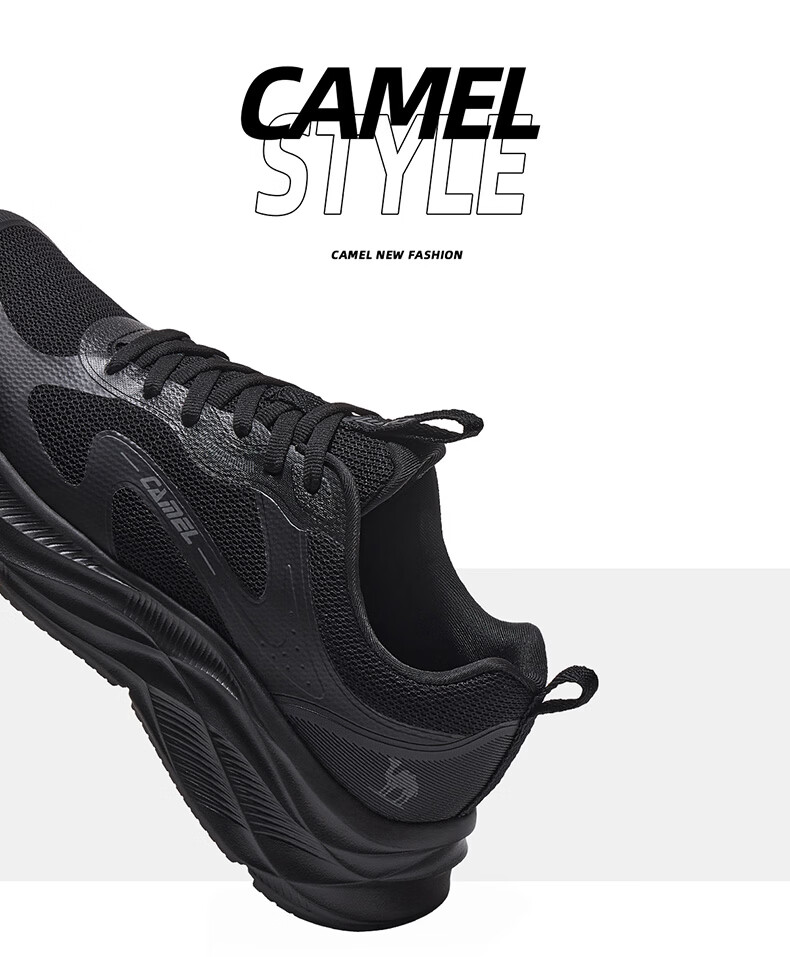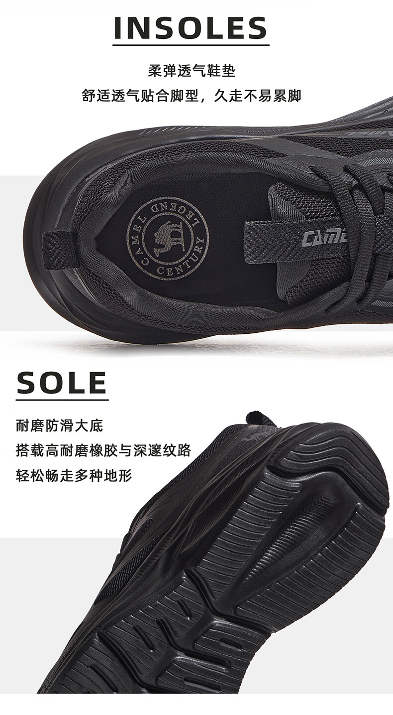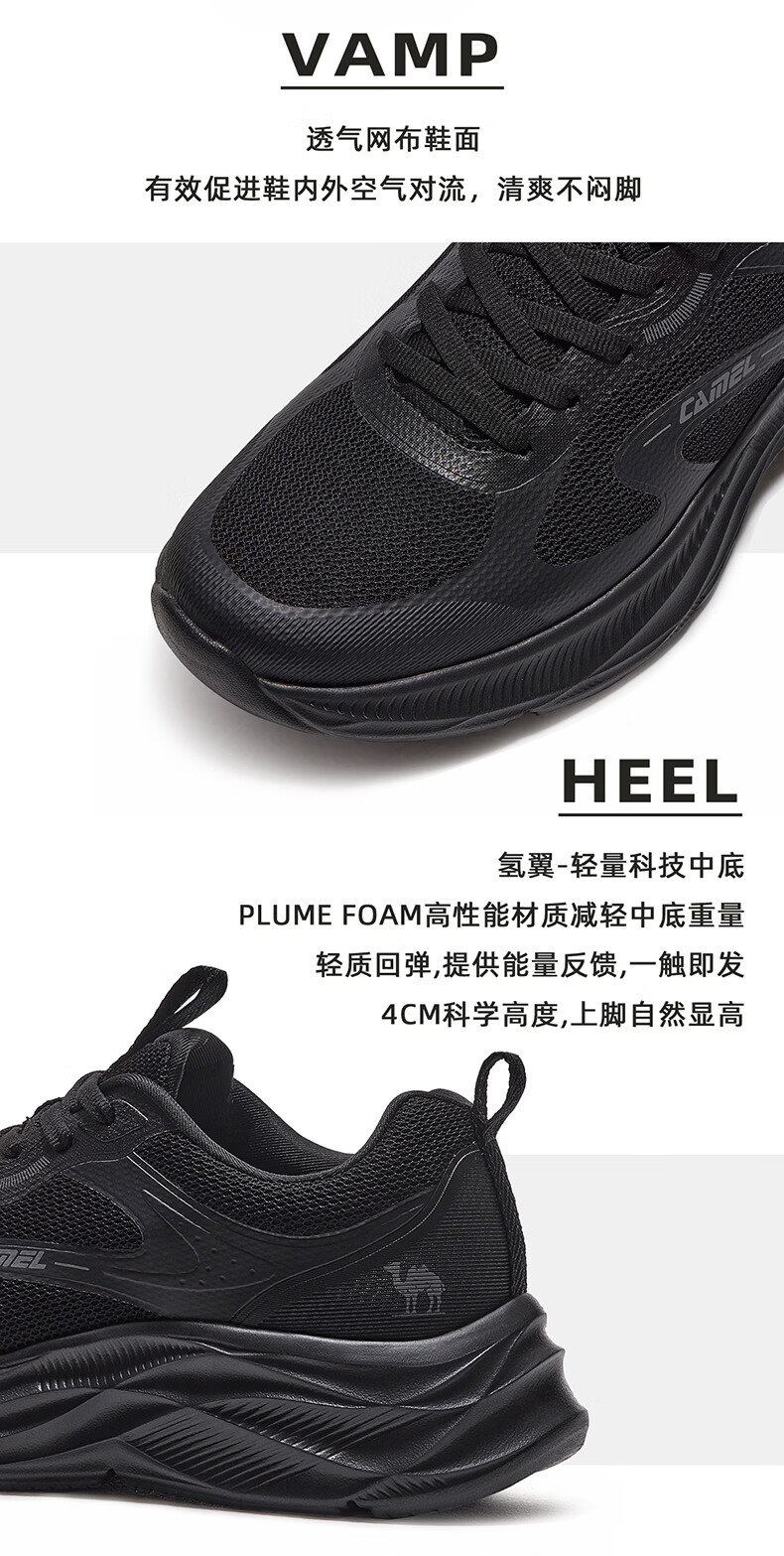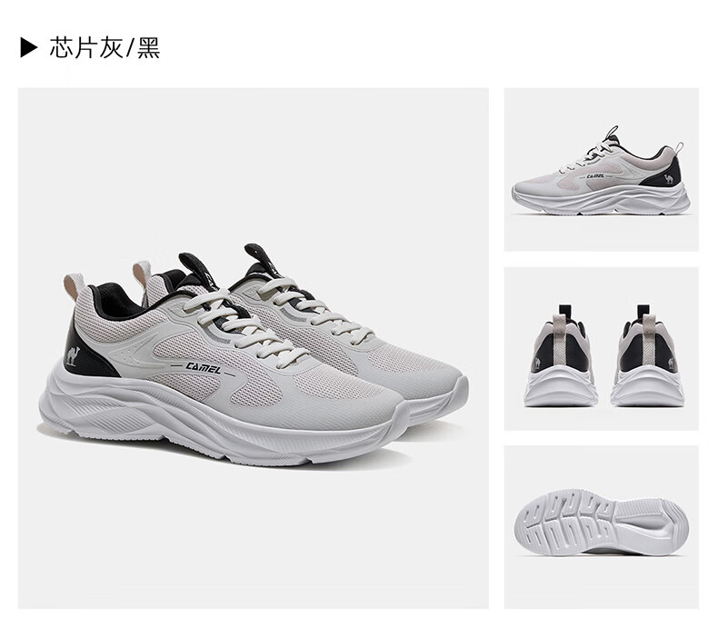 骆驼(CAMEL)疾风3代轻量透气2026运动男女鞋爸爸妈妈缓震旅游跑步鞋 K16B304059,黑/城堡灰,男 42