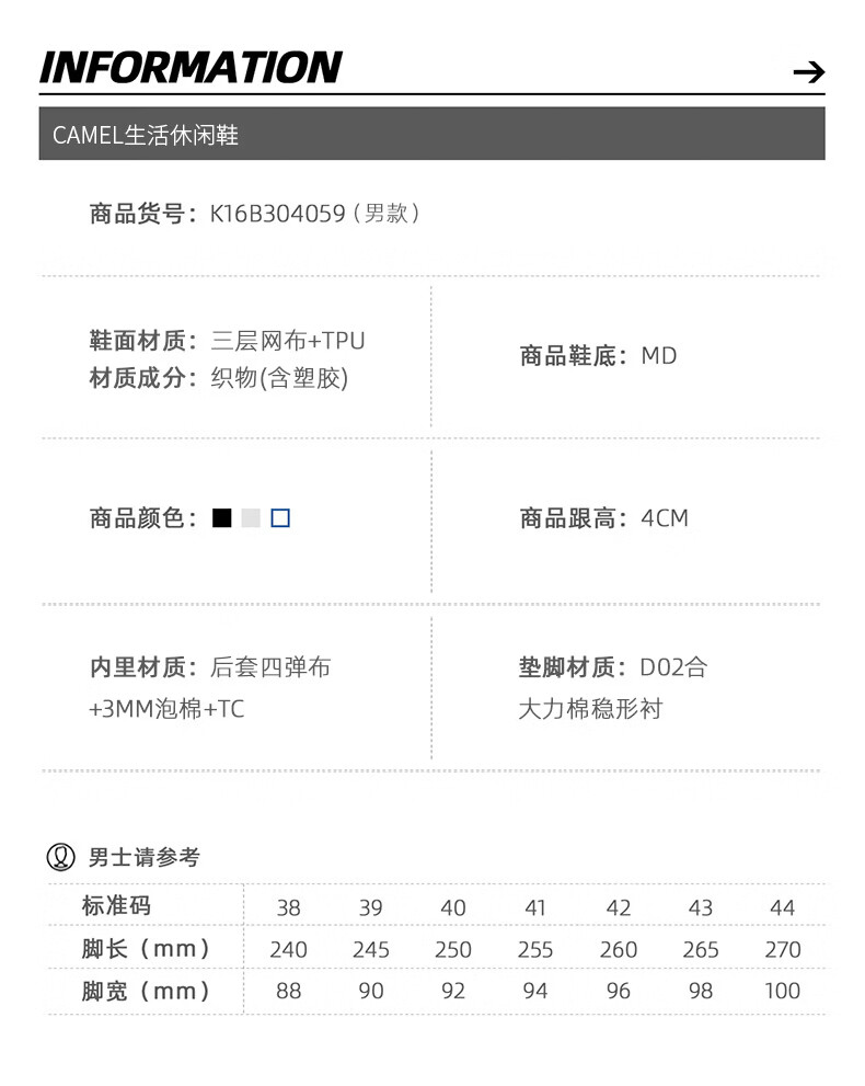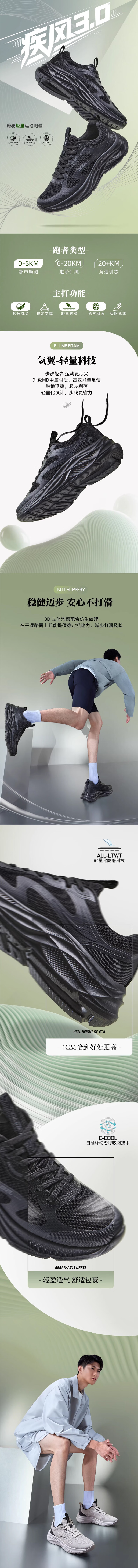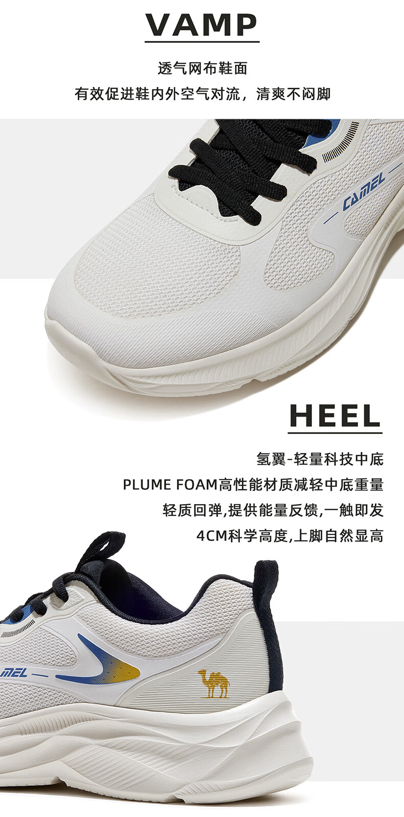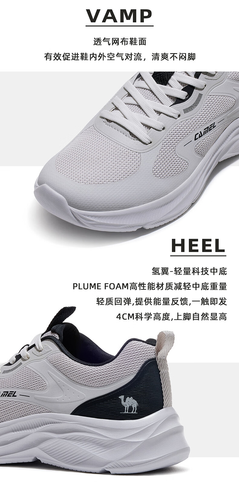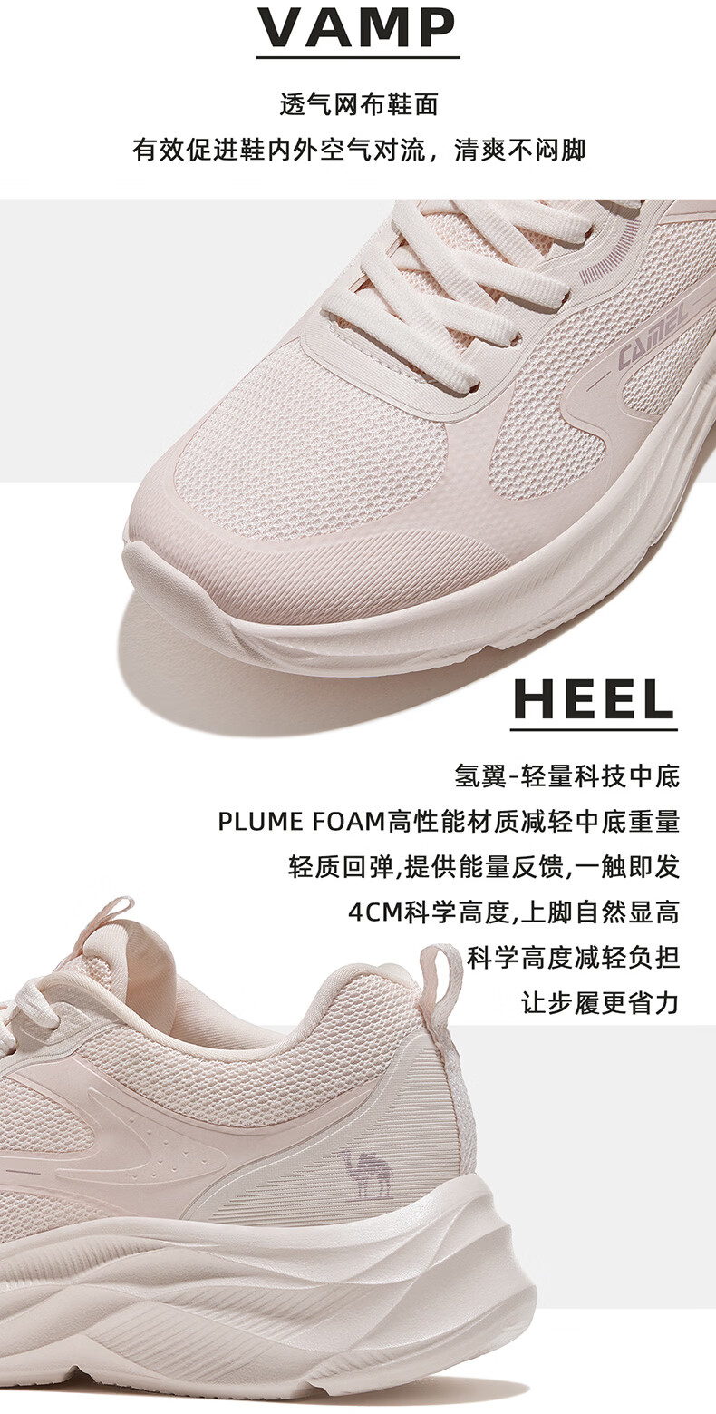 骆驼(CAMEL)疾风3代轻量透气2026运动男女鞋爸爸妈妈缓震旅游跑步鞋 K16B304059,黑/城堡灰,男 42
