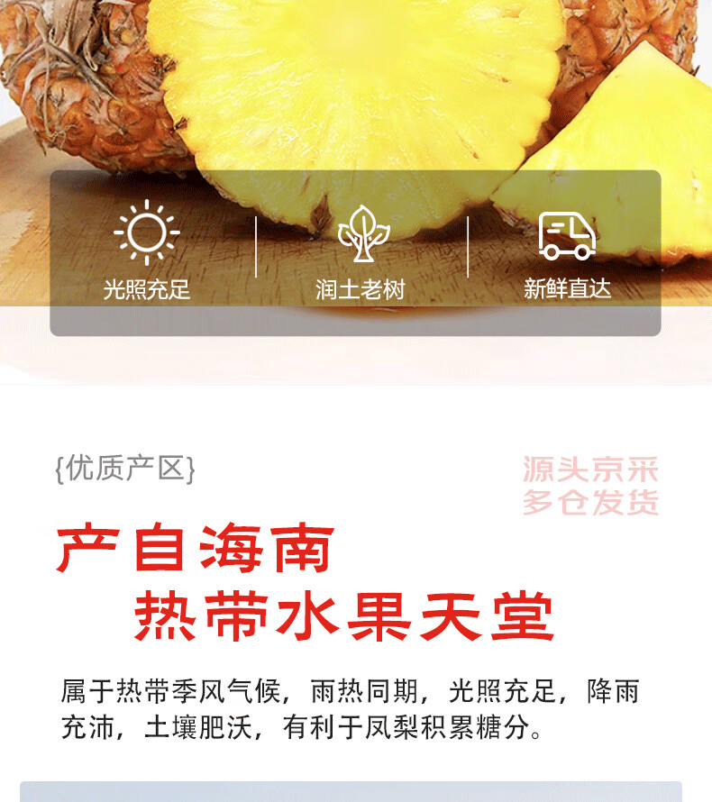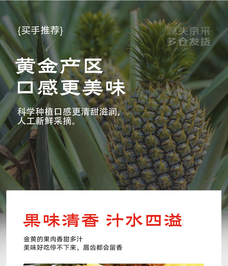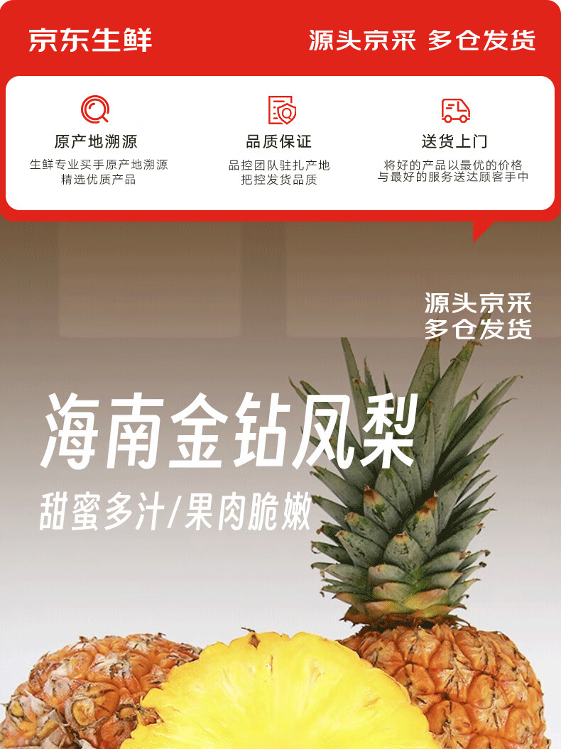 京鲜生 海南金钻凤梨 净重4.5-5斤 单果650g 生鲜水果 源头直发