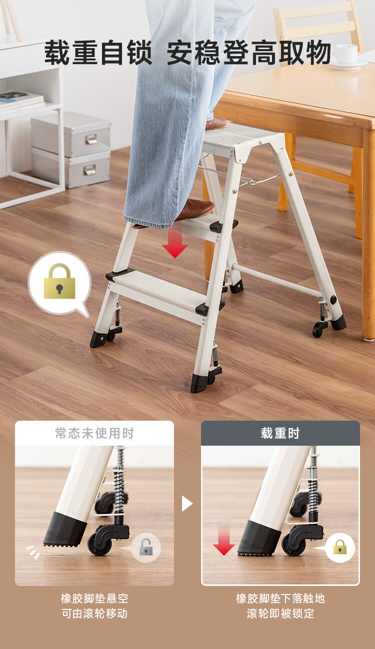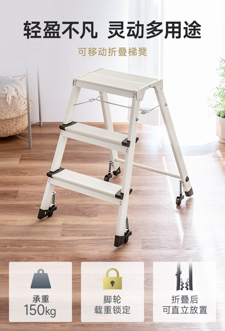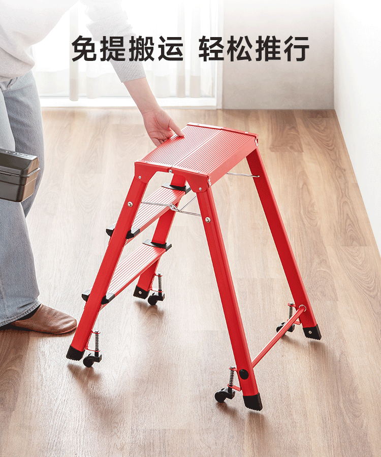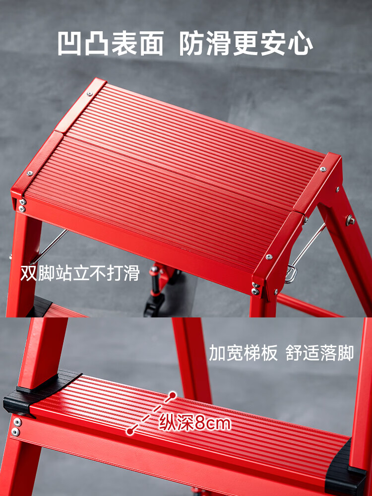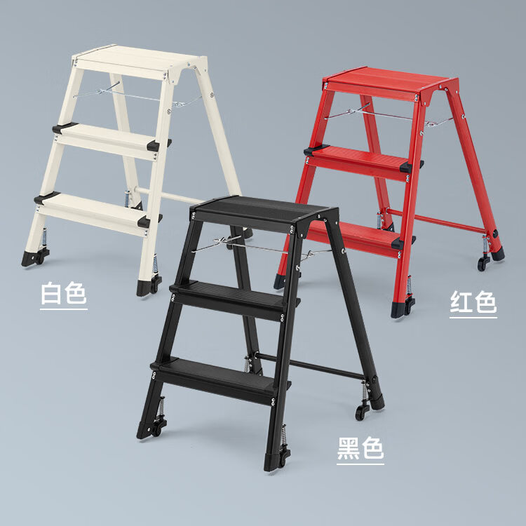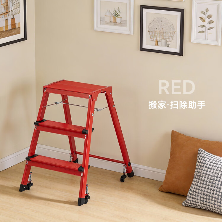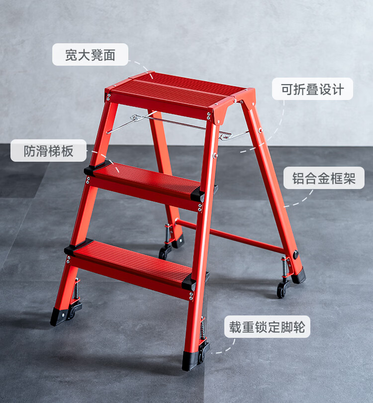 山业安全梯人字梯家用梯凳加厚折叠梯子多功能登高凳子爬梯三步梯加厚 【轮承重自锁】【300斤承重】【铝合金】乔迁红 三步梯