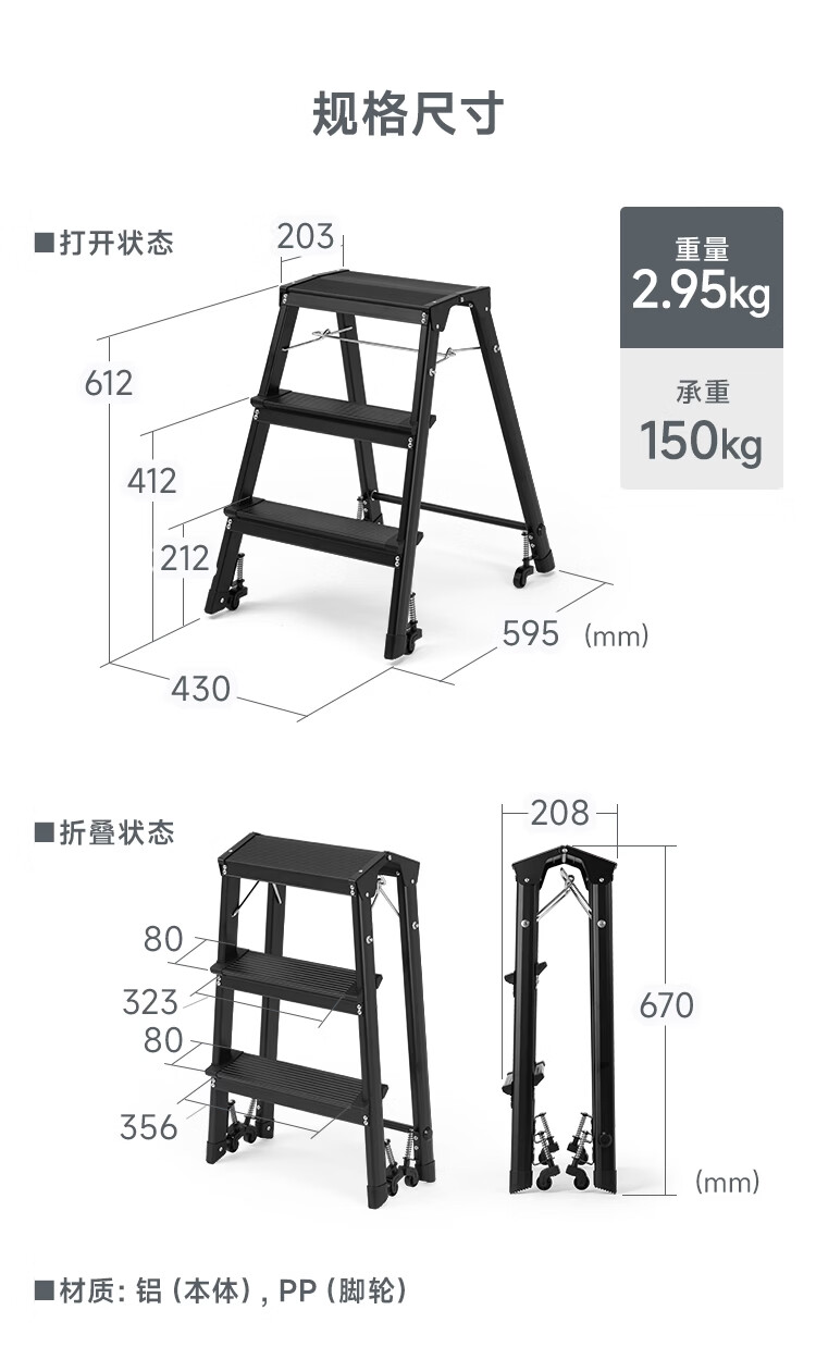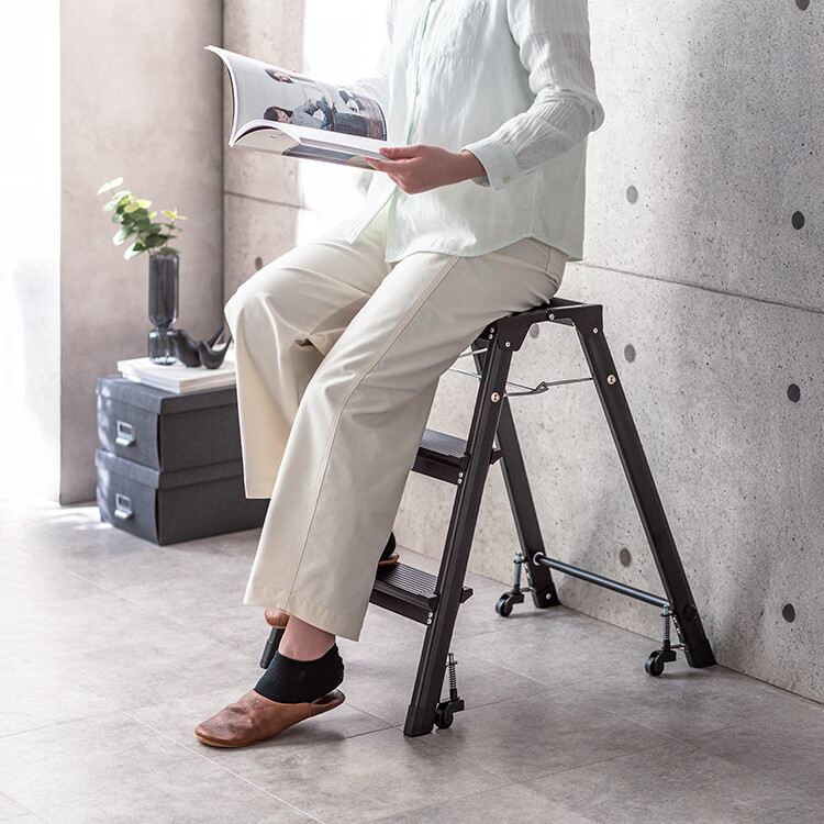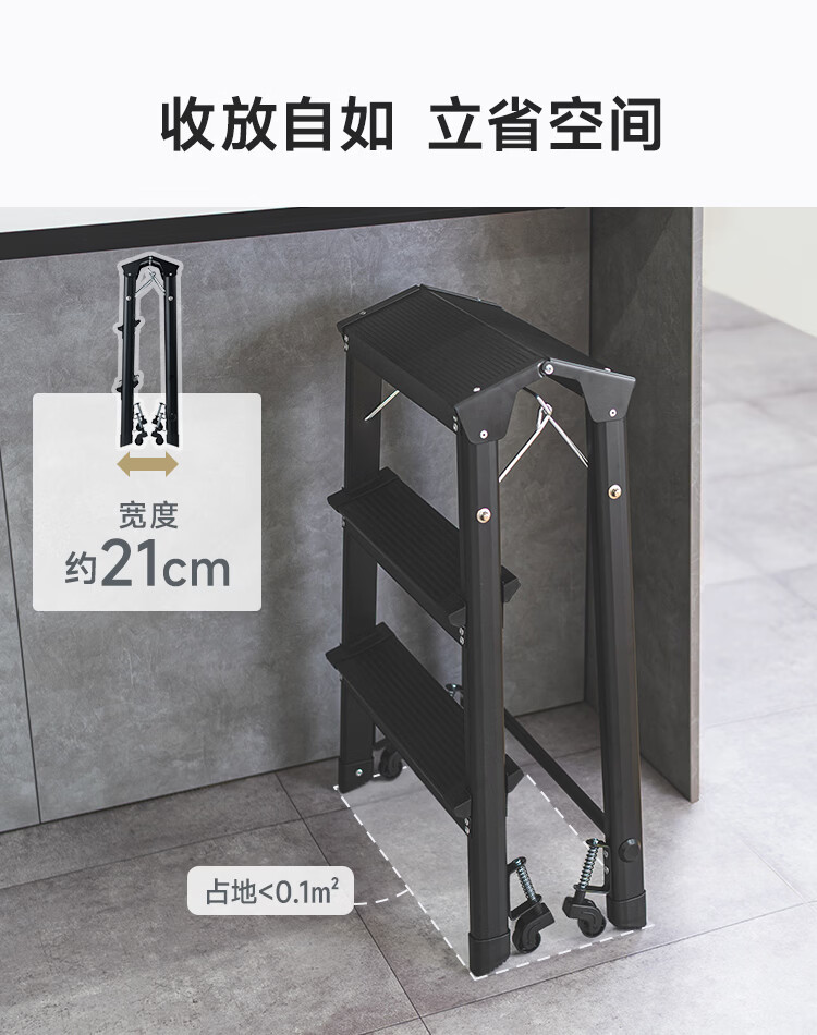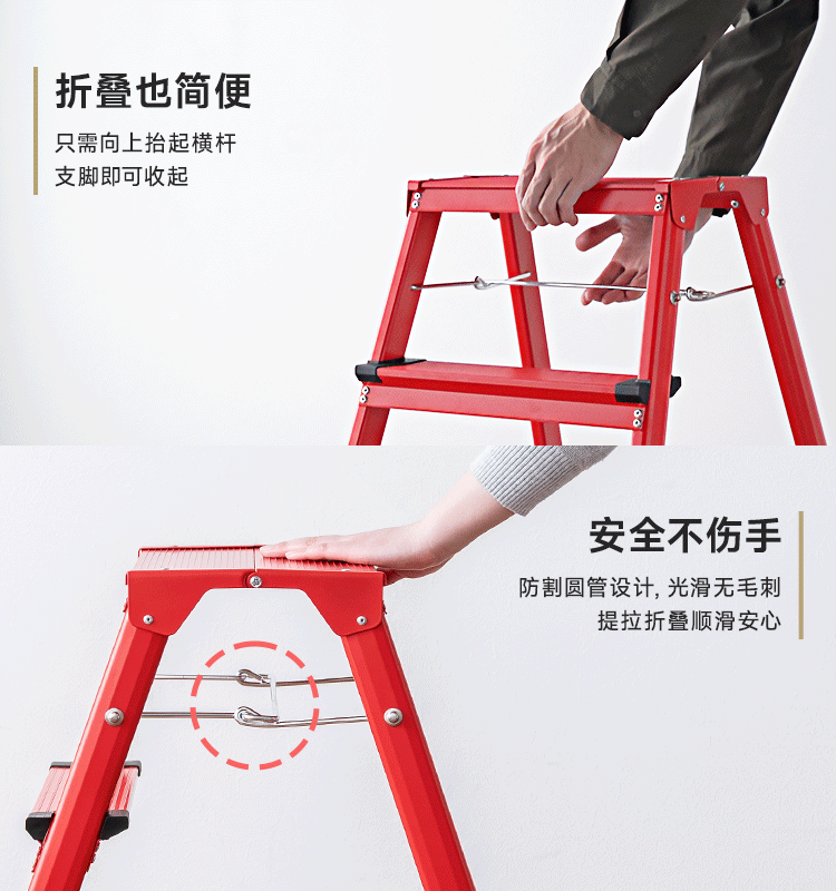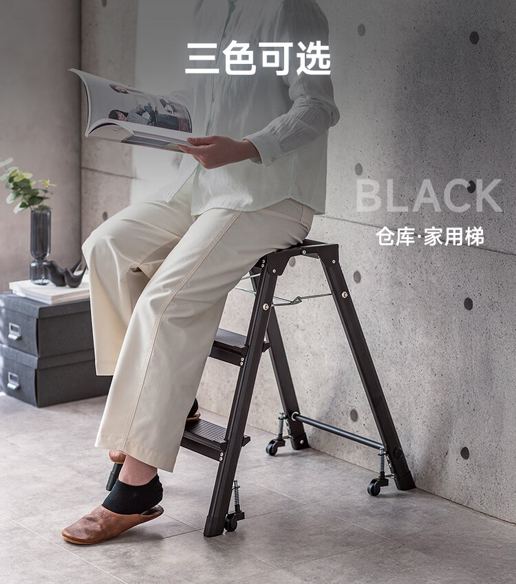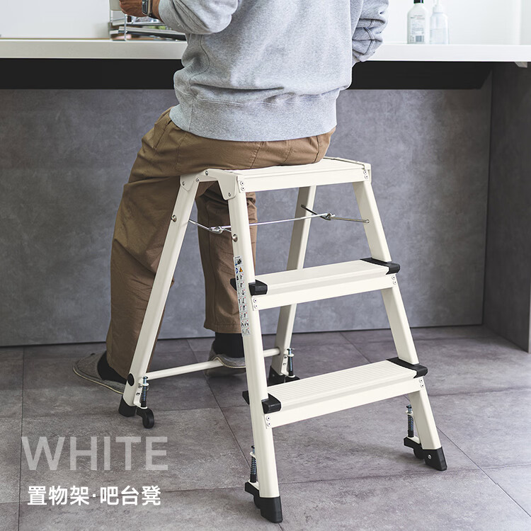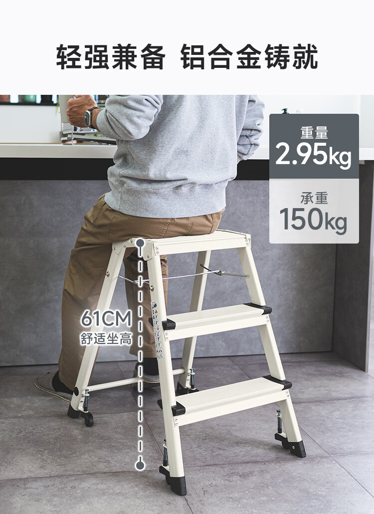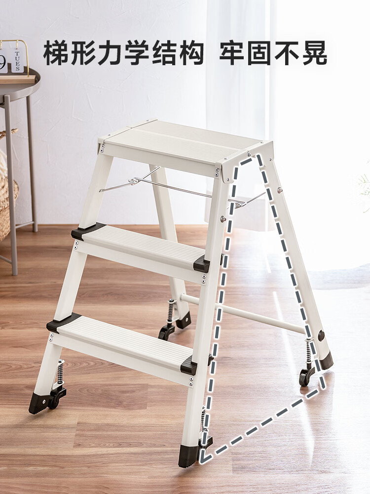 山业安全梯人字梯家用梯凳加厚折叠梯子多功能登高凳子爬梯三步梯加厚 【轮承重自锁】【300斤承重】【铝合金】乔迁红 三步梯