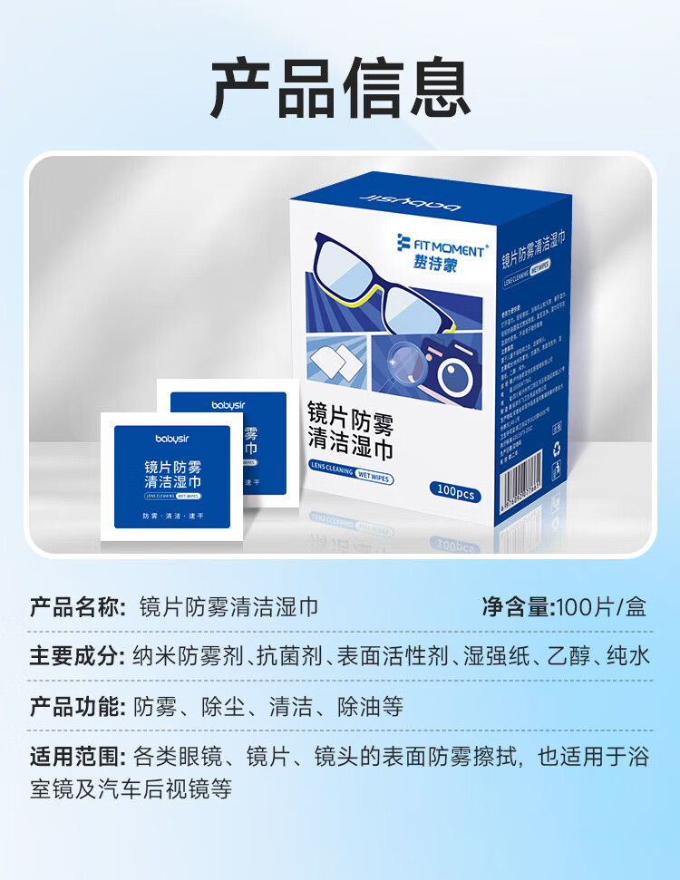 FIT MOMENT眼镜清洁湿巾防雾眼镜湿巾纸不伤镜片擦手机镜头速干不留痕100片