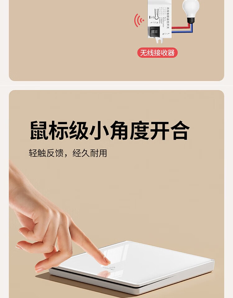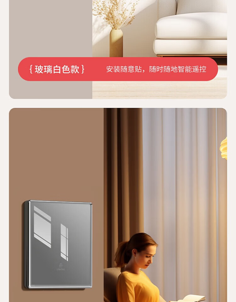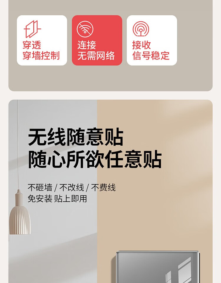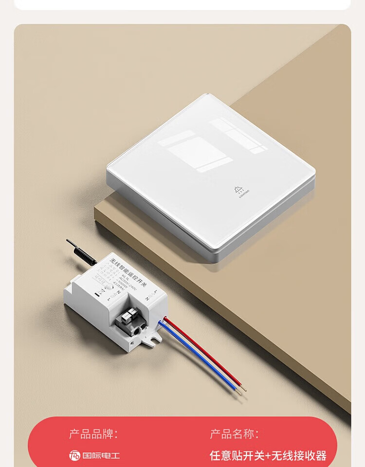 国际电工钢化玻璃无线远程遥控开关无需改线卧室智能遥控远距离控制灯具 一开随意贴2个+接收器1个【白色】
