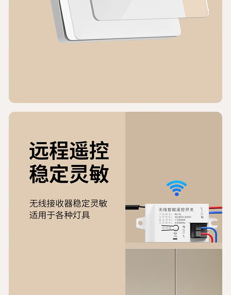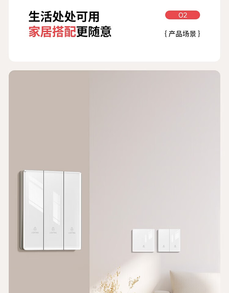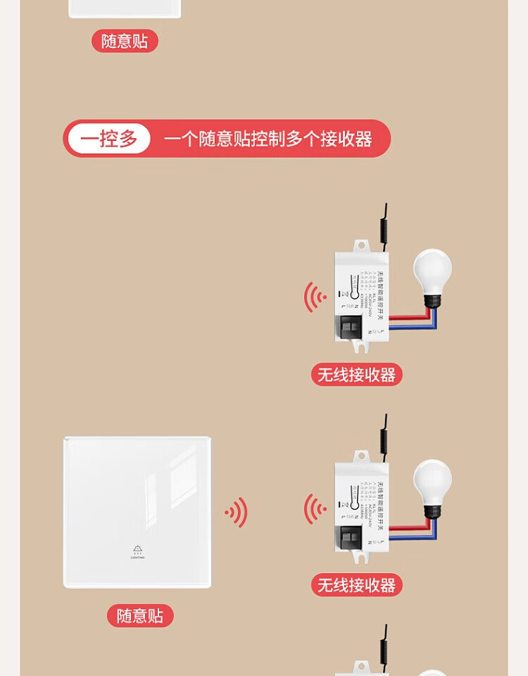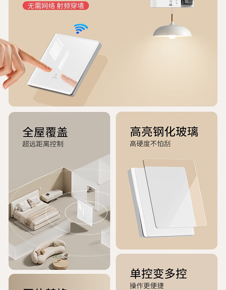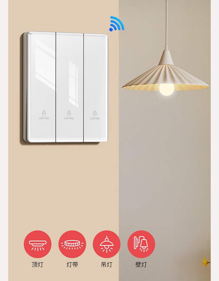 国际电工钢化玻璃无线远程遥控开关无需改线卧室智能遥控远距离控制灯具 一开随意贴2个+接收器1个【白色】