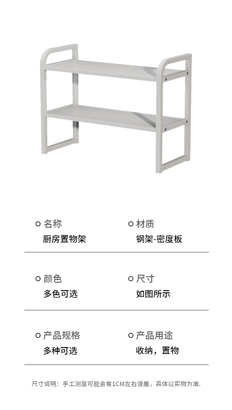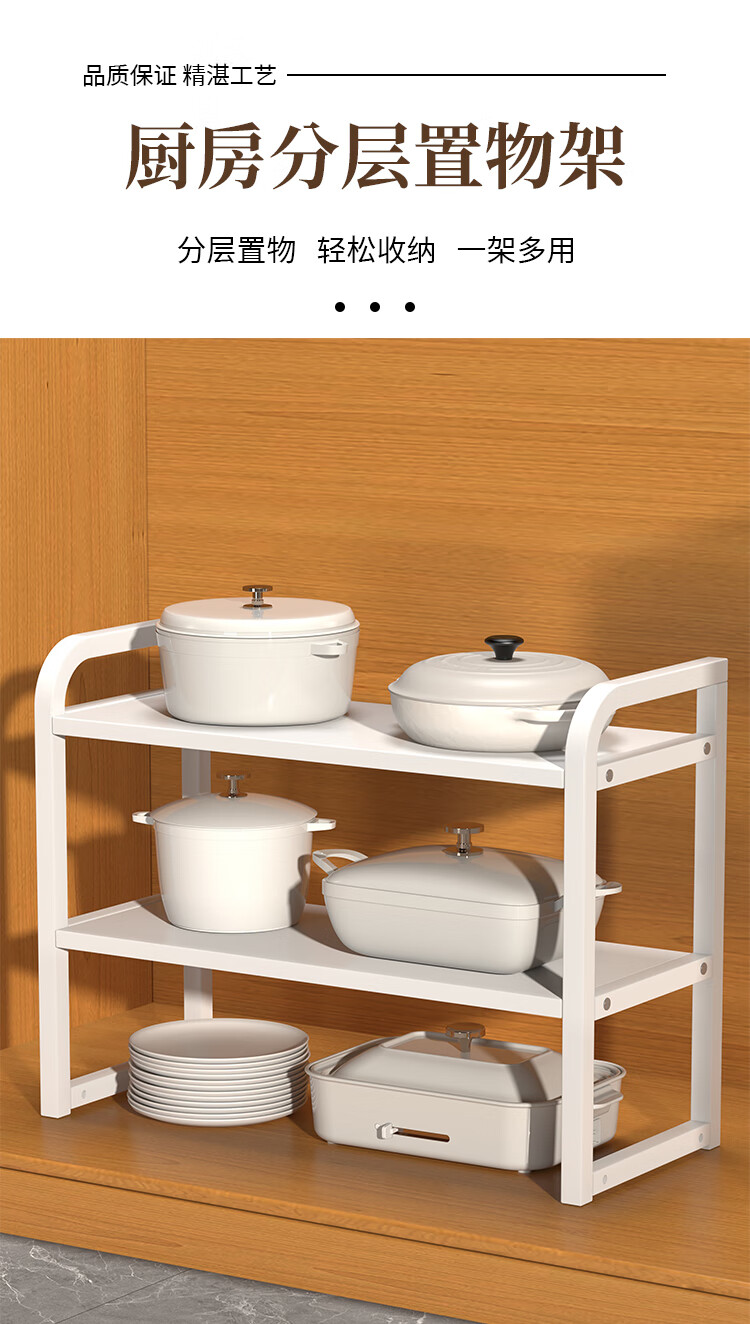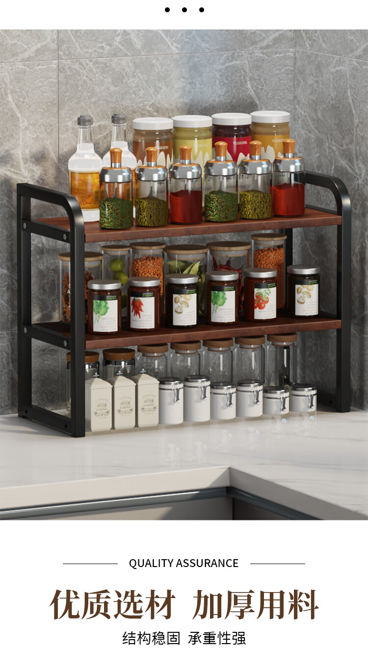 馨婺家厨房置物架调料架盘子锅架家用多层台面酱油瓶醋调味品收纳置物架 白架+暖白色-双层 【30*16*42cm】