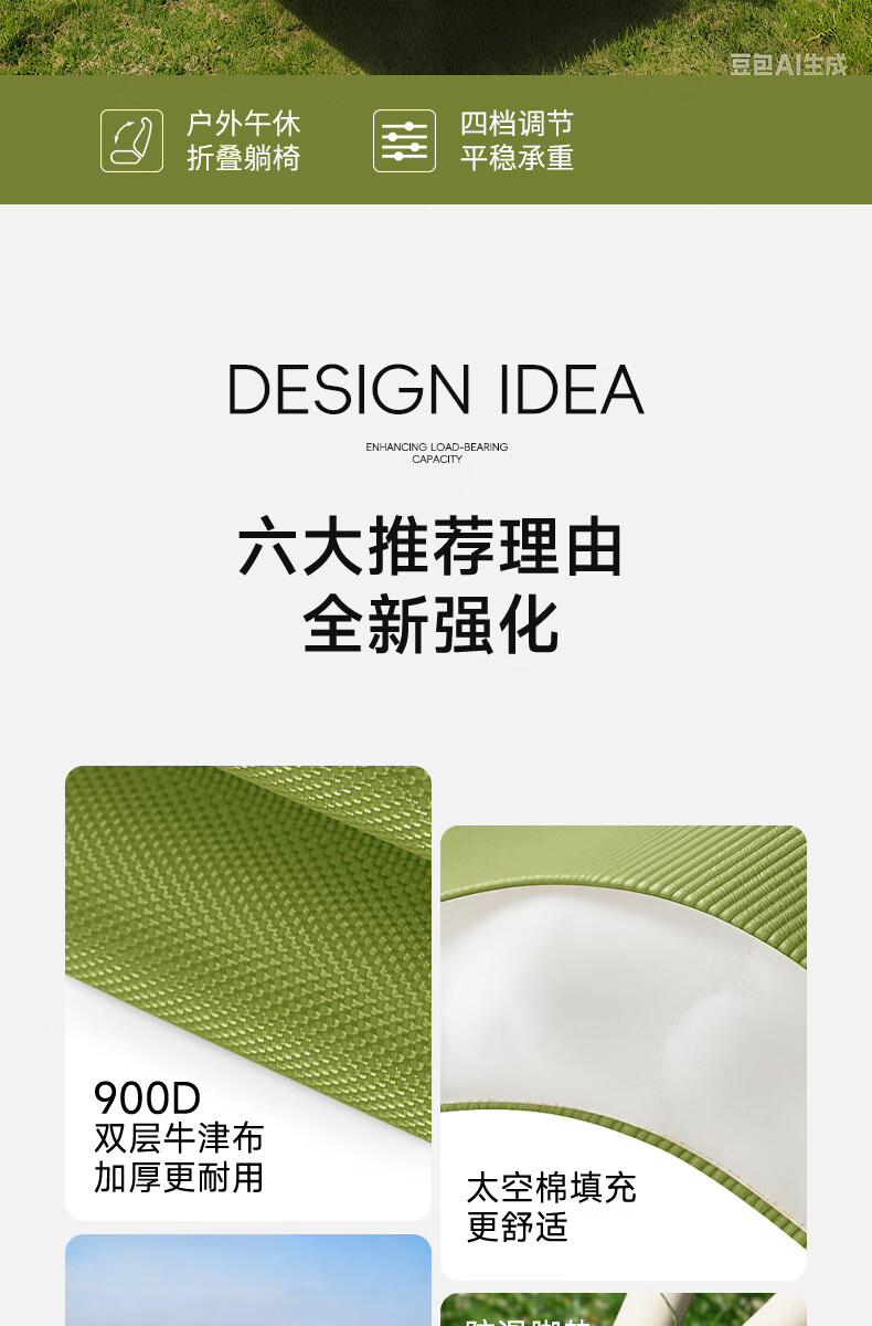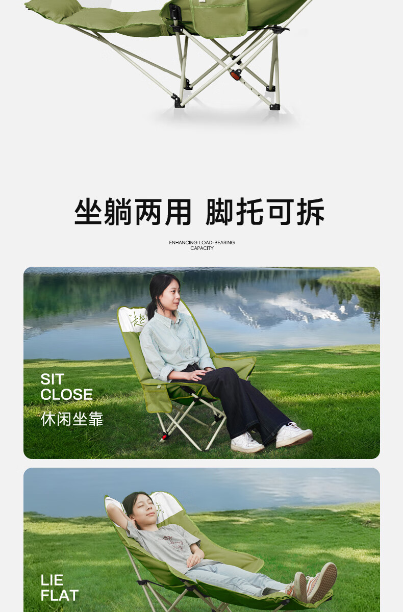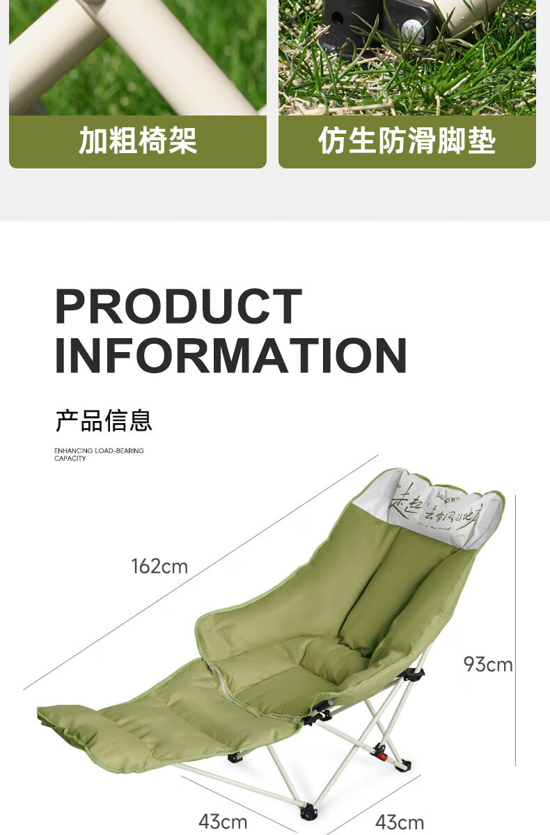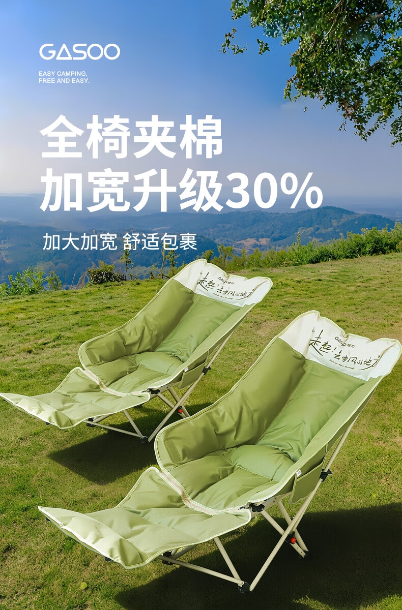gosoo躺椅户外折叠椅午睡椅坐躺两用加棉露营椅办公室午休陪护折叠床绿