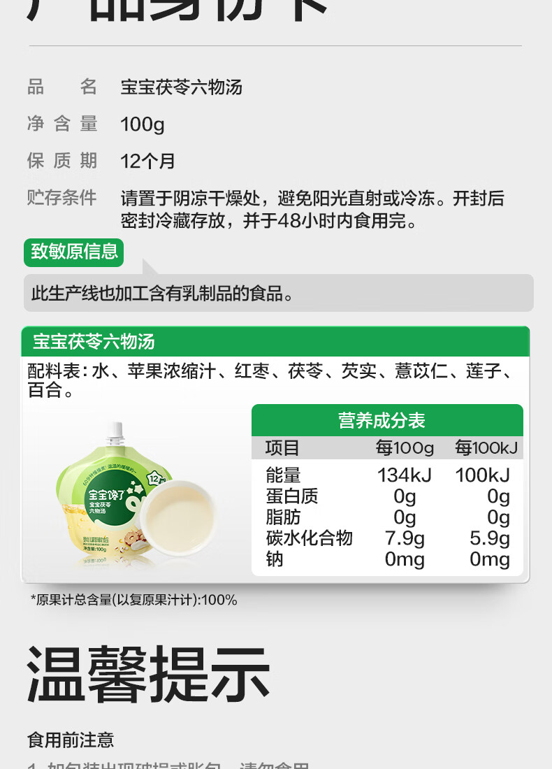 宝宝馋了宝宝茯苓六物汤100g宝宝苹果汁饮料无添加白砂糖儿童饮料水