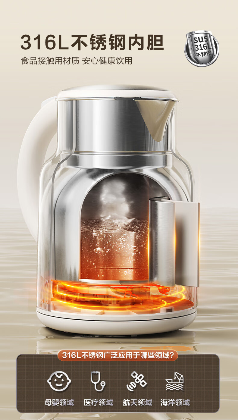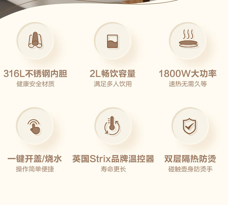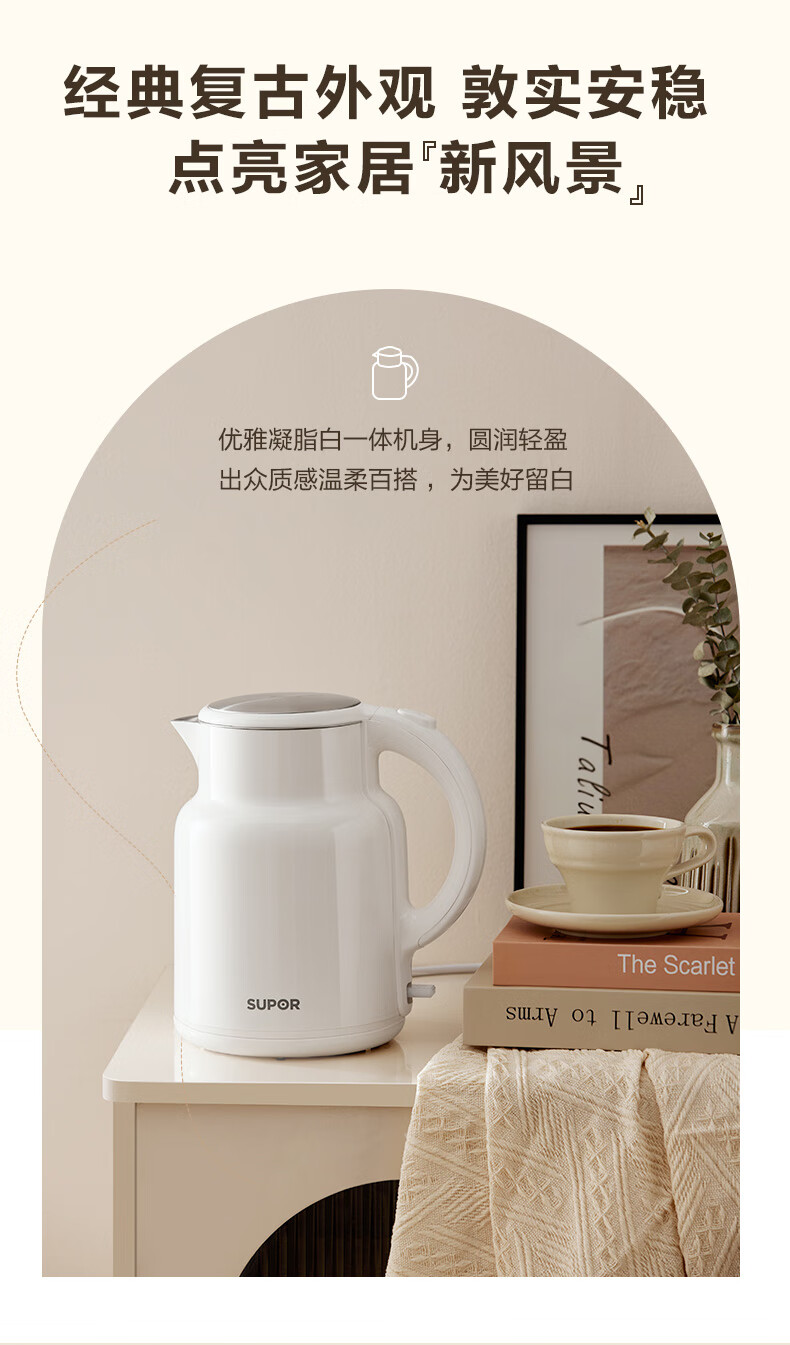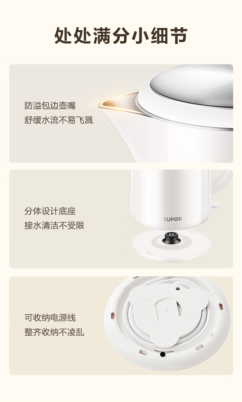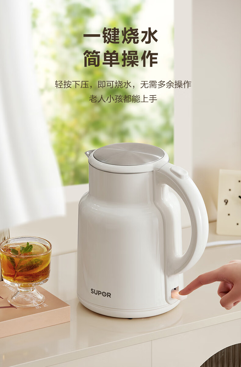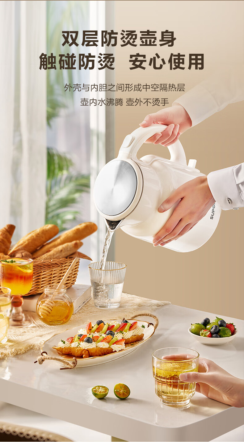 苏泊尔(SUPOR)吨吨大容量电水壶烧水壶 2L大容量 全钢无缝电热水壶 316L不锈钢热水壶 SW-20T06L