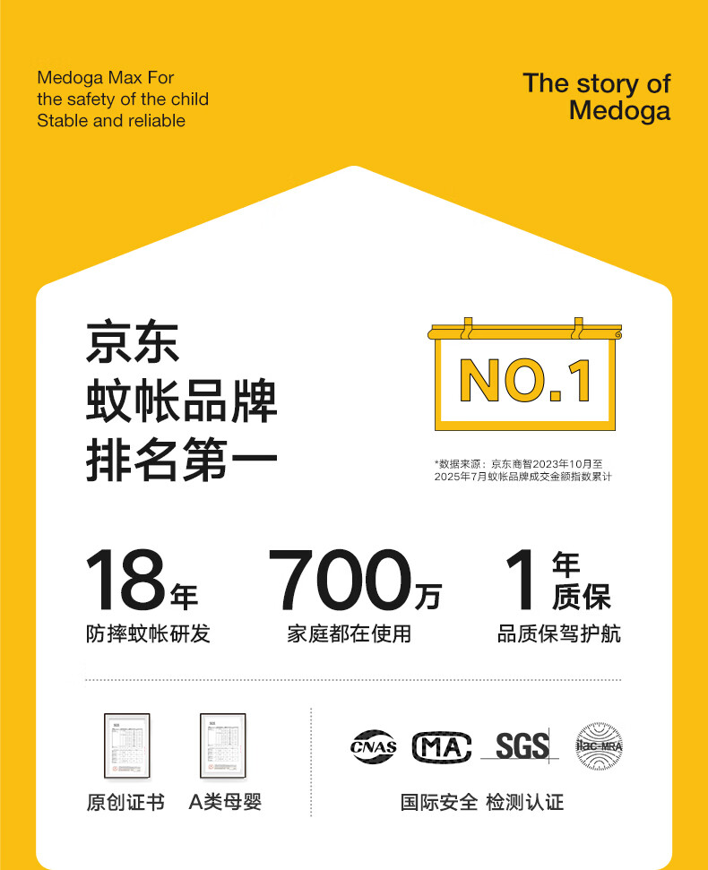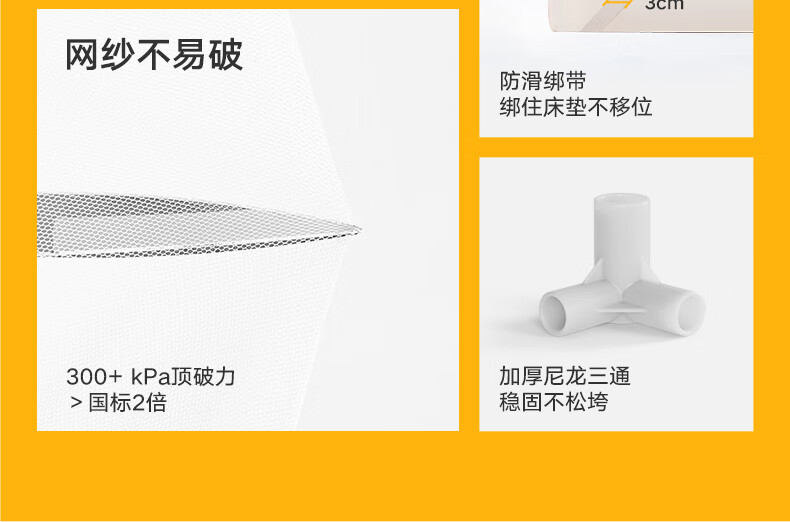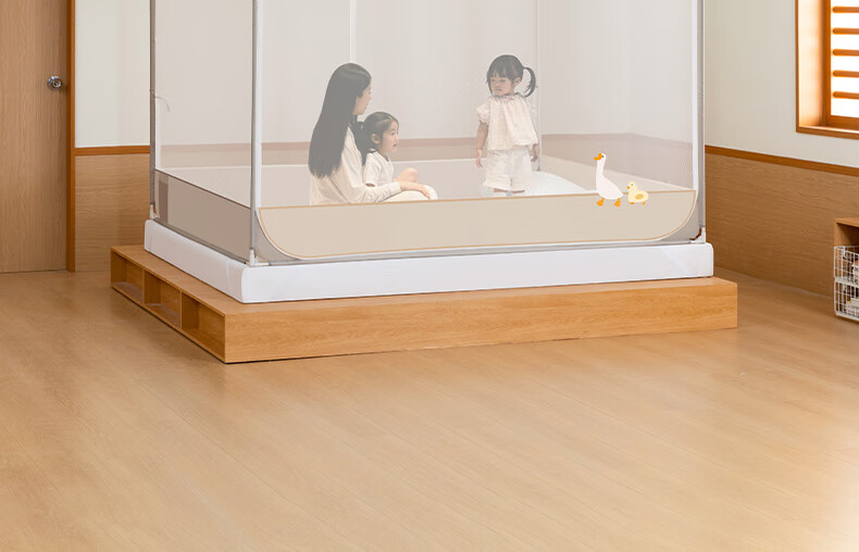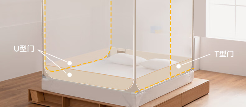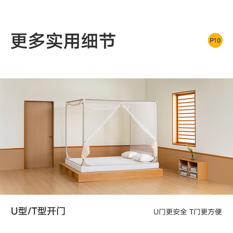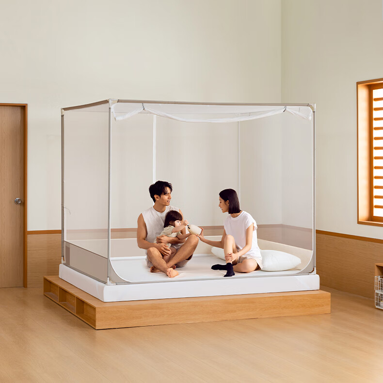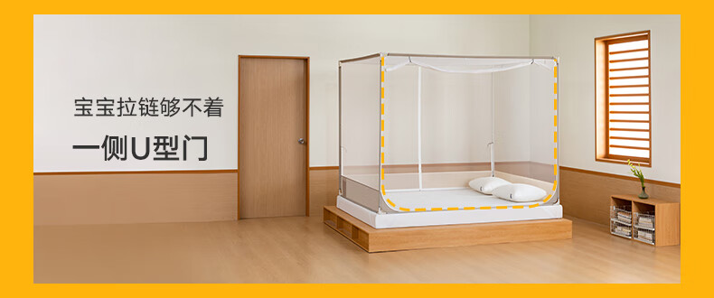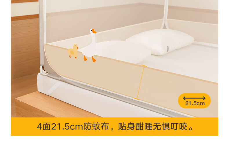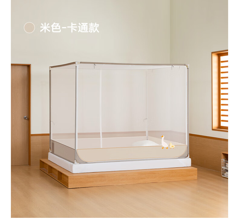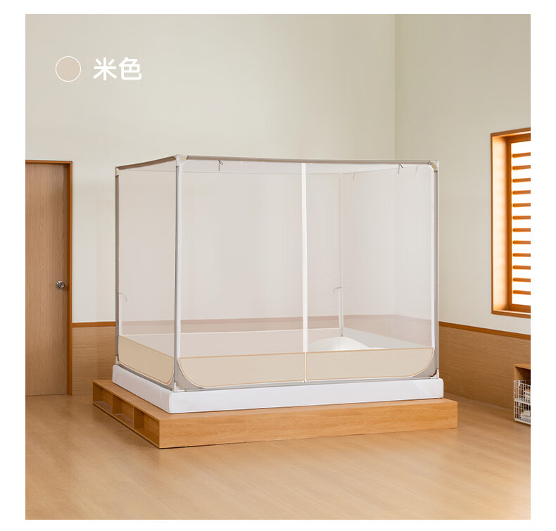 美朵嘉A类婴儿防摔蚊帐架家用三开门卧室拉链防摔1.51.8*2米方顶需安装 经典款【单独蚊帐】加厚稳固【多色可选】 180cm*198cm*170cm