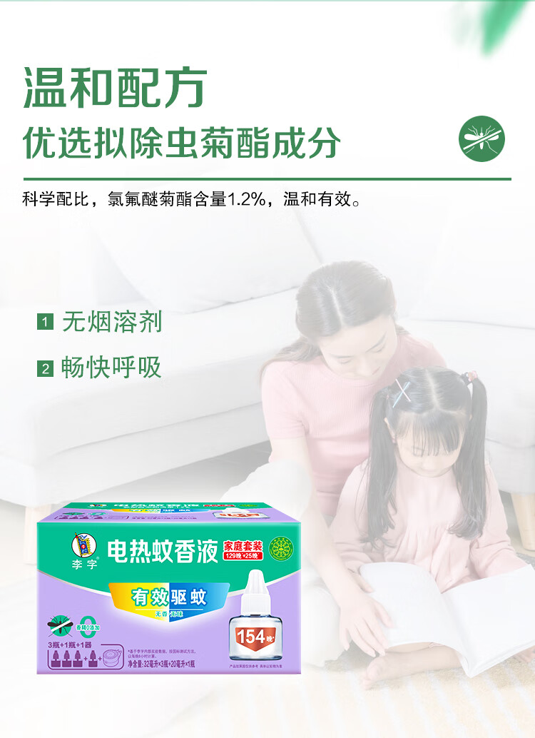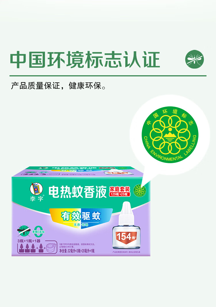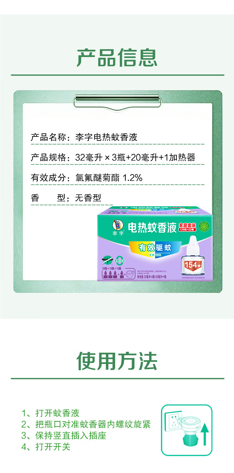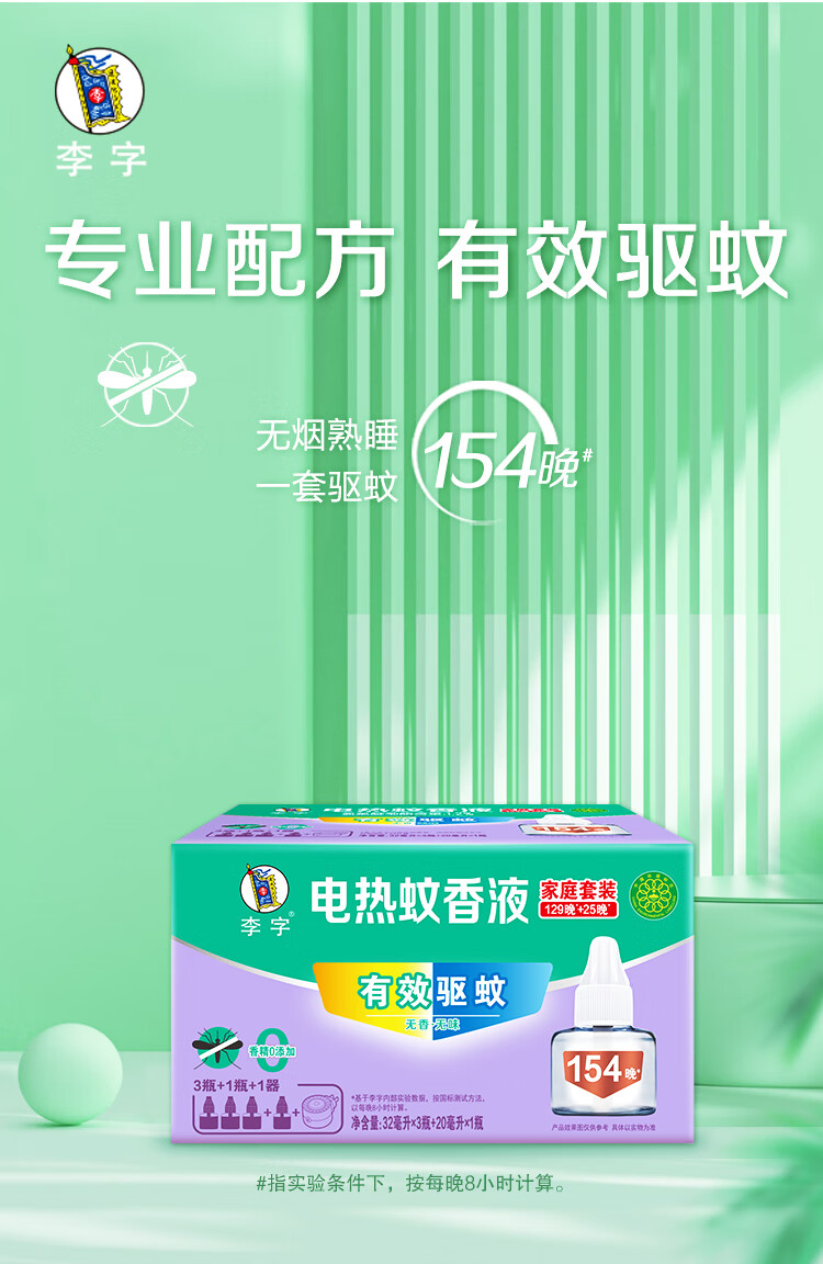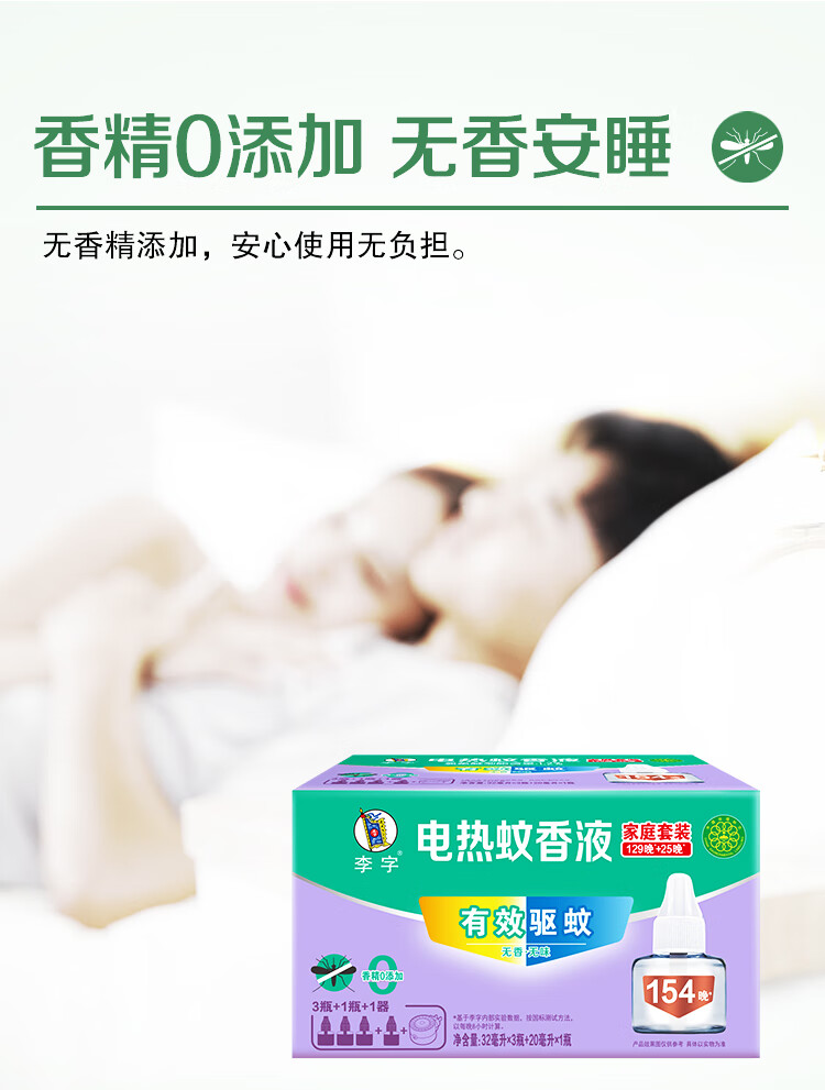 李字 电热蚊香液32ml*3瓶+20ml1瓶+1直插电热器基孔肯雅热【4液1器】