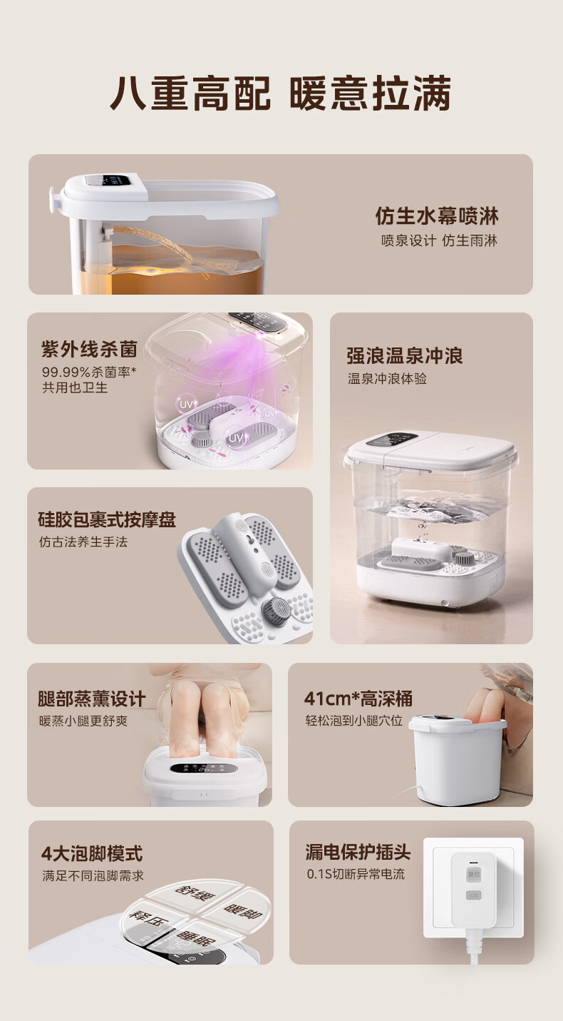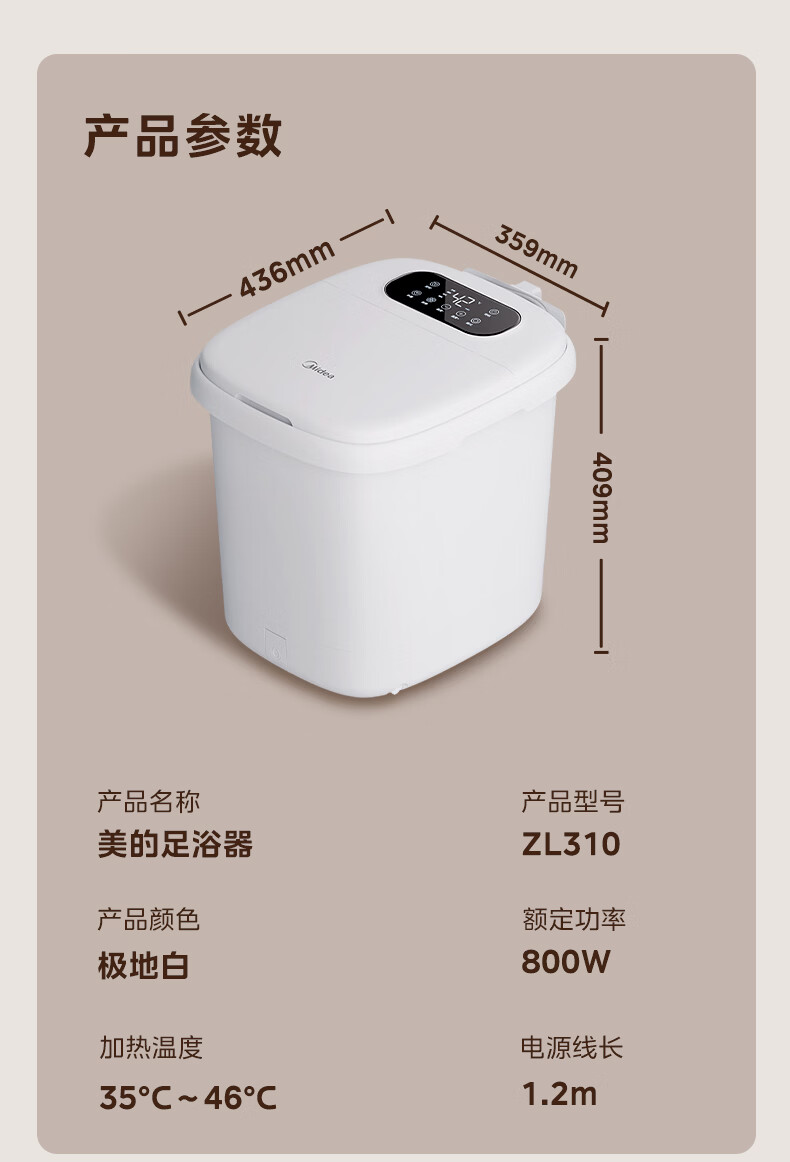 美的(Midea)泡脚桶杀菌足浴盆加热暖脚自动按摩保暖洗脚盆熏蒸暖泡喷淋新年礼物生日送男女友长辈 ZL310温泉桶