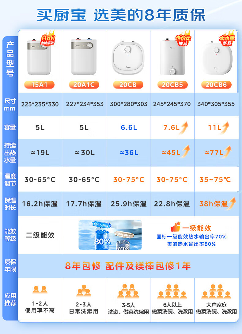 美的(Midea)7.6升储水式小厨宝台下电热水器家用45升一级能效京东自营2000W厨房热水宝国家补贴F7.6-20CB5(ES)