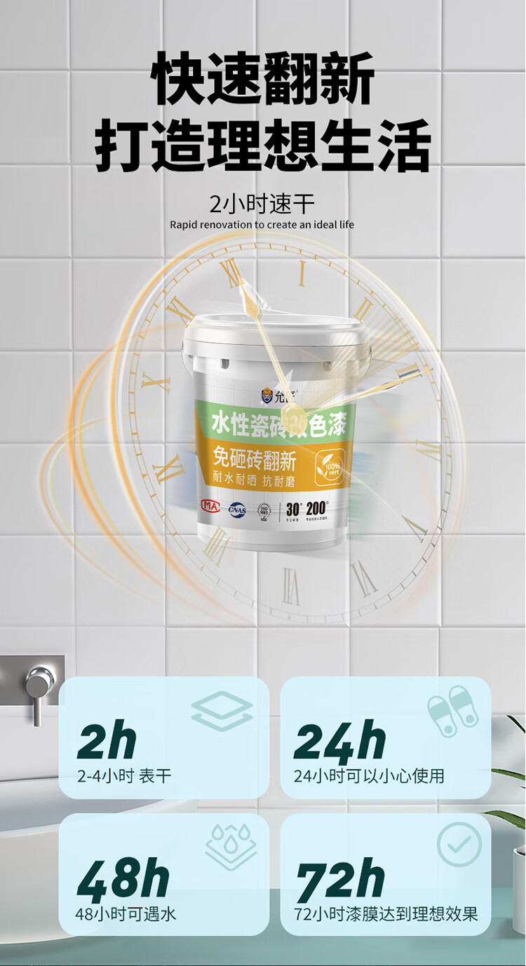 云行家卫生间瓷砖翻新改色大理石外墙翻新地面改造专用瓷砖漆墙面补色漆 白色 陶瓷漆+交联剂(送工具) 1L