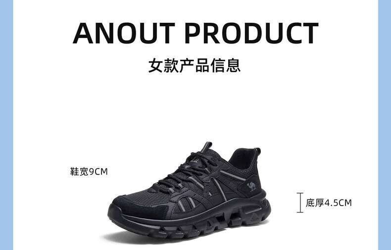 骆驼(CAMEL)新款女士休闲鞋轻便软底简约舒适户外徒步鞋会员 G24S342016黑色 (女款) 37