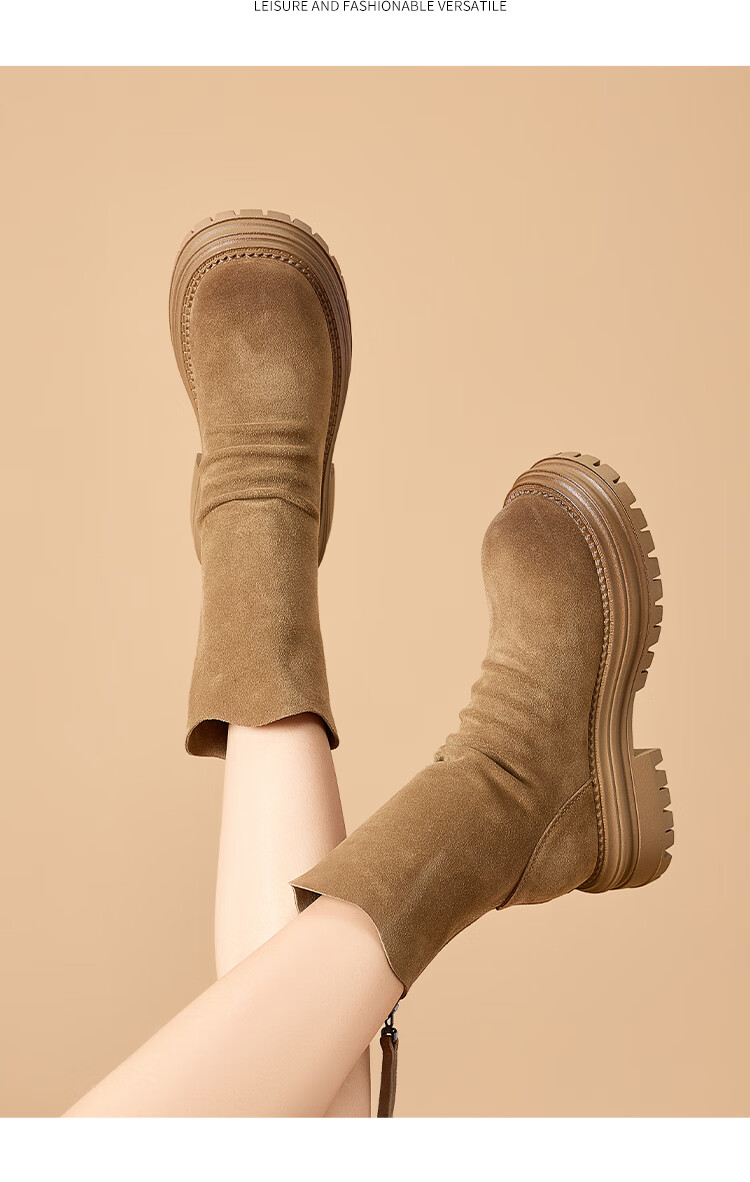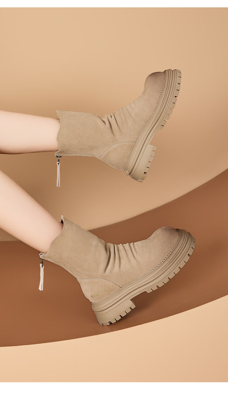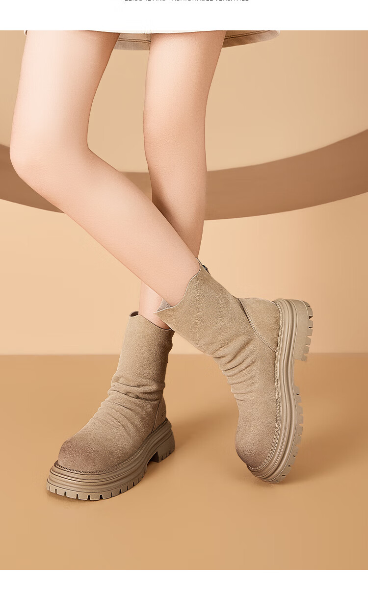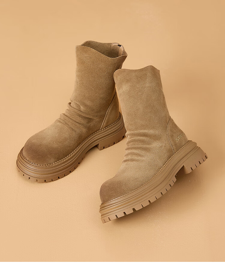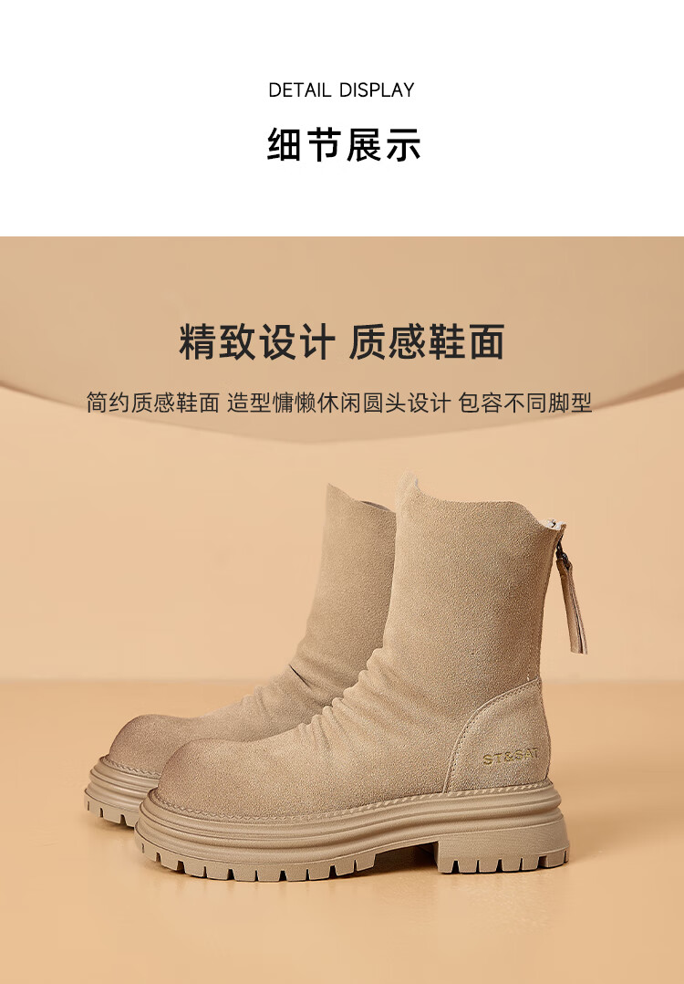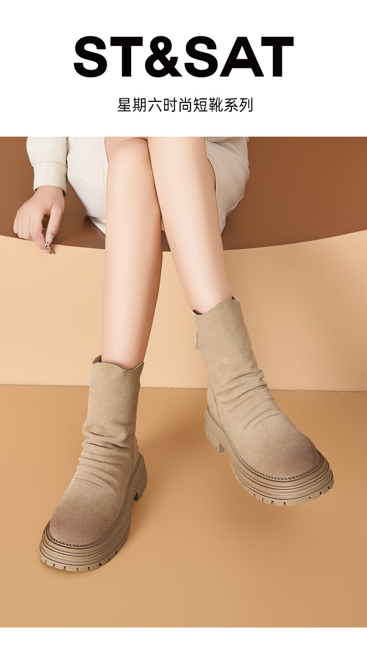 星期六(St&Sat)气质百搭时装靴女2025新款时尚英伦风短筒优雅女靴 棕色 37