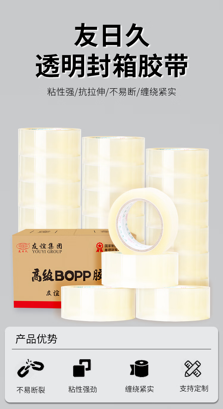 友日久透明胶带封箱快递物流打包封口大卷高粘强力批发宽胶纸胶带 宽4.5cm*长100y*6卷