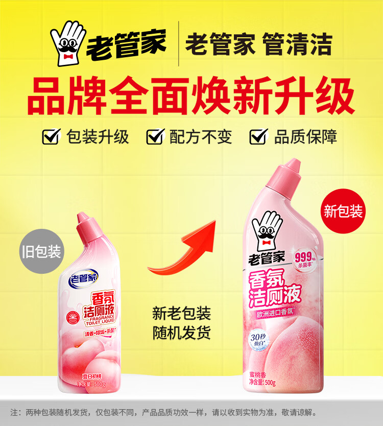 老管家香氛洁厕液500g*2洁厕灵洁厕剂厕所马桶清洁剂杀菌除垢芳香祛味