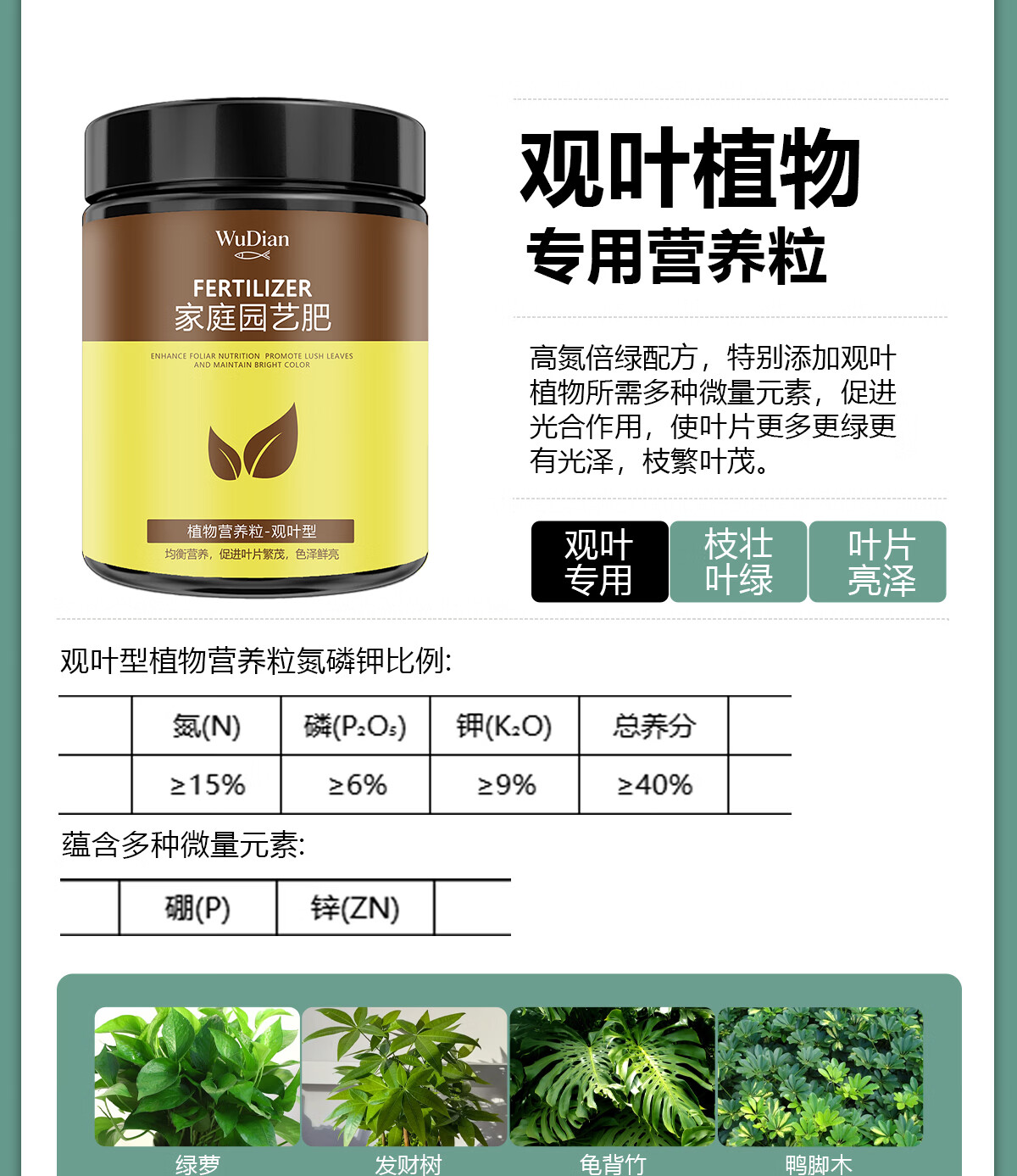 百万销量绿植营养肥料盆栽植物通用型室内有机家绿叶观叶型复合肥 植物营养粒-观叶型500g-1瓶