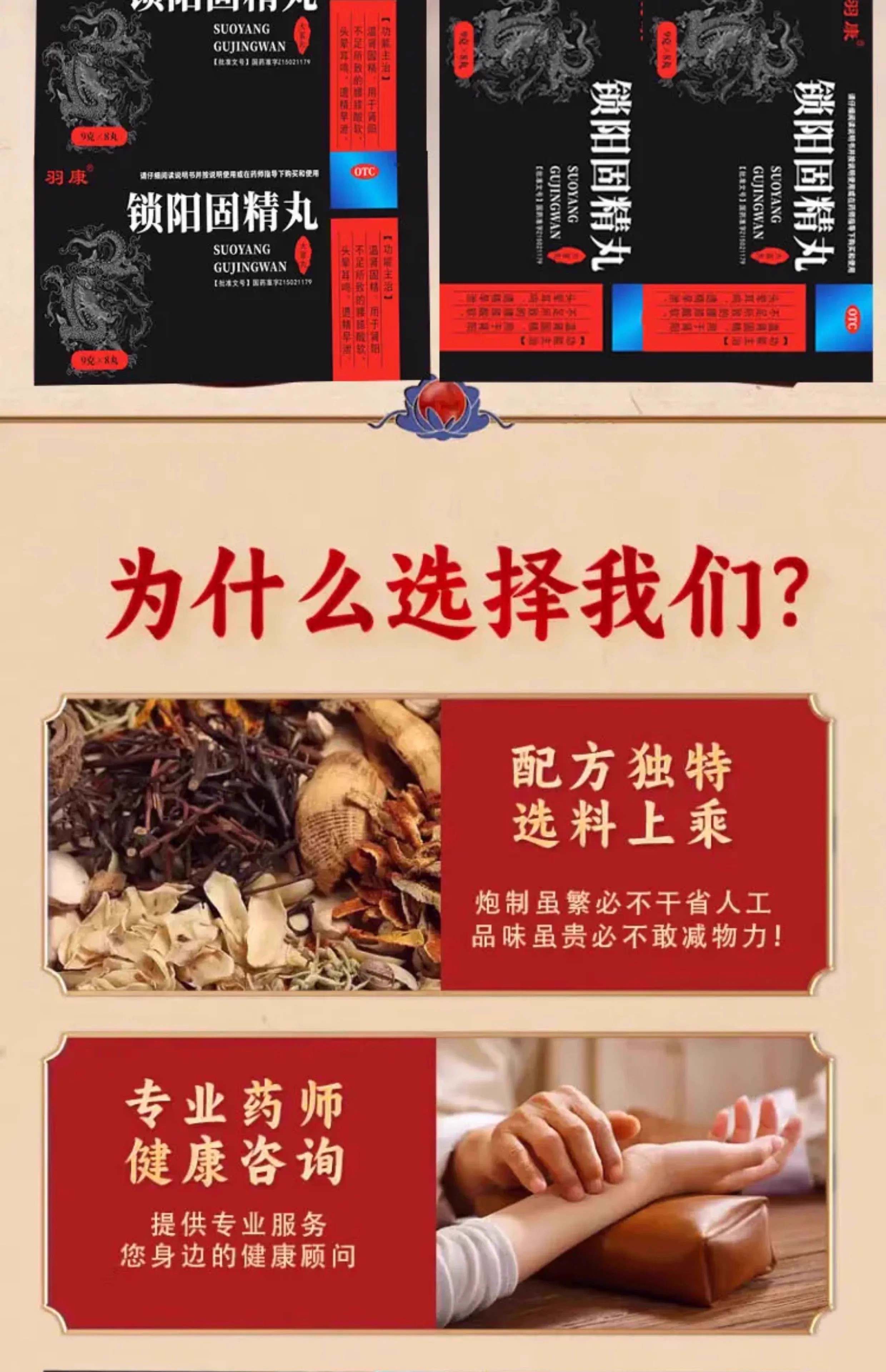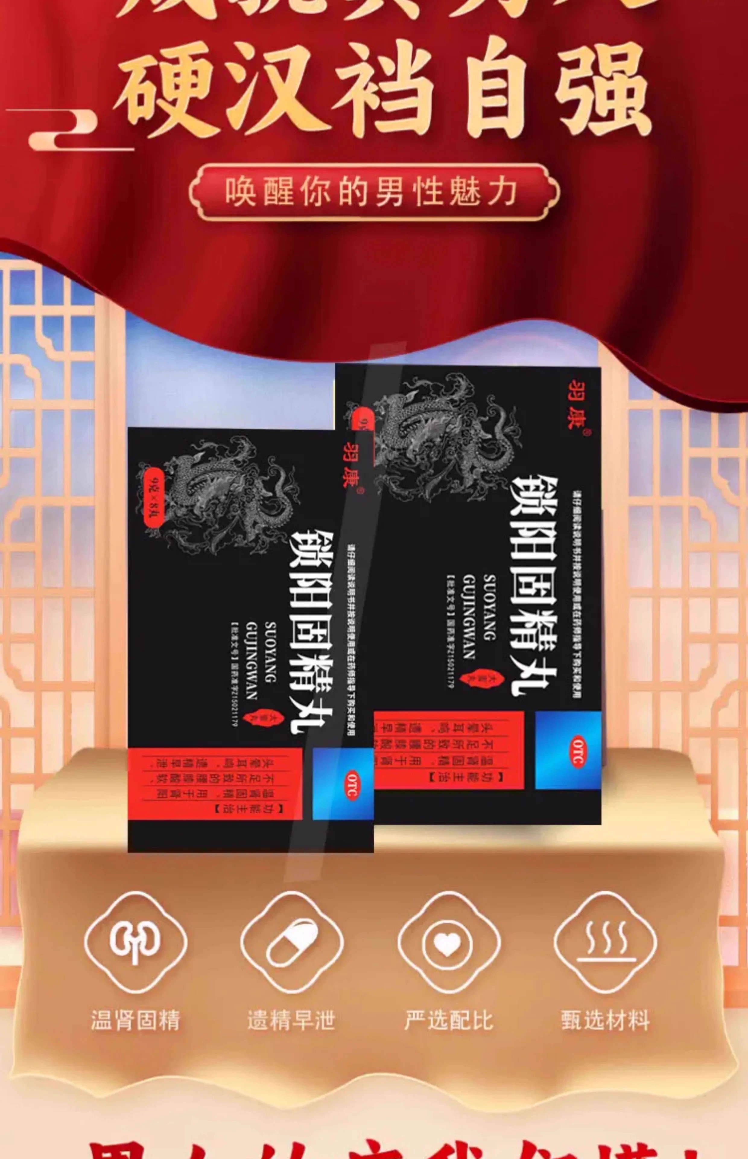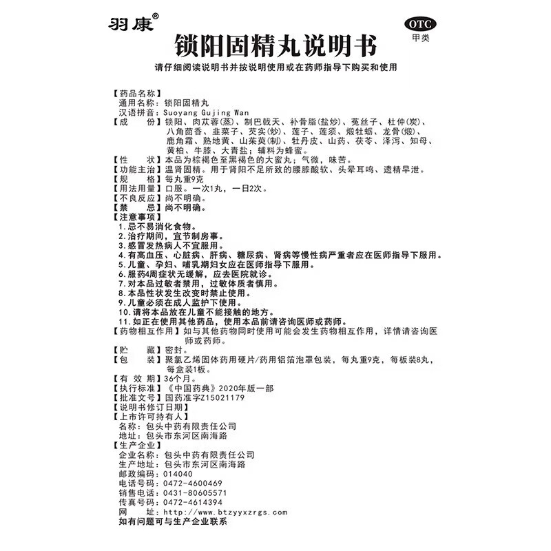 [羽康]锁阳固精丸 9g*8丸 1盒装 男士黑丸子官方正品金锁阳固精丸阳痿早泄龟头敏感射精快专男科用药肾虚补肾壮肾阳 男士黑丸子 官方正品