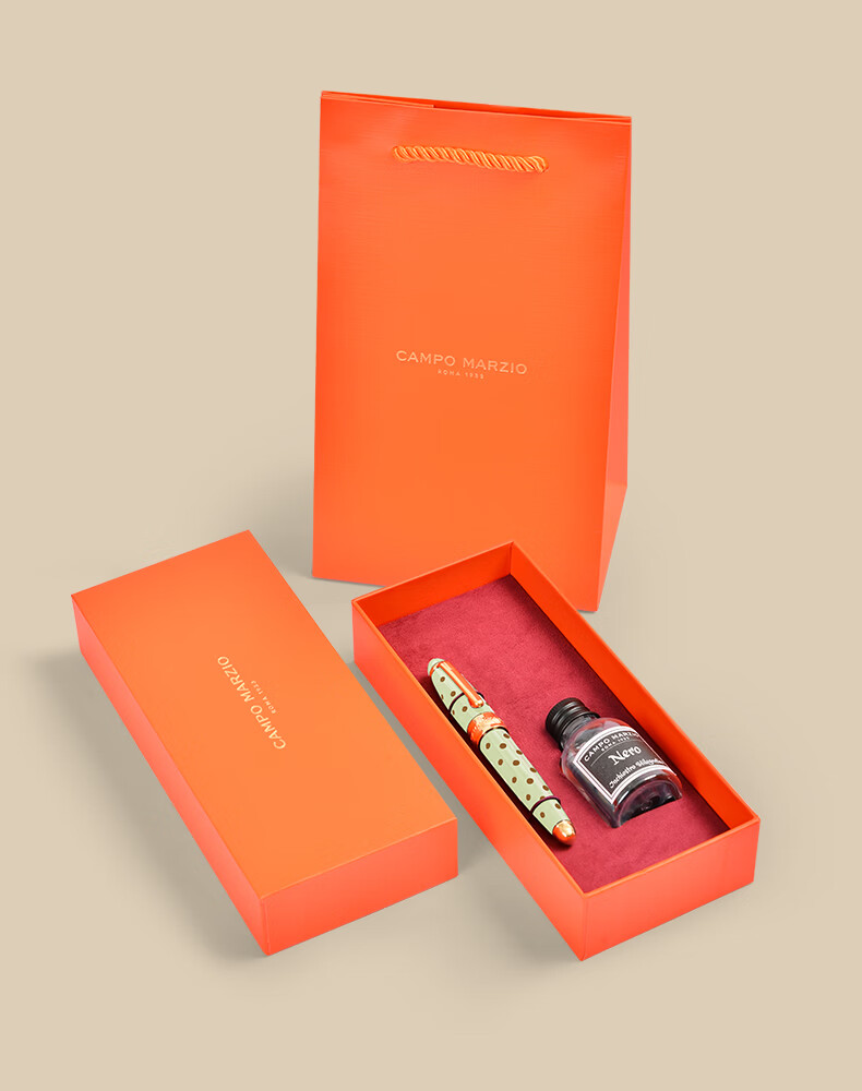 凱博马尔兹意大利品牌口袋钢笔经典波点墨囊礼盒高档金属口袋笔学生送礼生日礼物 青柠色墨囊套装 均码
