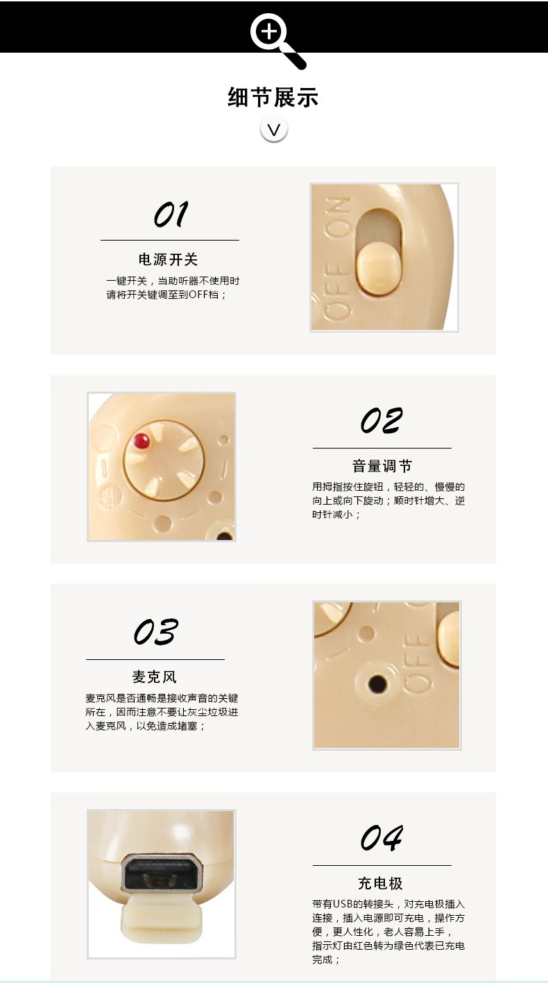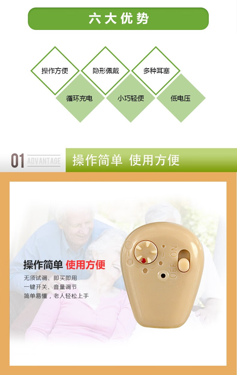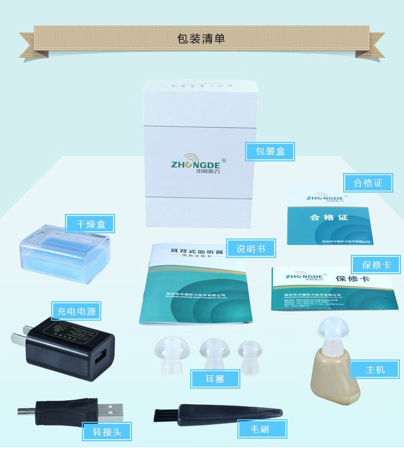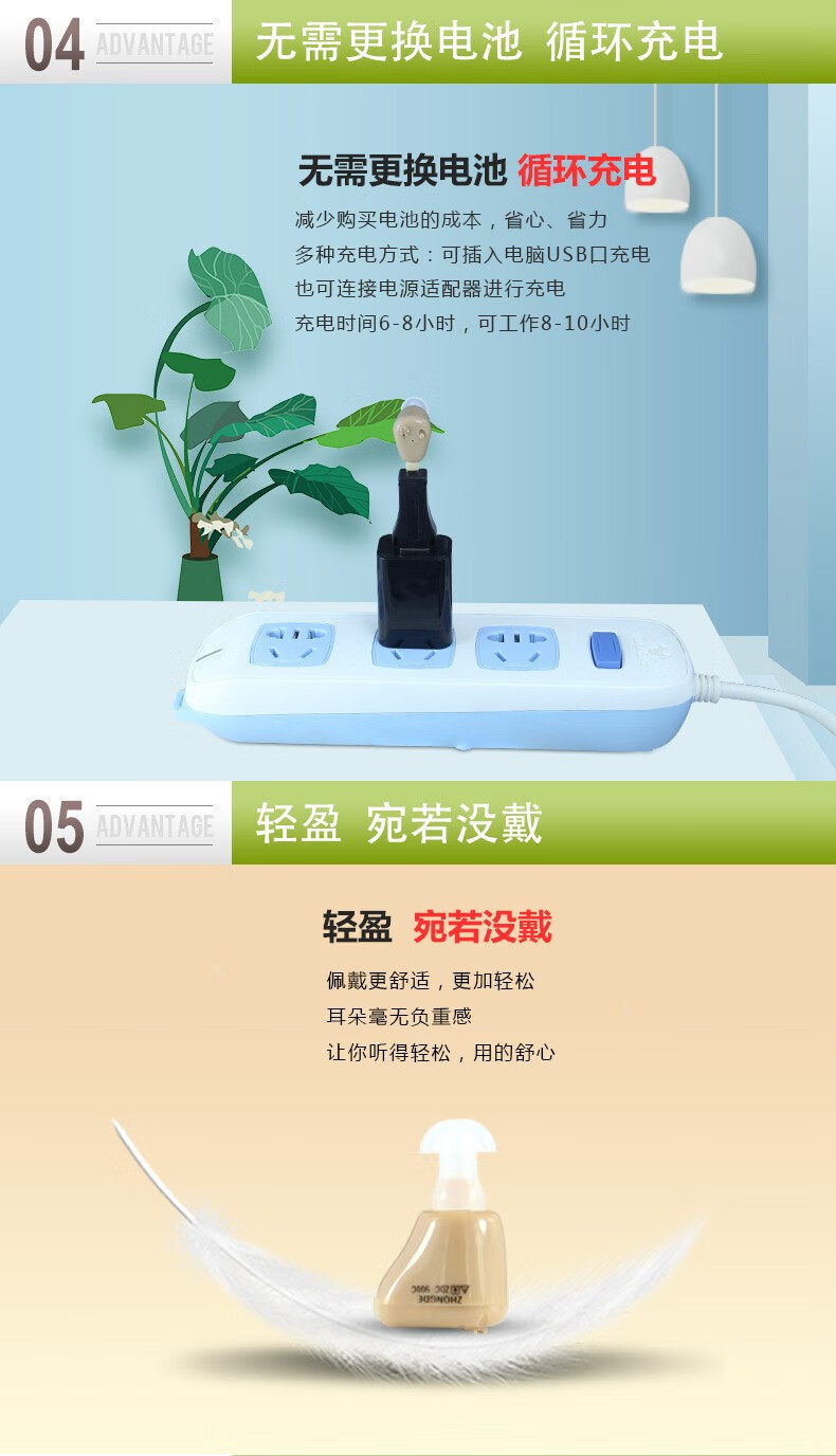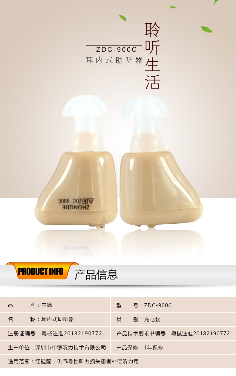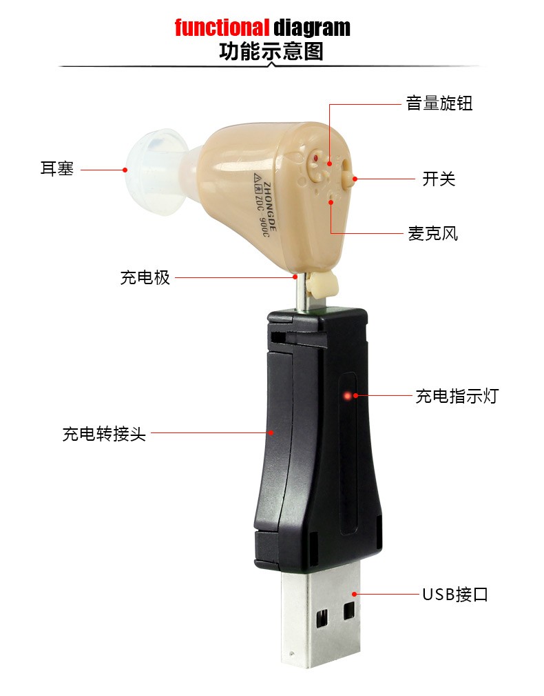 中德(ZhongDe) ZDC-900C老人隐形助听器 老年人充电型耳聋耳内式助听器