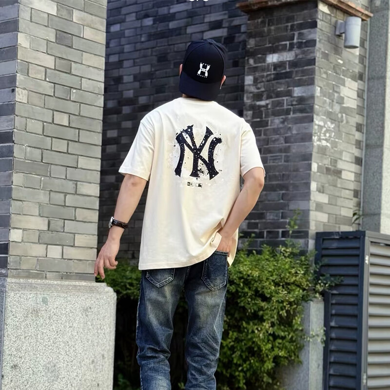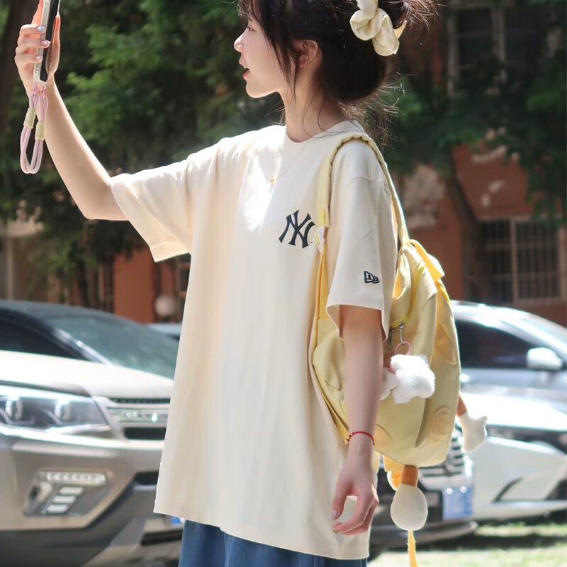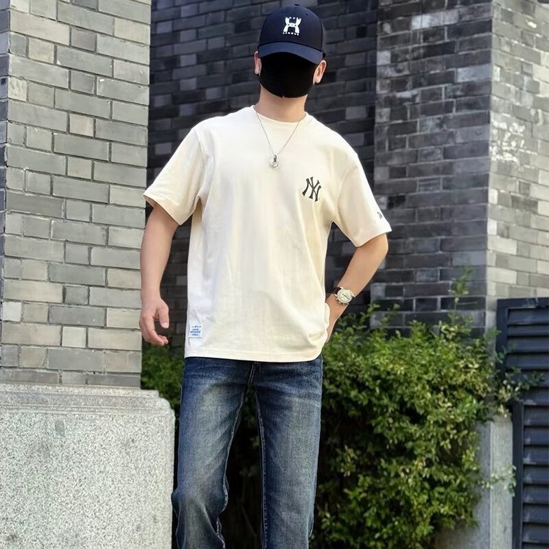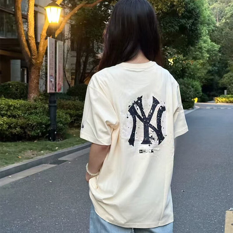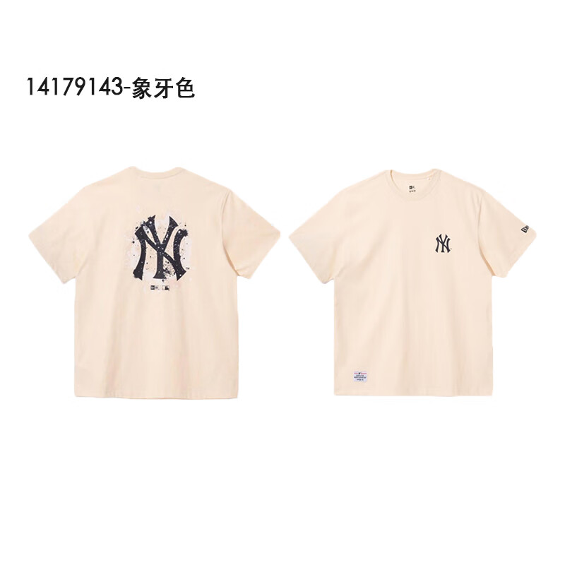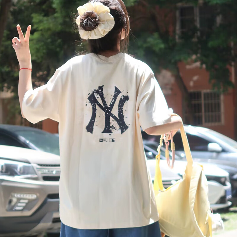 NEW ERA MLB 纽亦华 彩绘徽标字母圆领休闲短袖T恤 男女同款 象牙色 NY 米白色 常规 14179143 M