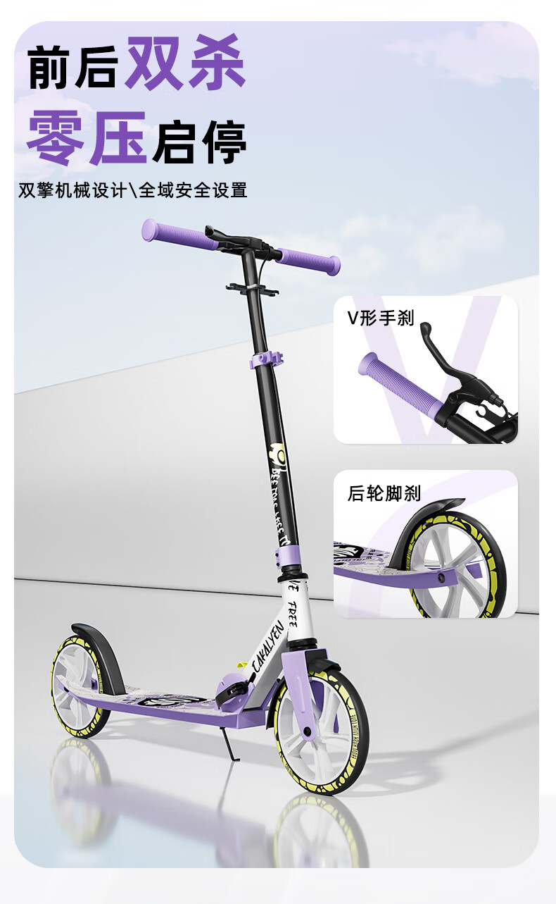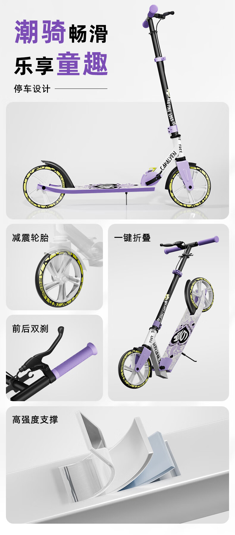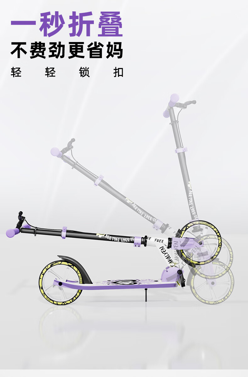 Cakalyen可莱茵两轮滑板车青少年儿童6-12-16岁可折叠踏板滑步车 L1-涂鸦紫色