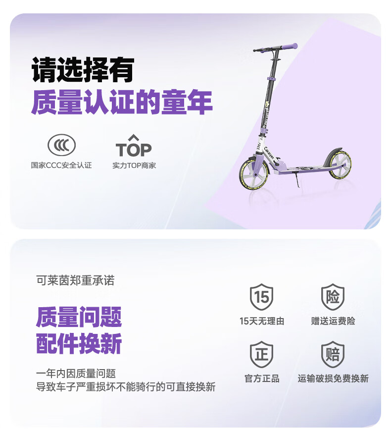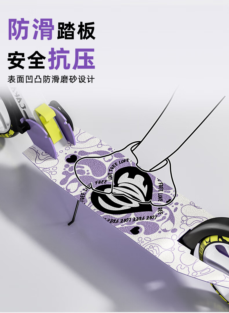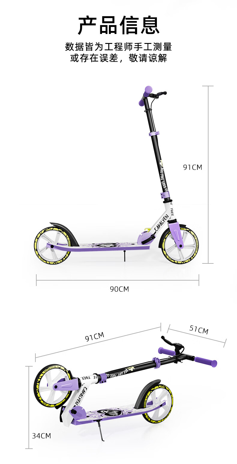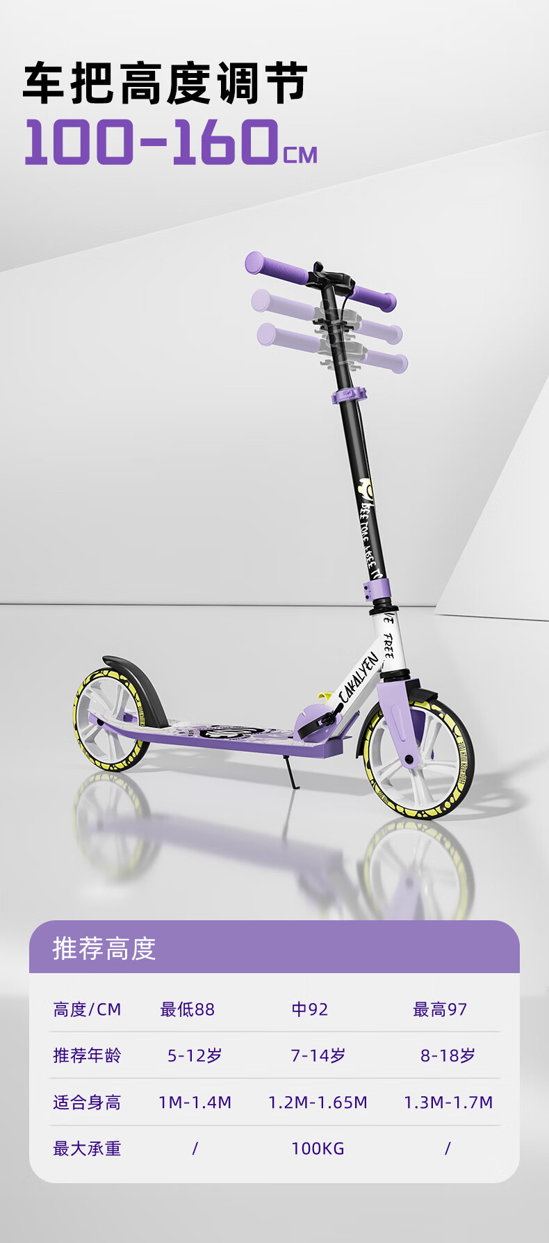 Cakalyen可莱茵两轮滑板车青少年儿童6-12-16岁可折叠踏板滑步车 L1-涂鸦紫色