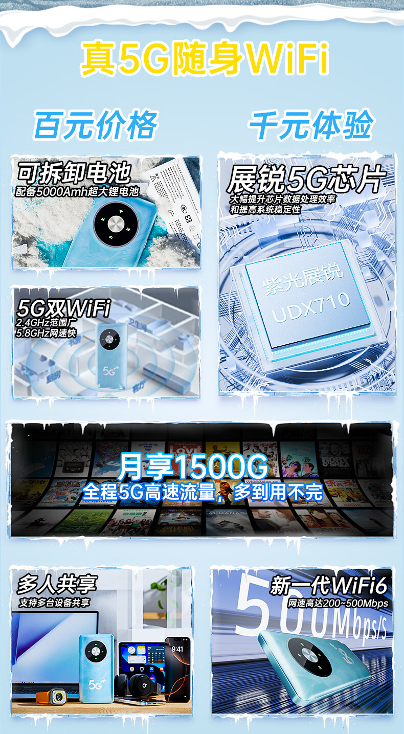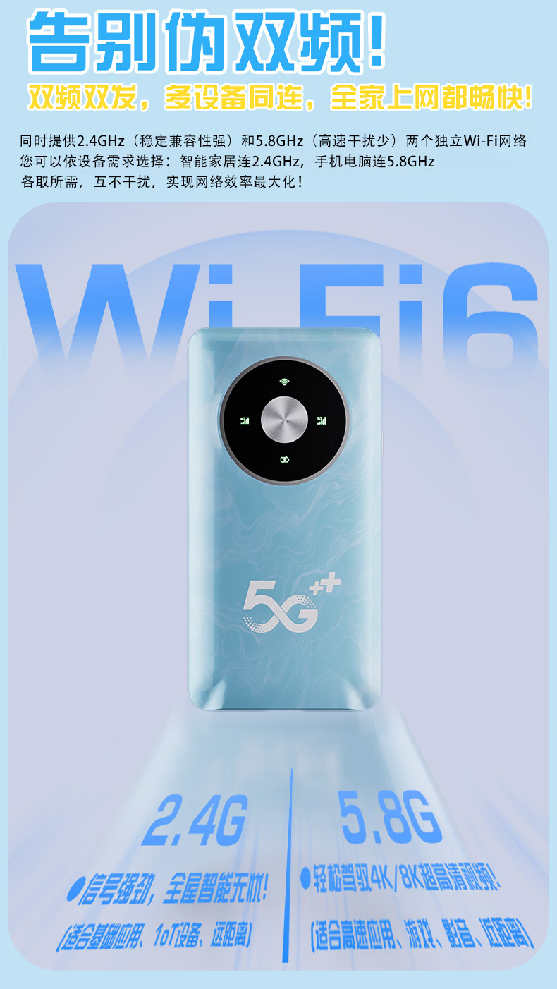 羽浪真5g随身wifi6千兆双频移动随身wifi2025款cpe路由器流量免插卡车载便捷式无线上网卡直播办公通用 【真5G升级顶配版】1万毫安长续航+5G高速上网
