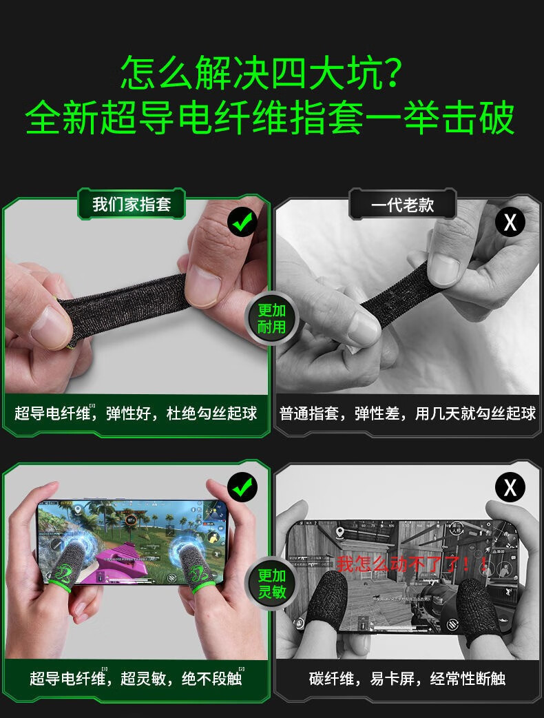 ERTR【电竞职业】游戏手指套手游指套防汗水王者吃鸡超薄蝰蛇指套 蝰蛇一族【绿蓝白红各4只】12只