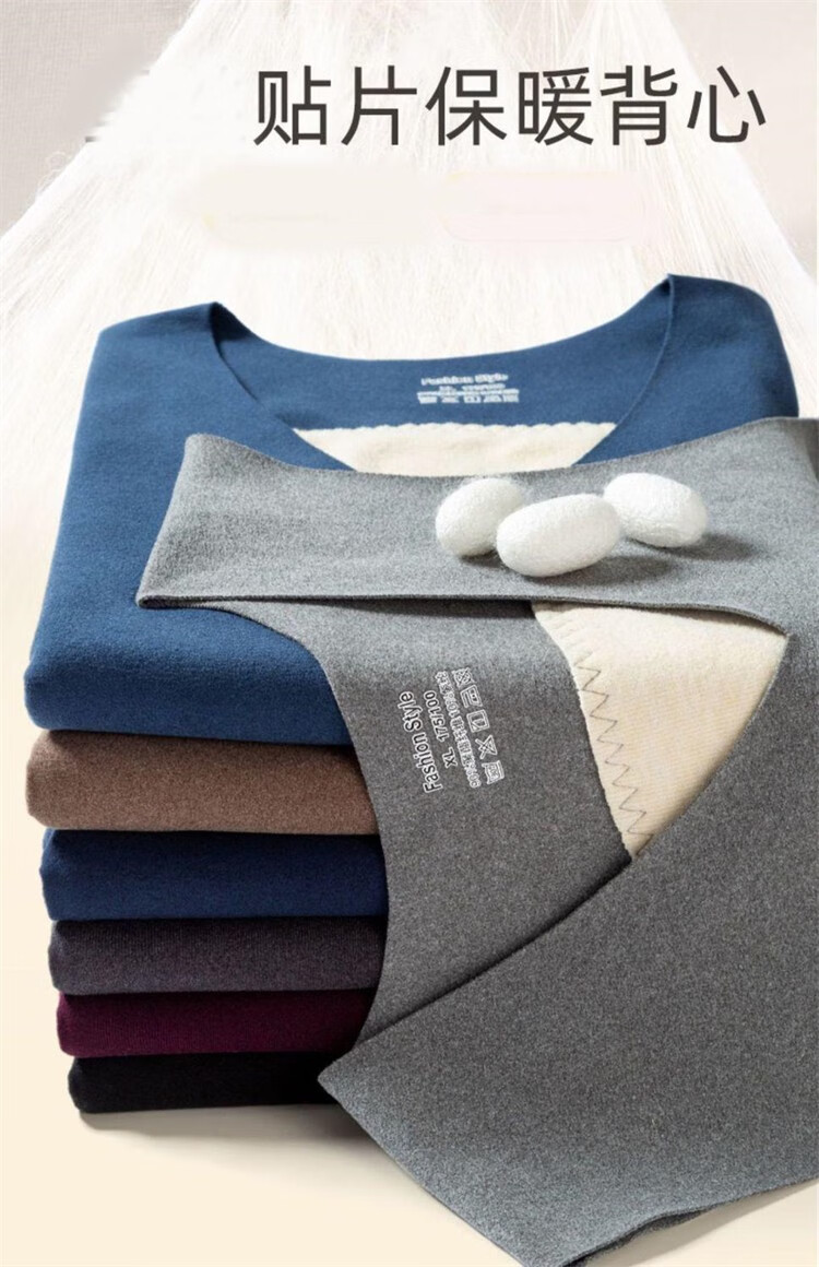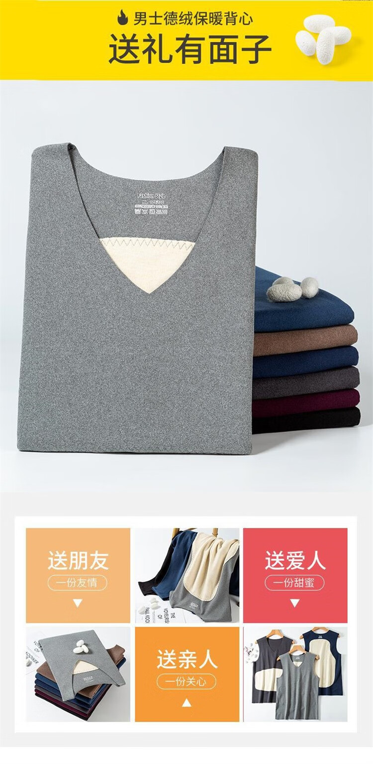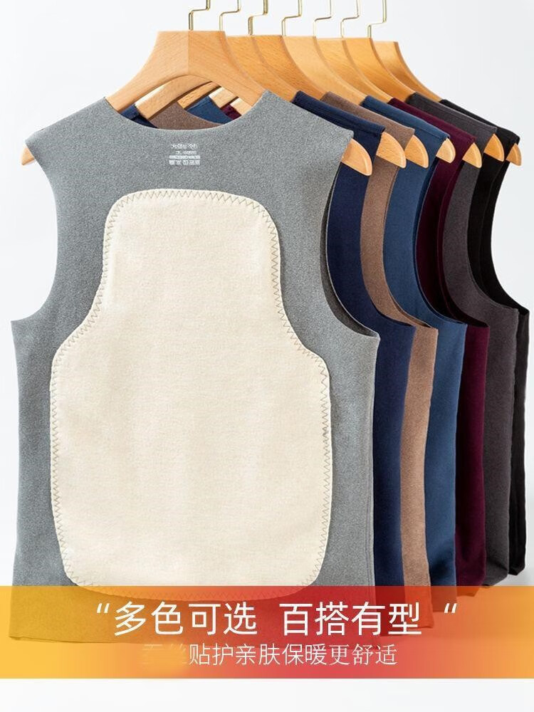北极绒(Bejirog)秋冬男女双面磨毛双面德绒无痕保暖背心加绒加厚贴片 贴片背心男士黑色《2件装》 2XL适合体重(140-160)斤