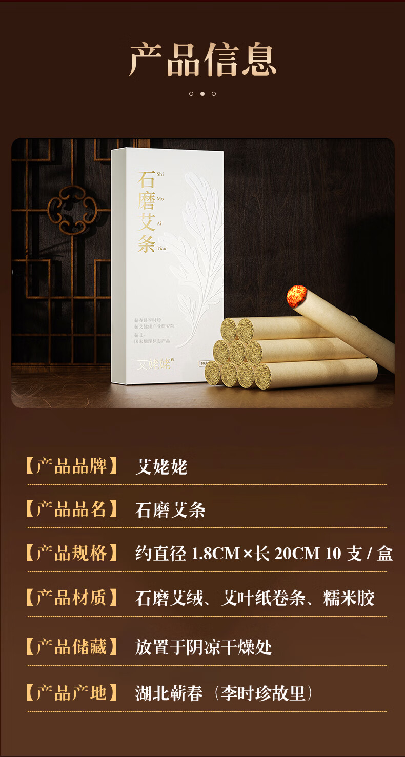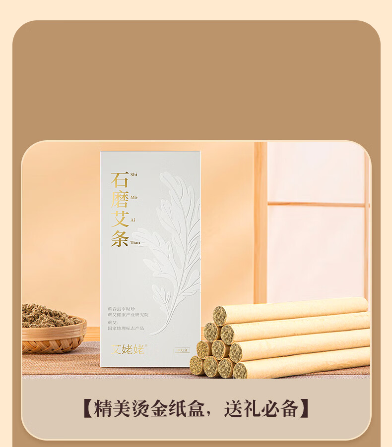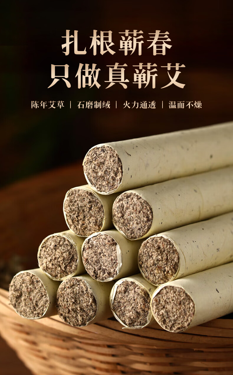 艾姥姥石磨纯艾灸条熏房间纯手工三年陈蕲艾家用艾灸随身灸盒除湿艾草条 正宗石磨艾条10支/盒*1盒【买2份赠足浴包一盒】