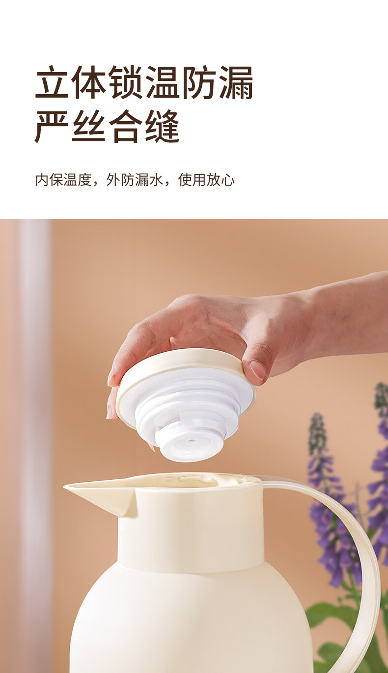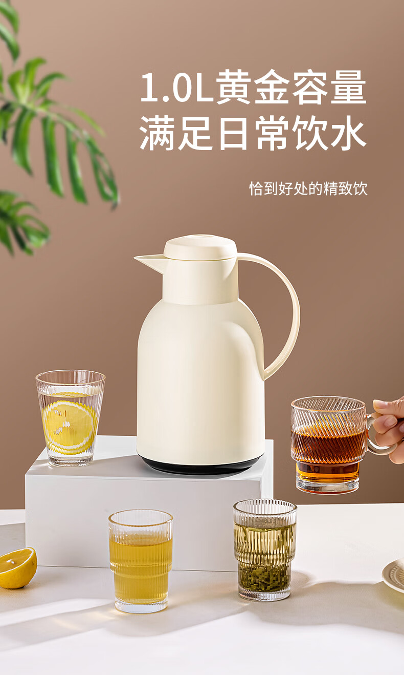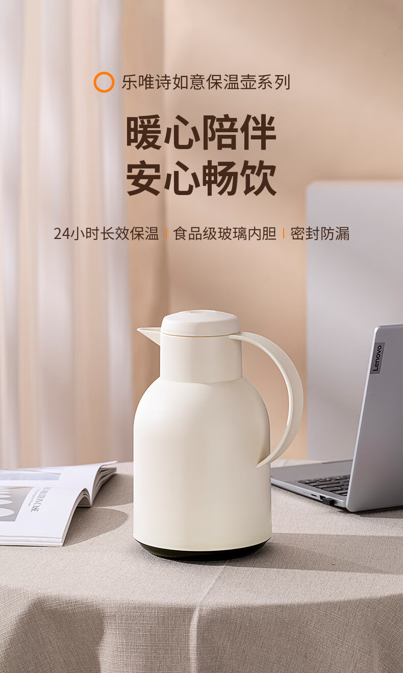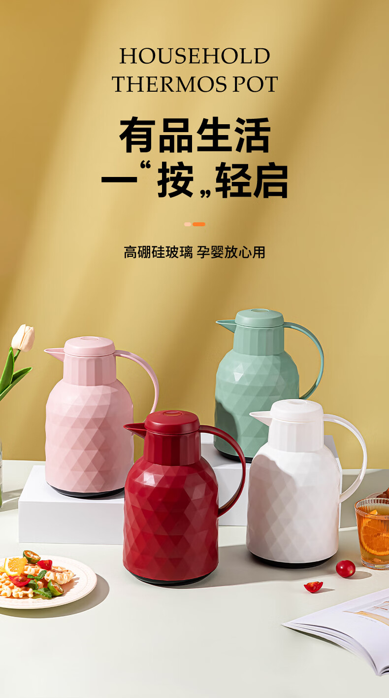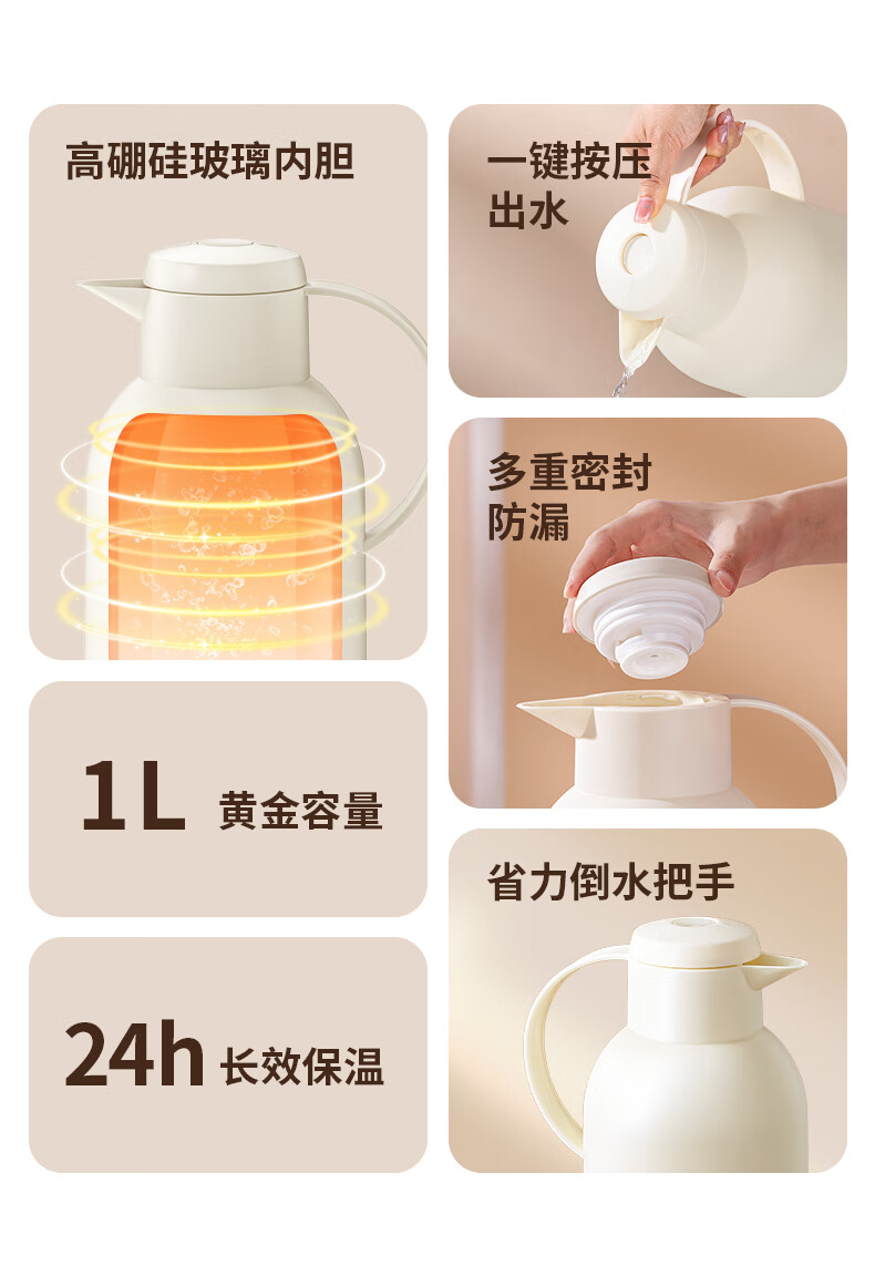 乐唯诗(LOVWISH) 保温壶家用办公室保温瓶热水瓶车载水壶暖水壶玻璃内胆开水瓶 钻纹保温壶【按压款】米白色1400ml