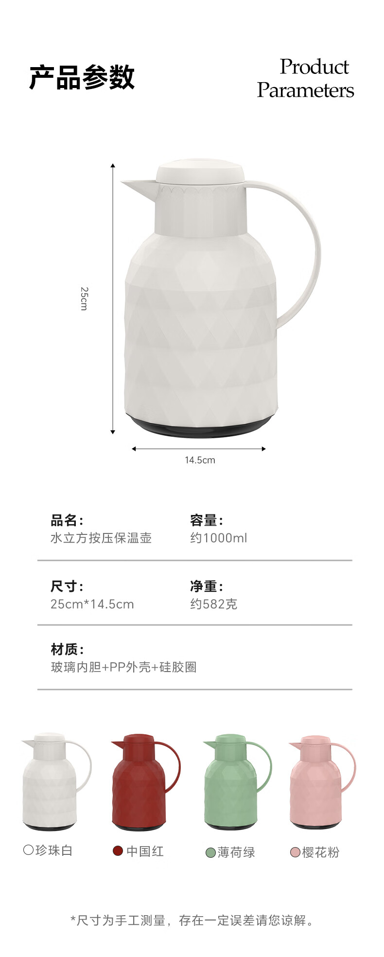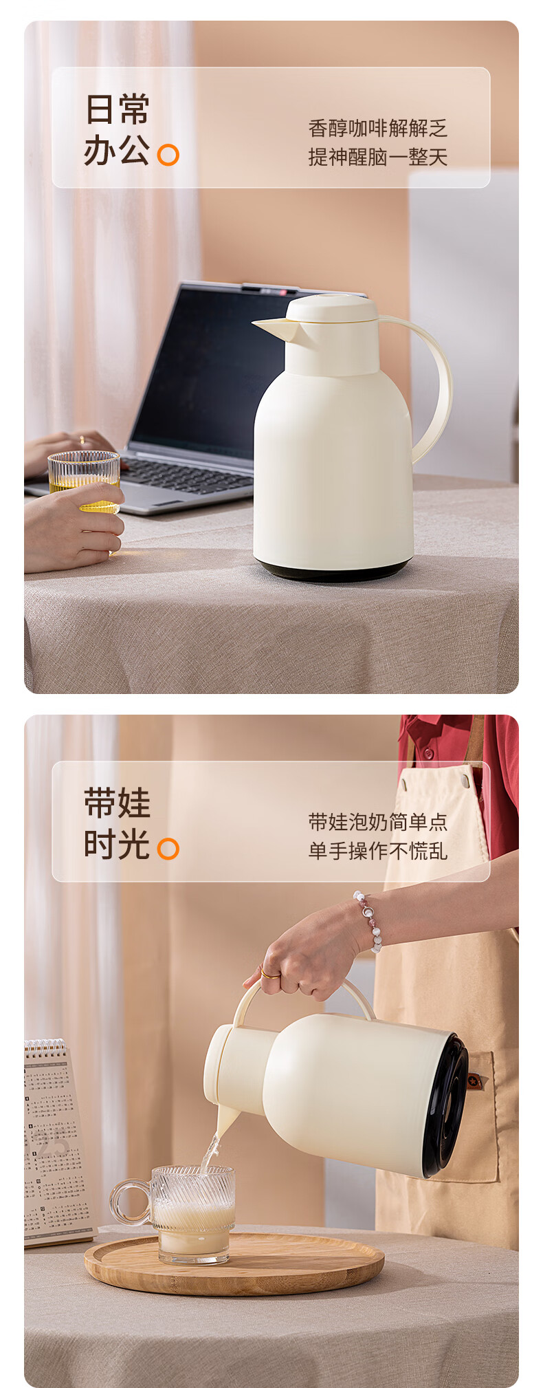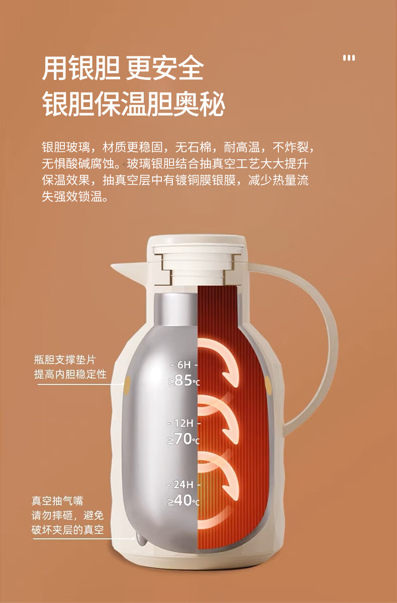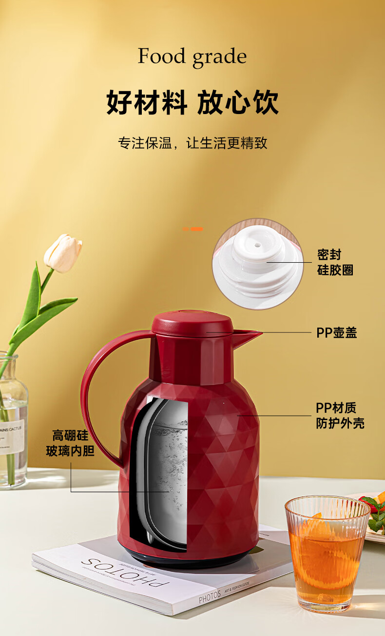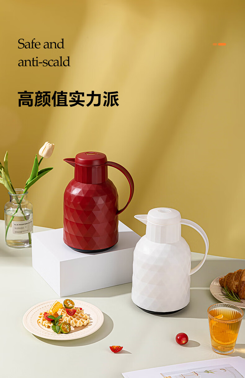 乐唯诗(LOVWISH) 保温壶家用办公室保温瓶热水瓶车载水壶暖水壶玻璃内胆开水瓶 钻纹保温壶【按压款】米白色1400ml