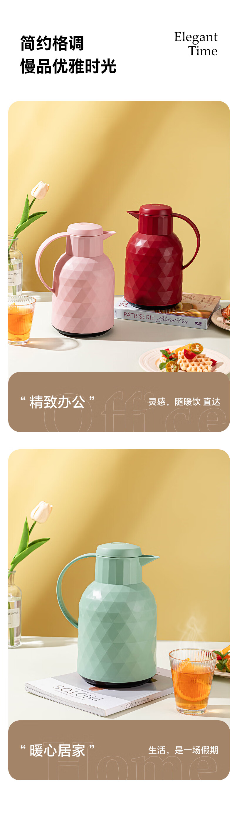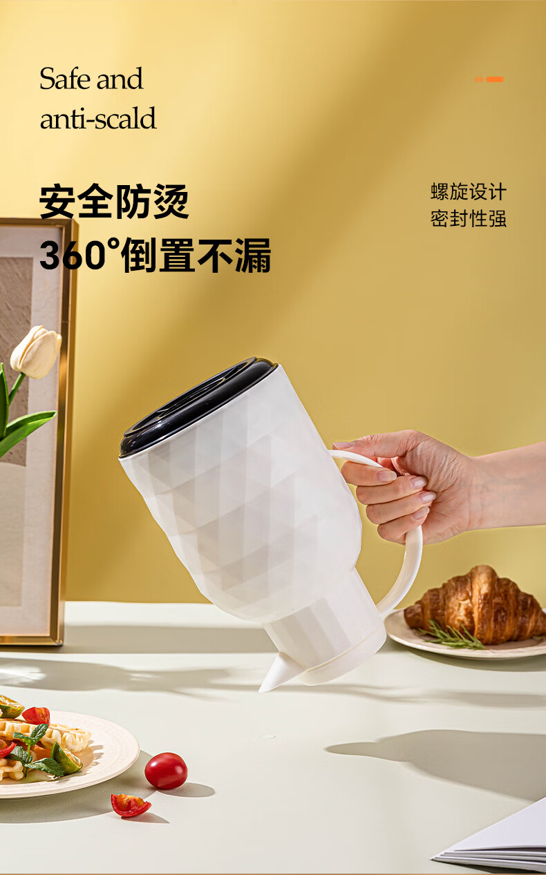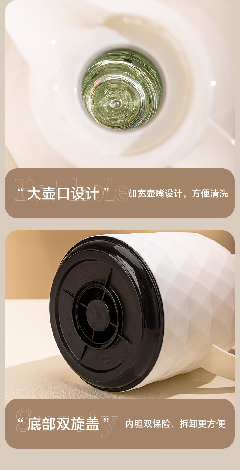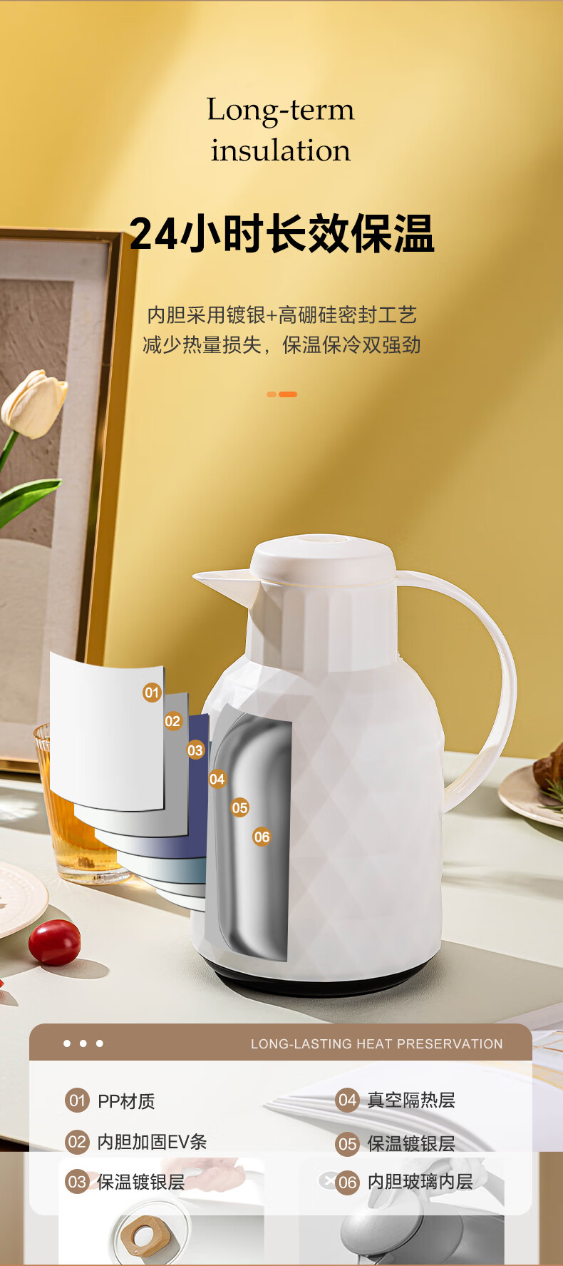 乐唯诗(LOVWISH) 保温壶家用办公室保温瓶热水瓶车载水壶暖水壶玻璃内胆开水瓶 钻纹保温壶【按压款】米白色1400ml